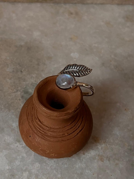 Moonstone Feather Adjustable 925 Sterling Silver Ring