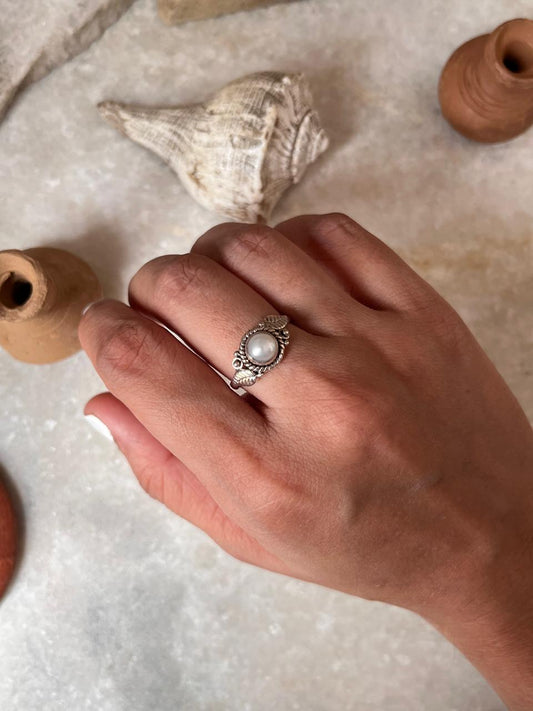 Fresh Water Pearl Forest Boho 925 Sterling Silver Ring