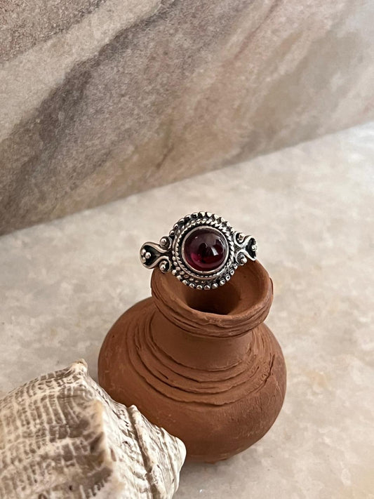 Garnet Round Boho 925 Sterling Silver Ring