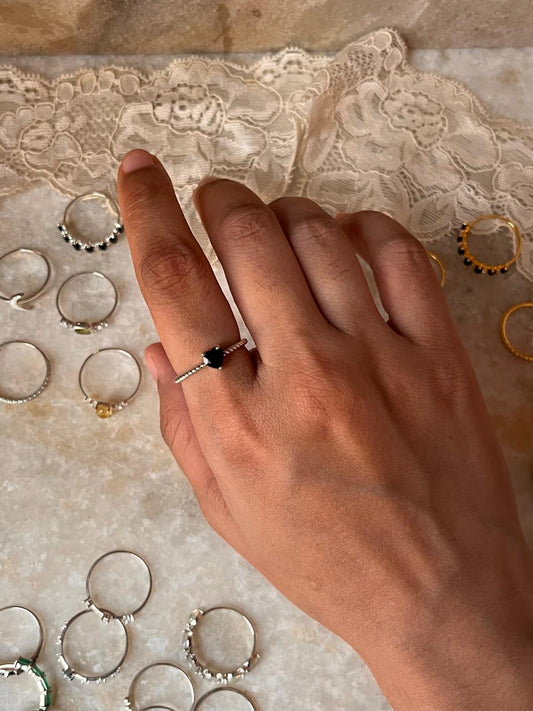 Black Spinel Heart Solitaire 925 Sterling Silver Ring