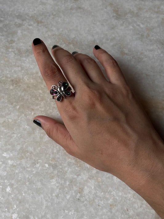 Mystic Topaz Butterfly 925 Sterling Silver Ring