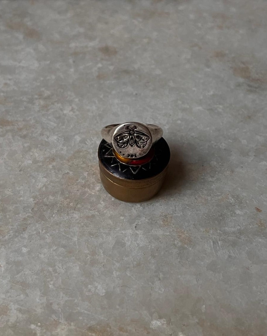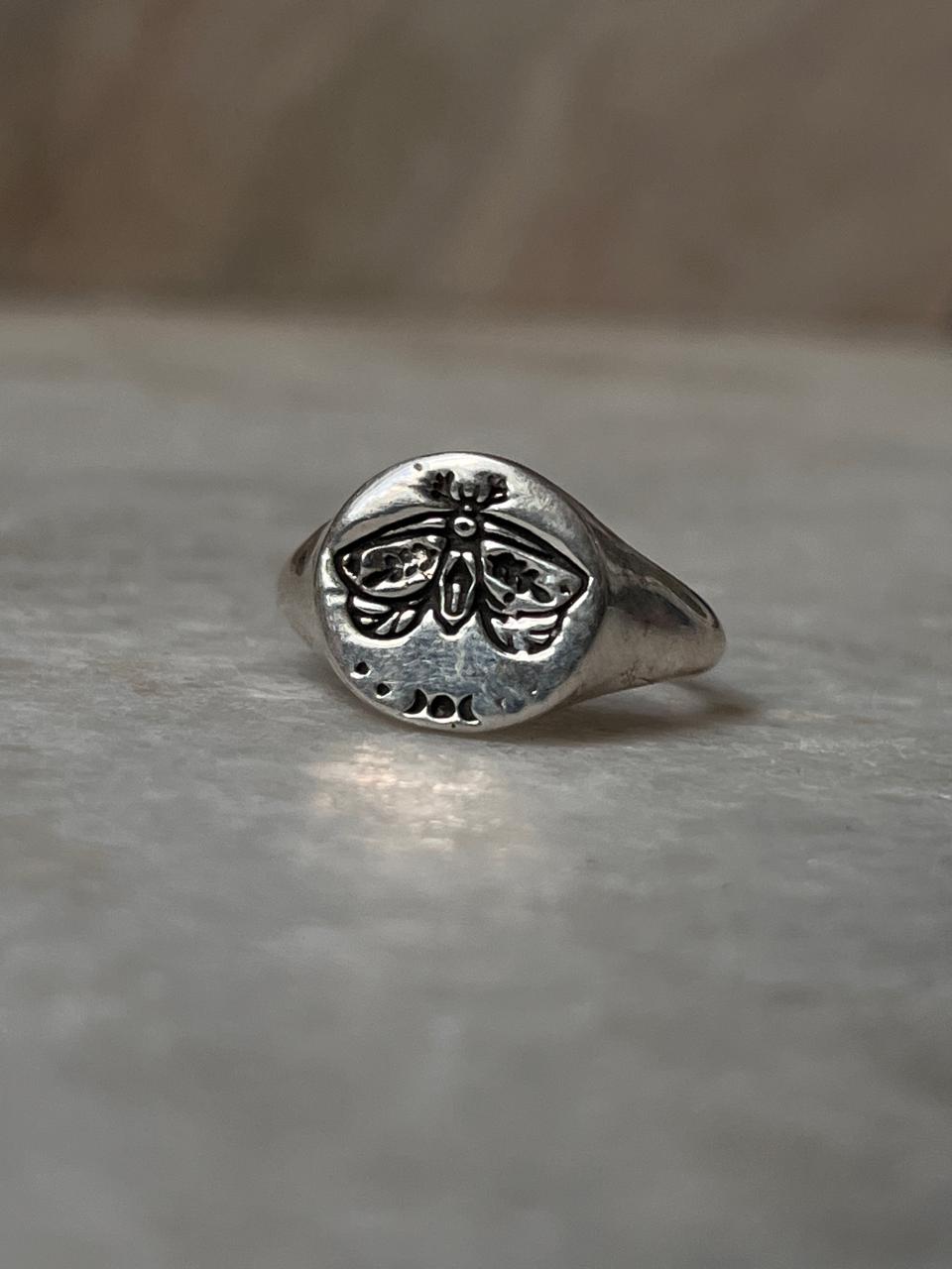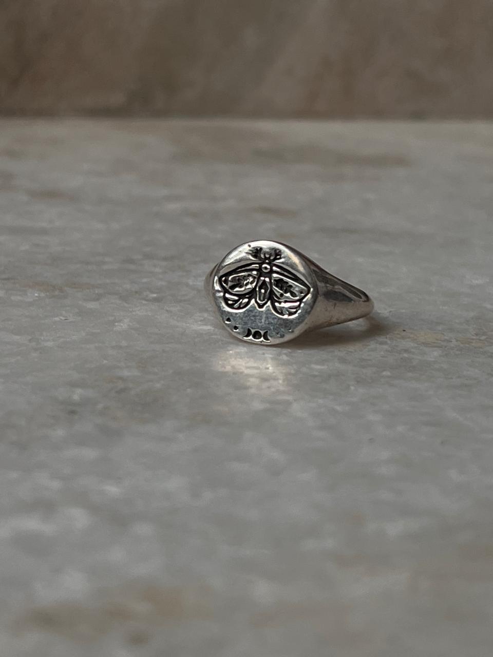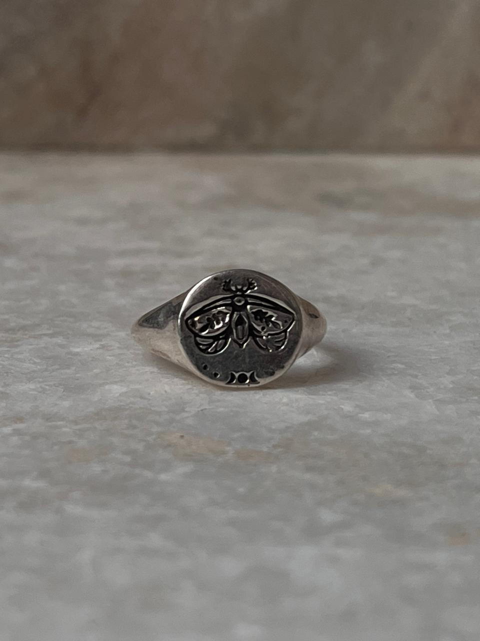 Moth Cosmic Engraved Signet 925 Sterling Silver Ring