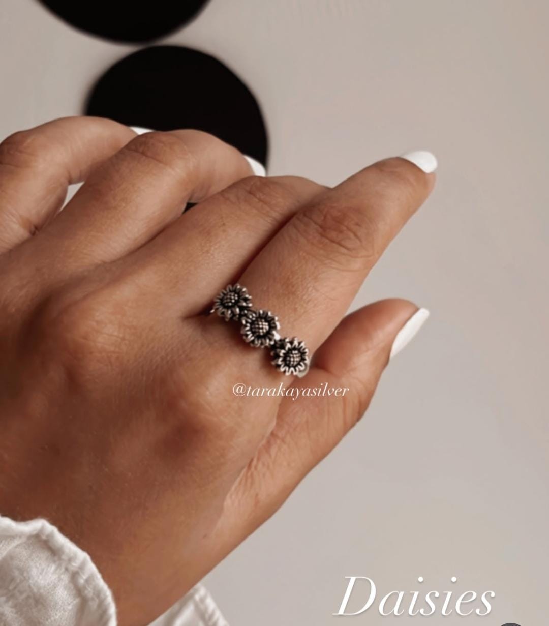 A charming 3 daisies ring, featuring three delicately crafted daisy flowers arranged in a graceful design.