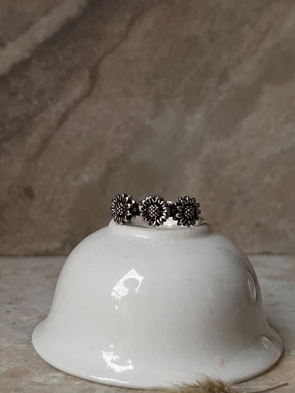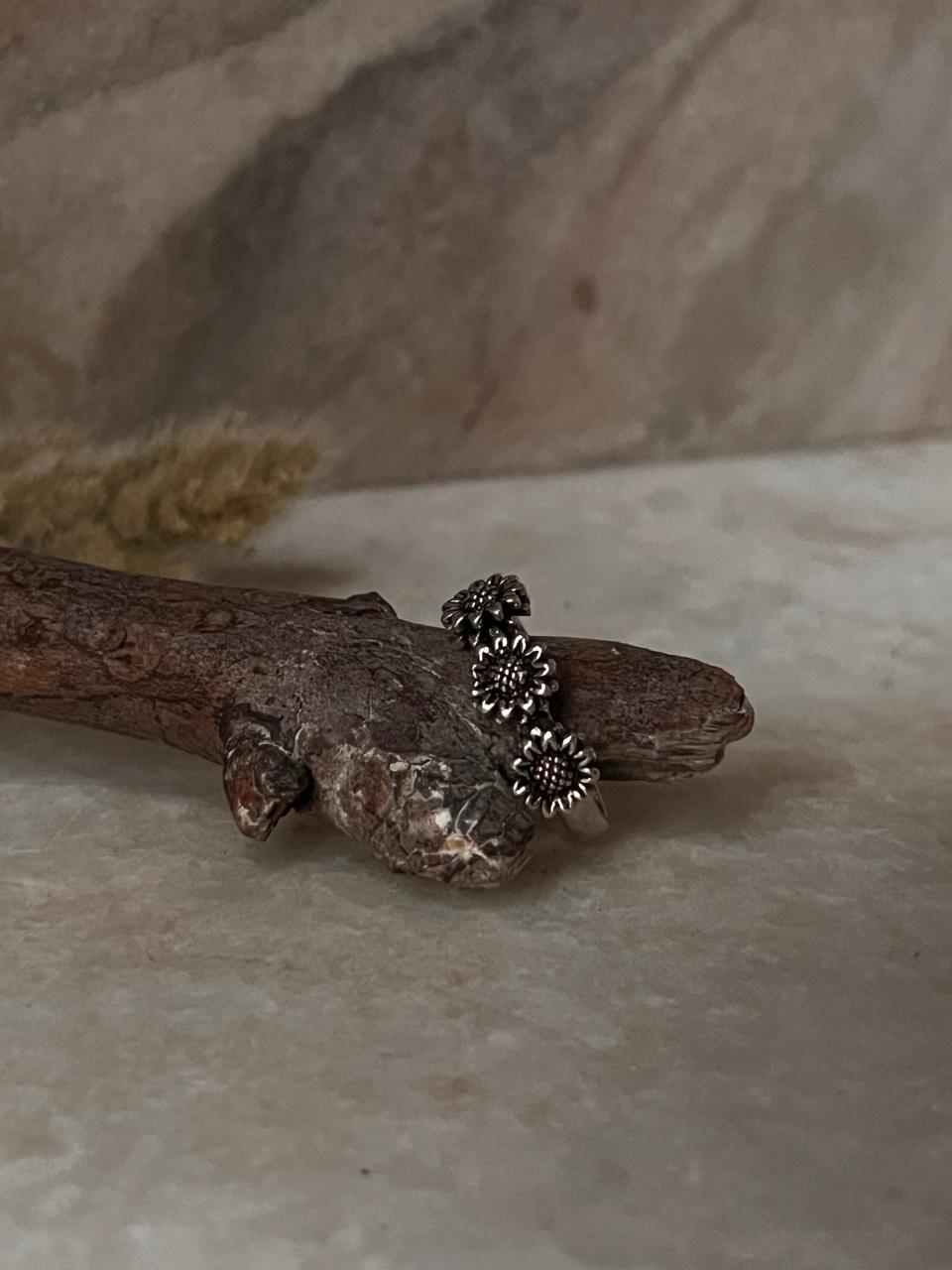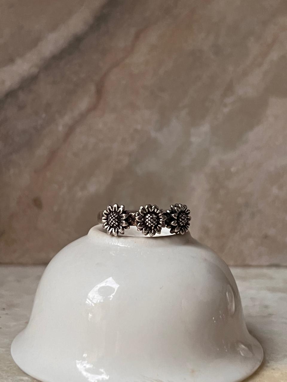 3 Daises Boho 925 Sterling Silver Ring