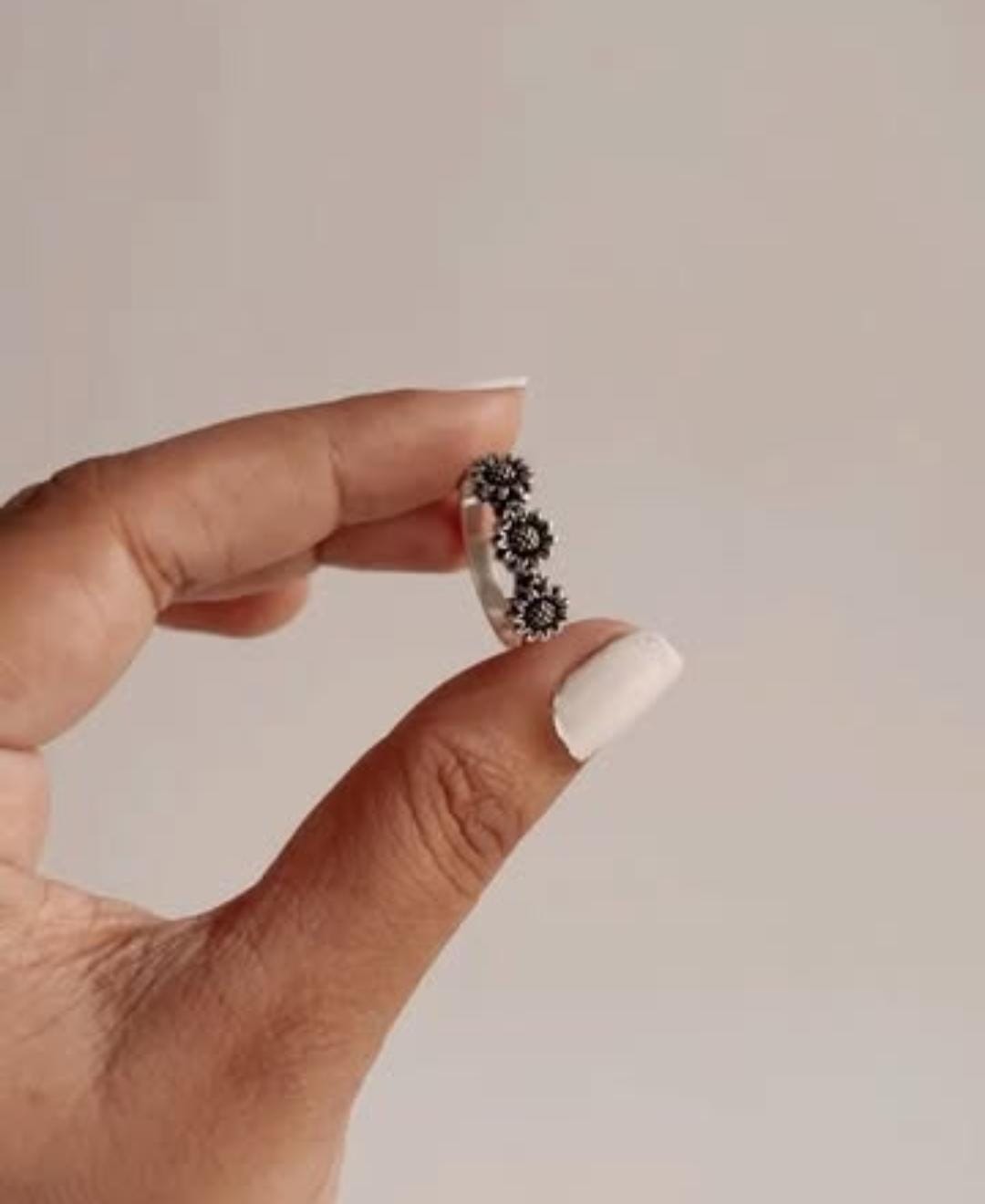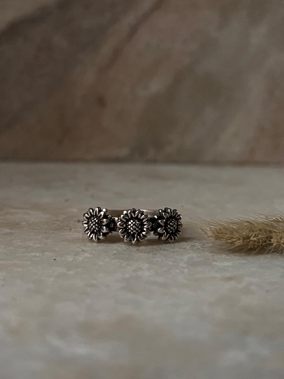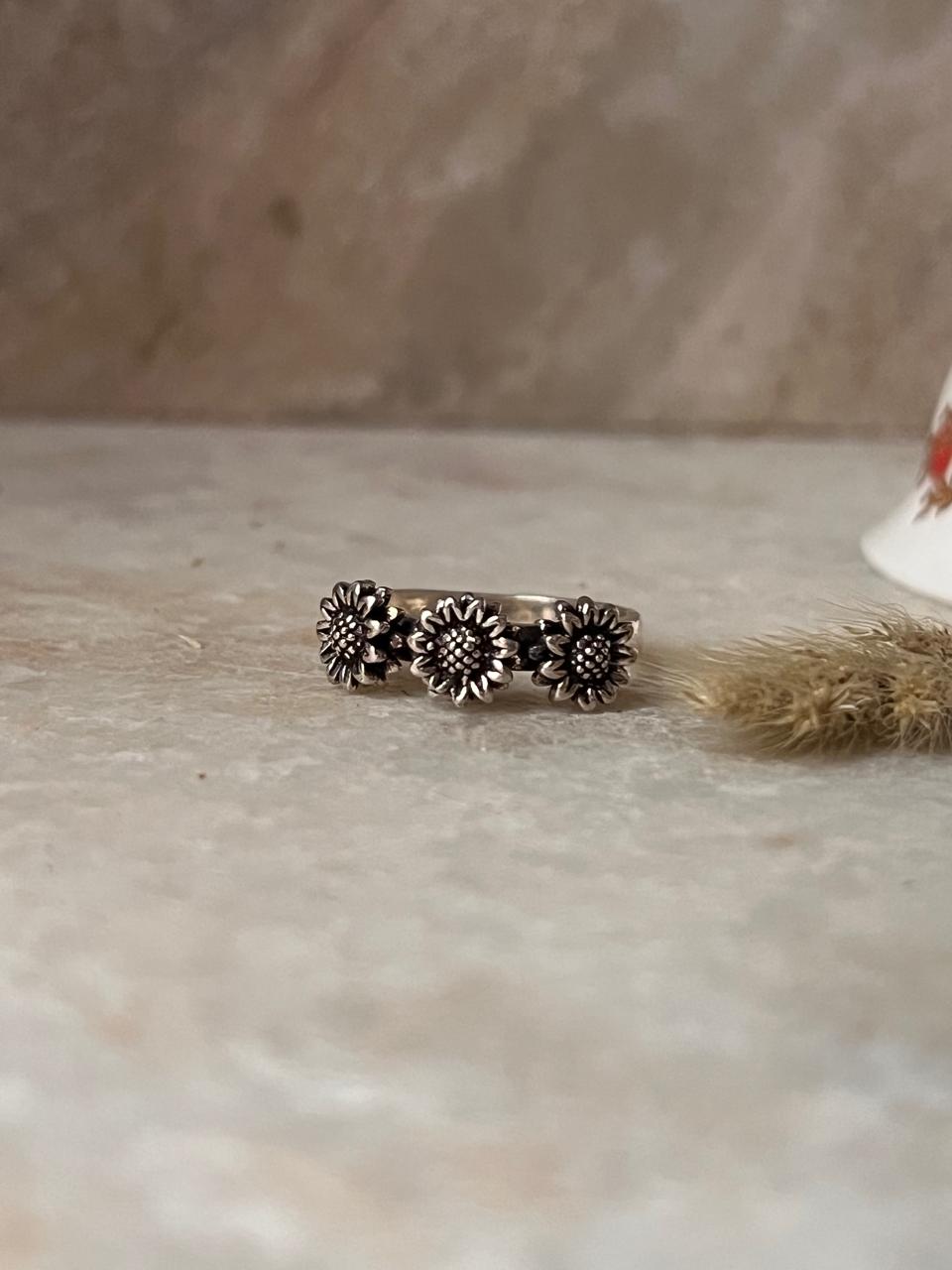 3 Daises Boho 925 Sterling Silver Ring
