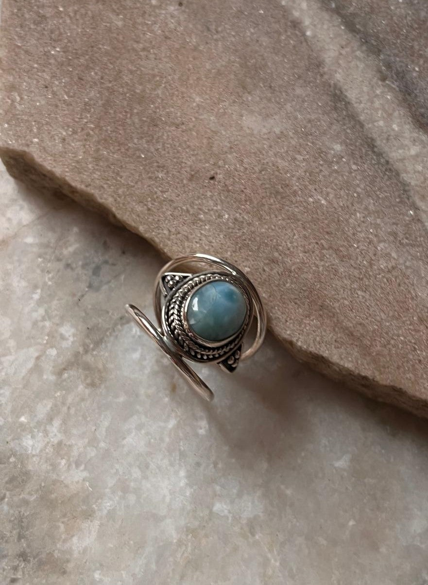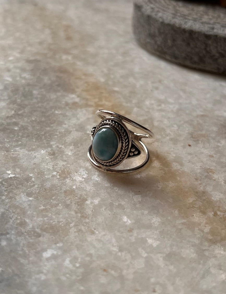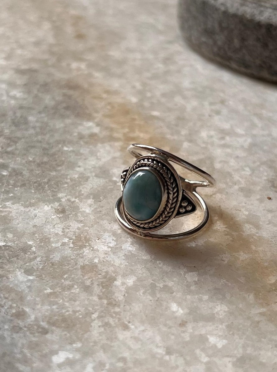Larimar Oval Boho Statement 925 Sterling Silver Ring