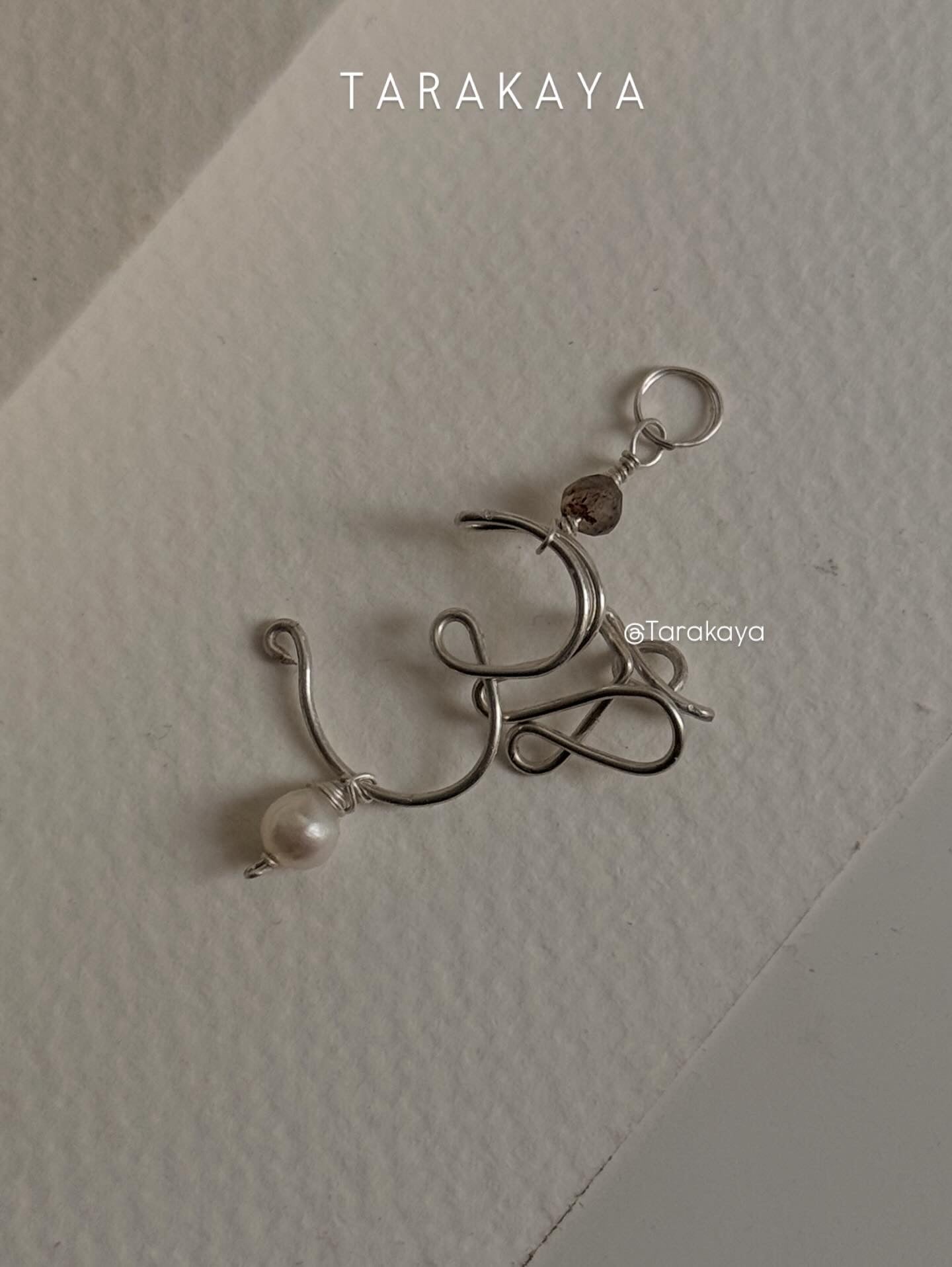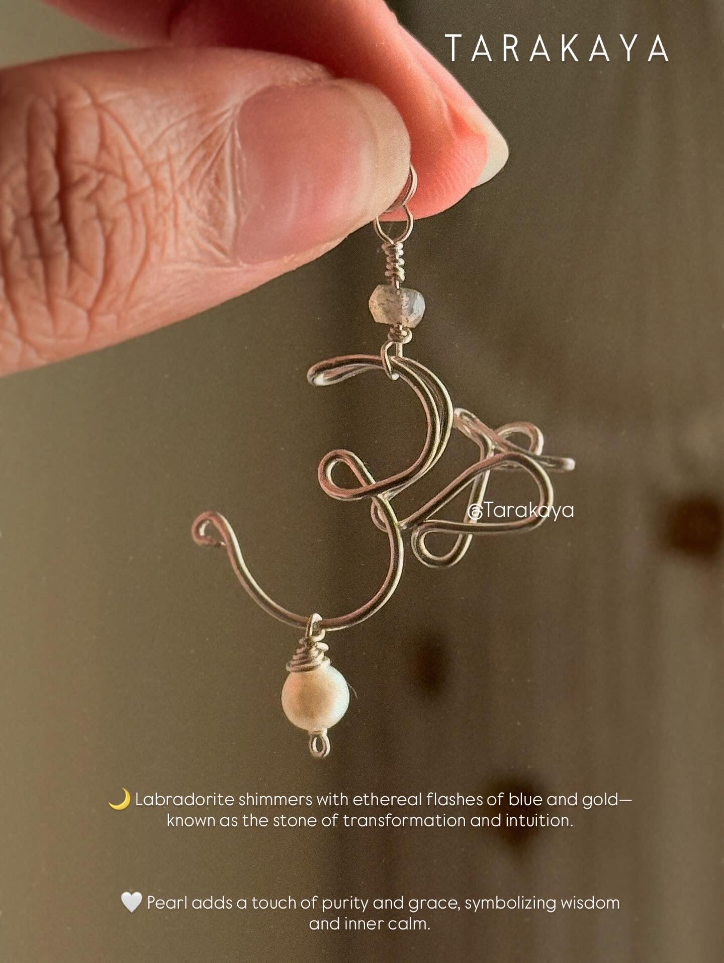 925 Sterling Silver Wire Wrapped Aum/ Om - Labradorite & Pearl Handcrafted Pendant