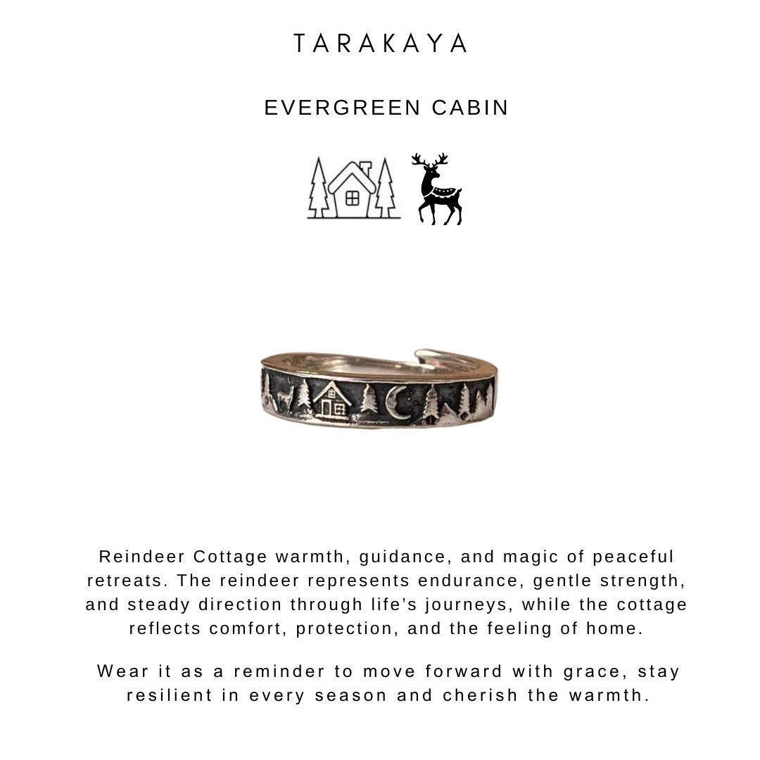 Introducing the Forest-Reindeer-Moon-Cottage Adjustable Silver Ring - designed with intricate details inspired by nature. Made with high-quality silver, this adjustable ring is perfect for everyday wear. Enhance your style and embrace the beauty of nature with this unique piece.