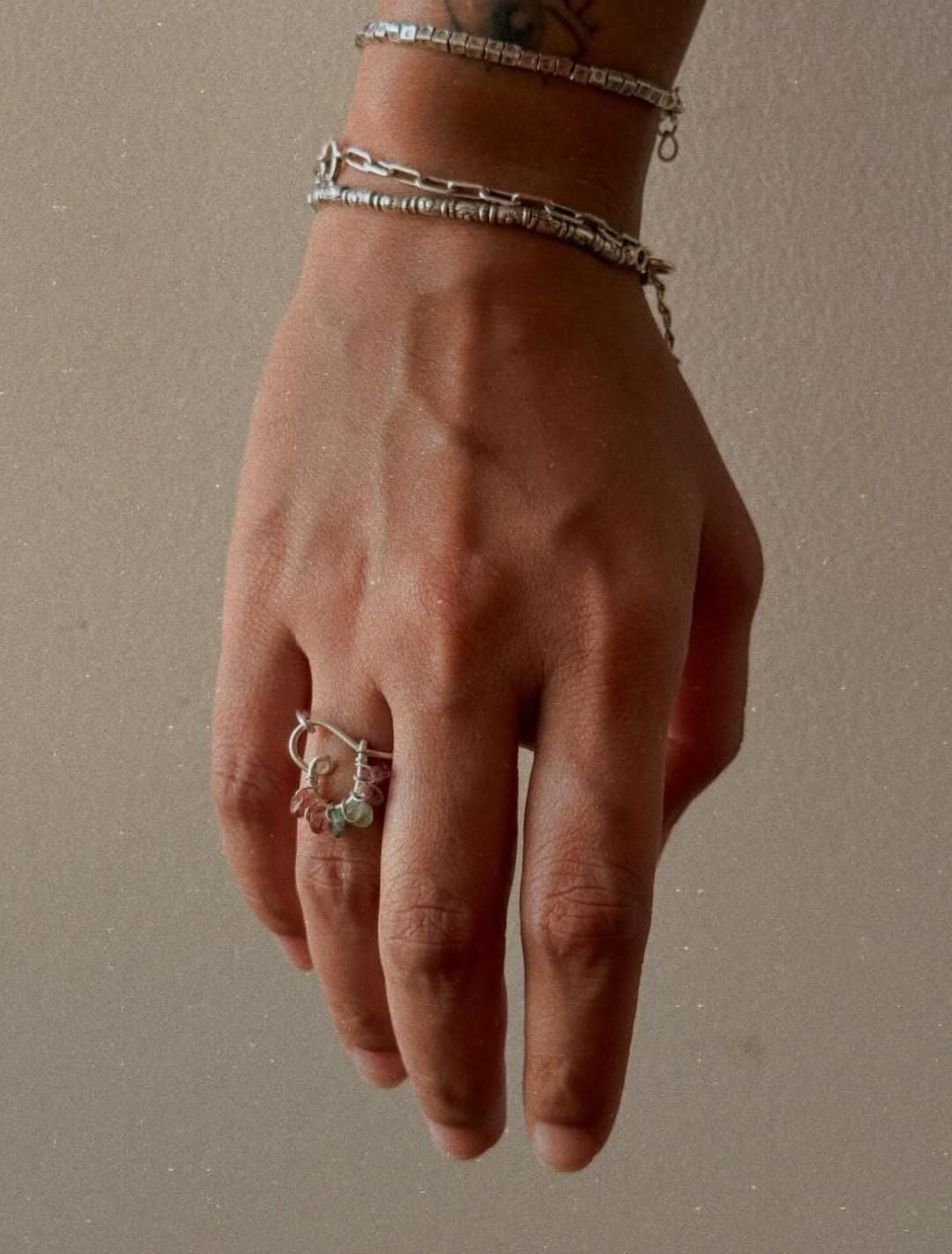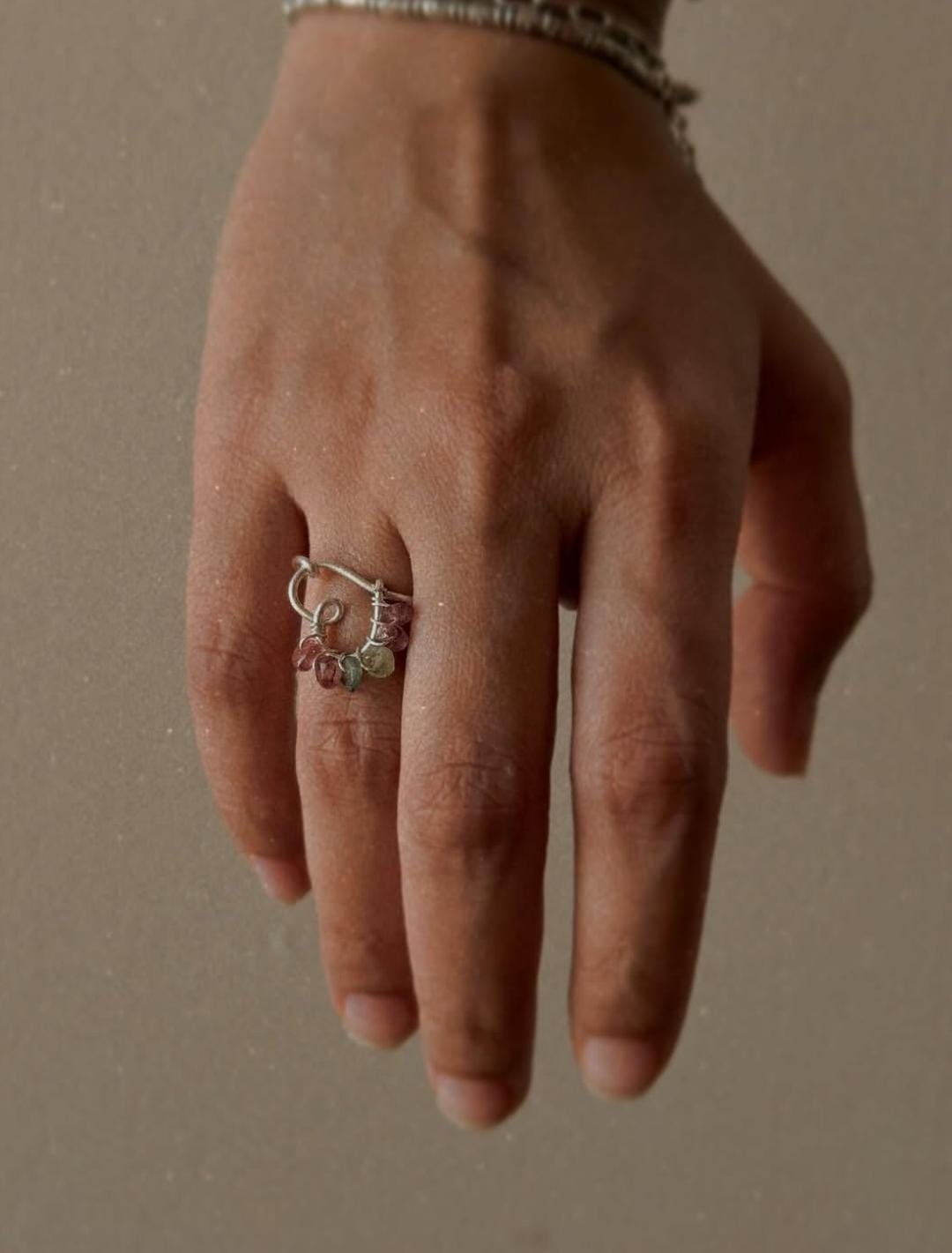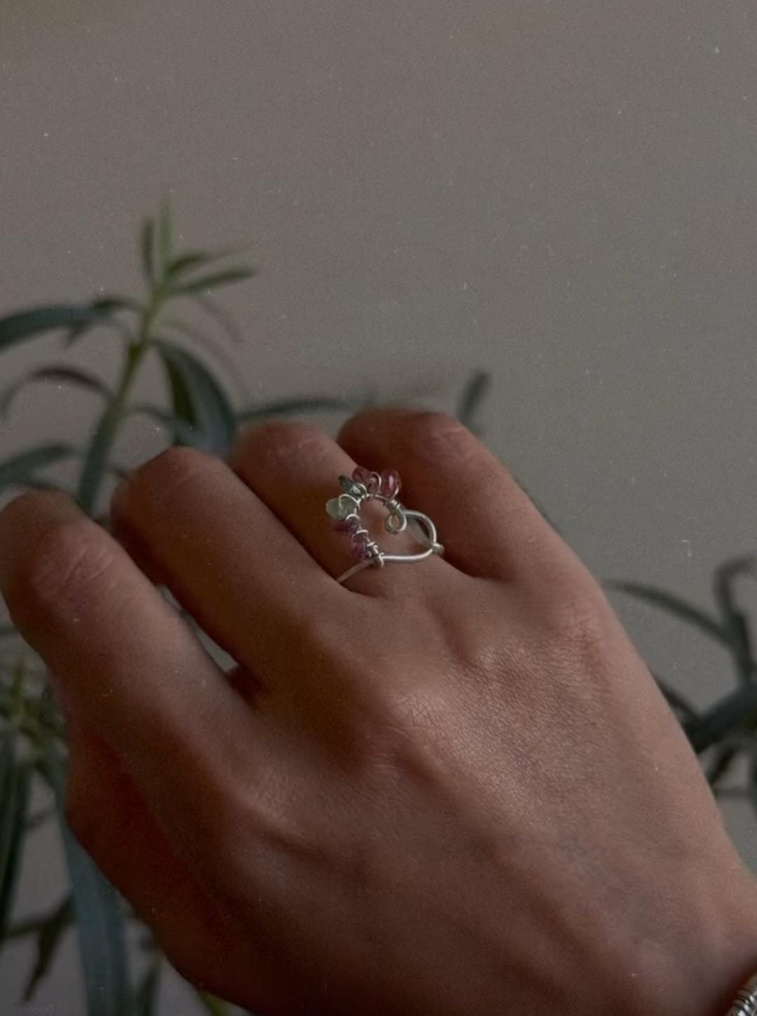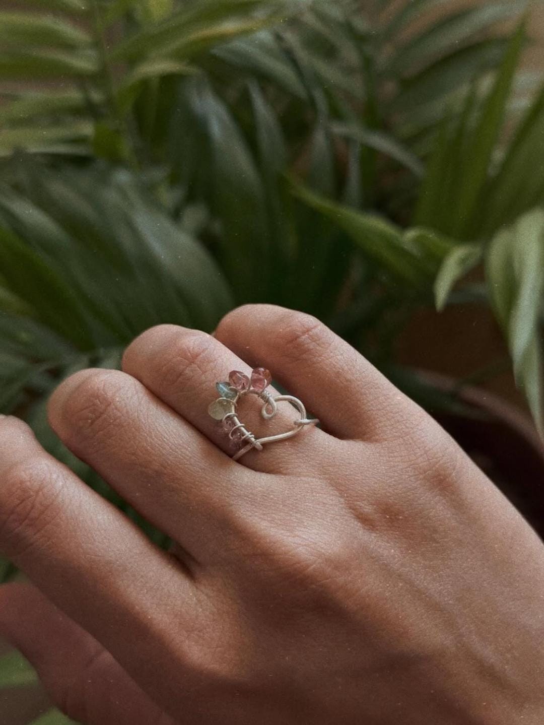 925 Sterling Silver Multi Tourmaline Wire Wrapped Heart Handcrafted Ring
