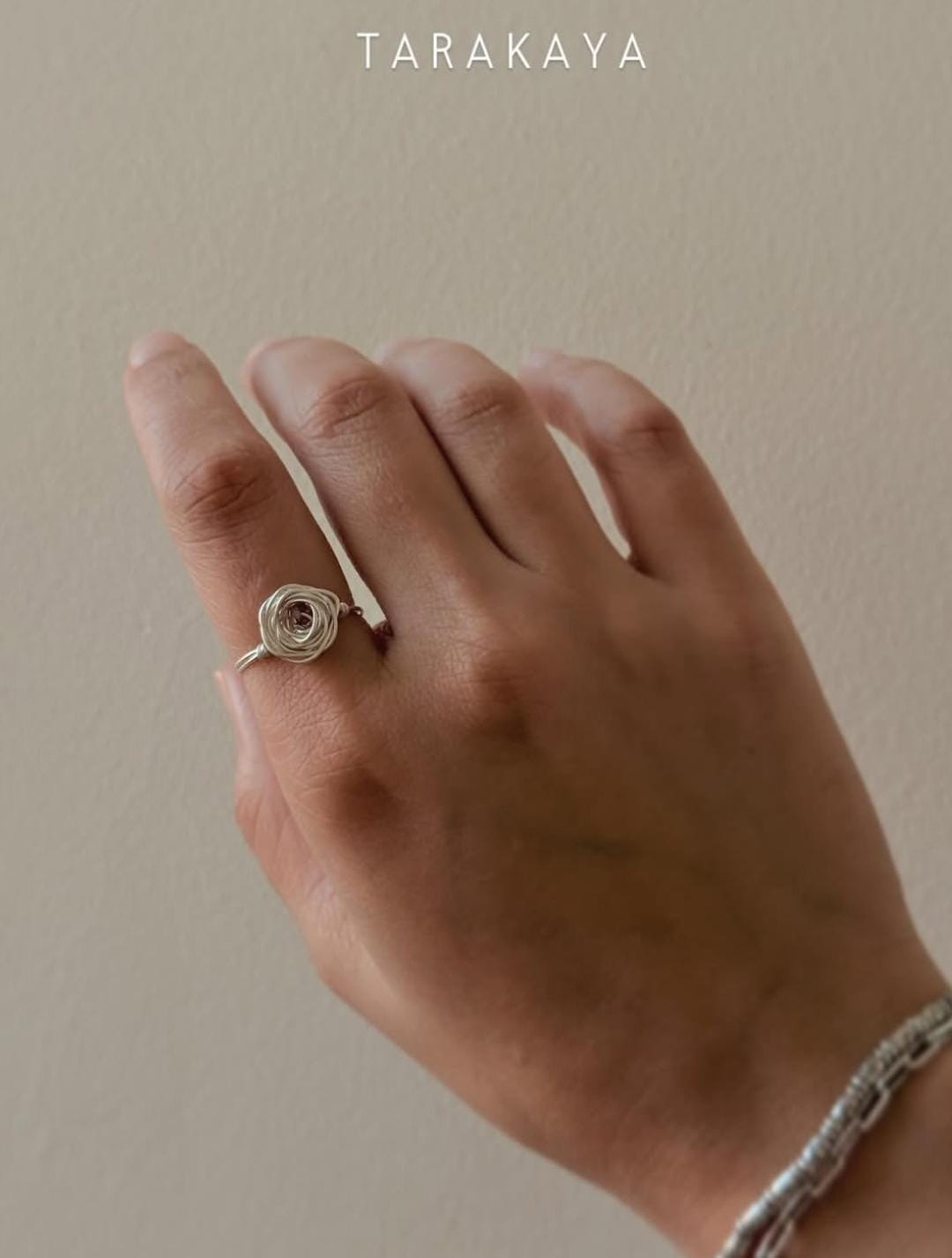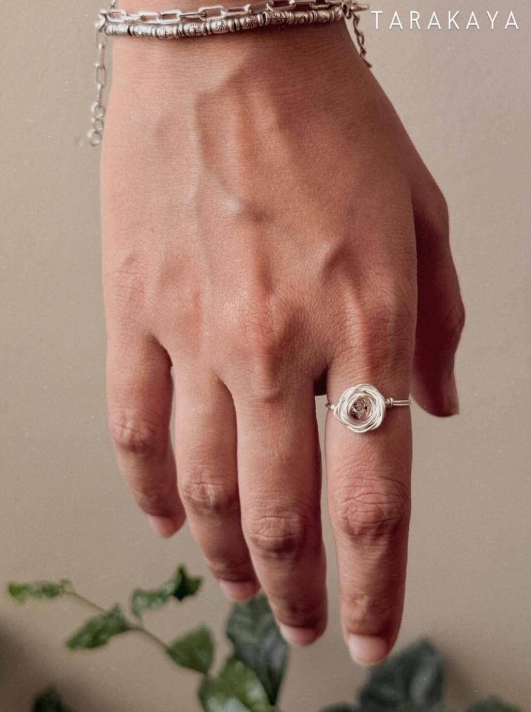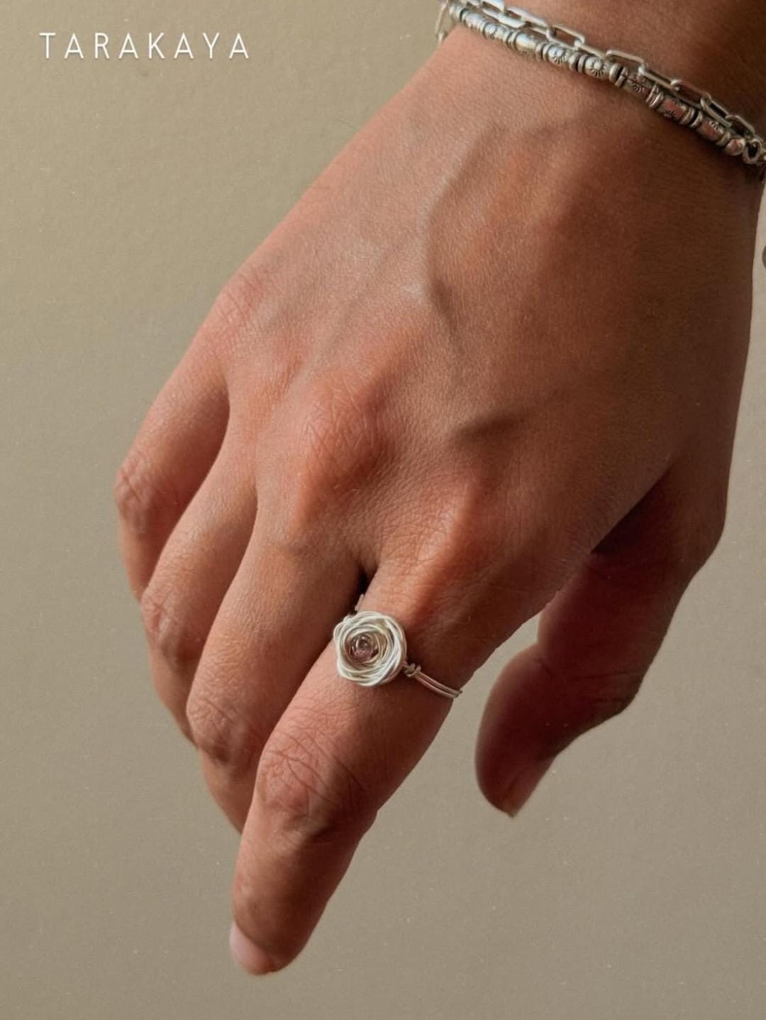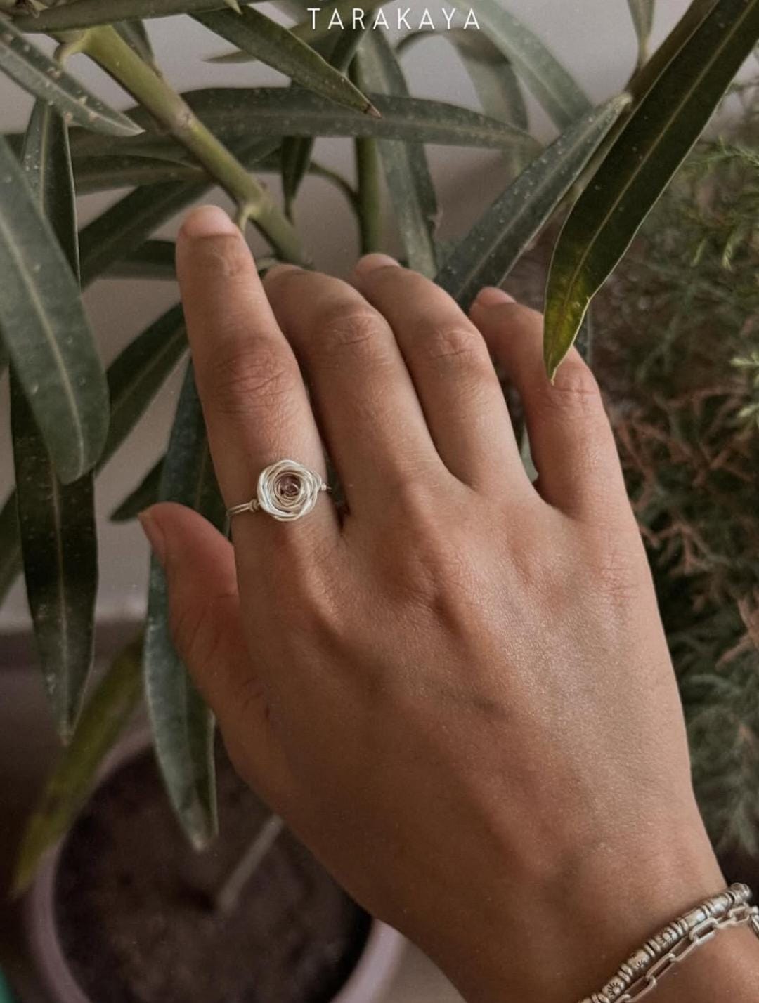 925 Sterling Silver Pink Tourmaline Wire Wrapped Rose Handcrafted Ring