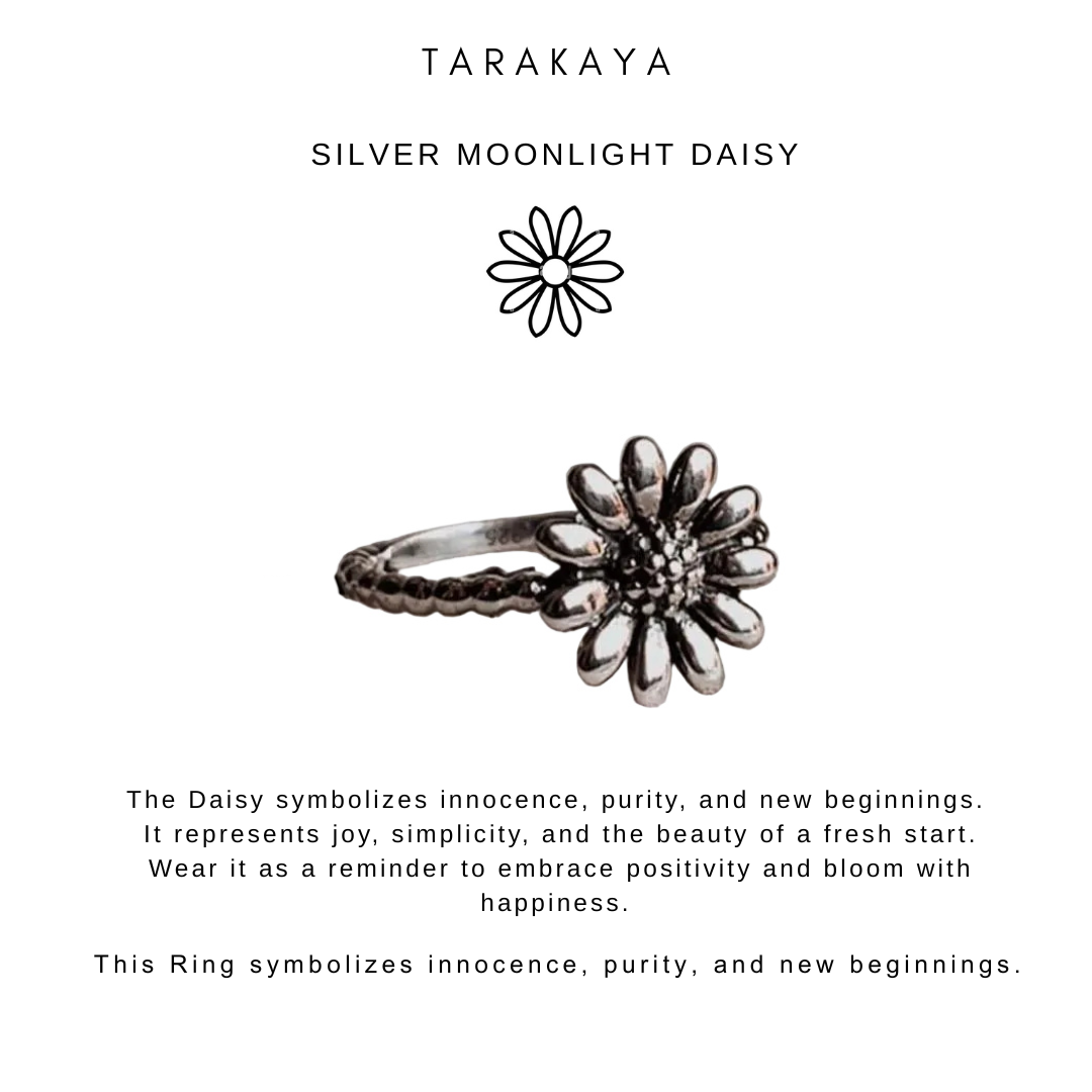 A daisy with a beaded band ring symbolizes purity, innocence, and the simple joys of life.