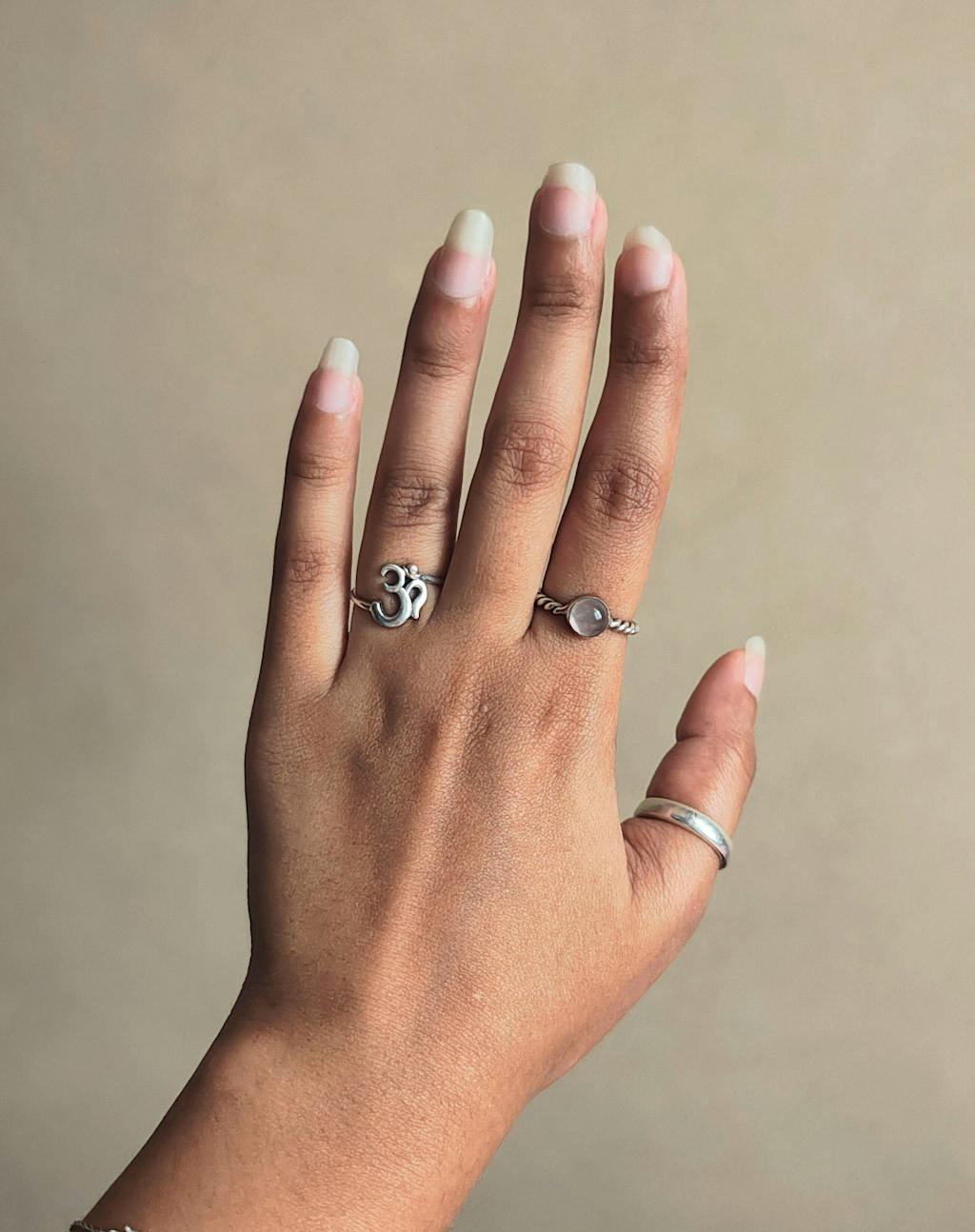 An Om ring symbolizes spiritual harmony, universal unity, and the essence of existence.