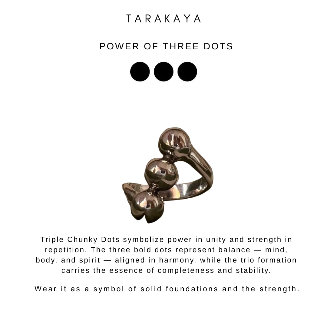 Crafted from premium 925 sterling silver, this ring offers durability, long-lasting shine, and comfortable everyday wear. The solid construction ensures a substantial feel without compromising comfort. The 925 Sterling Silver Triple Chunky Dots Contemporary Ring is designed to stand out effortlessly, whether worn as a solo statement or paired with slimmer bands for a layered, modern look.