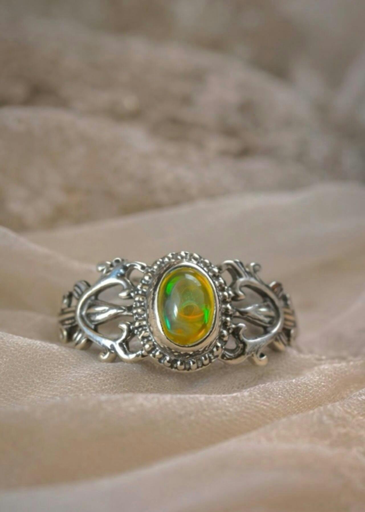 Perfect as a thoughtful gift for birthdays, anniversaries, or anyone who appreciates handcrafted gemstone jewelry, the 925 Sterling Silver Vintage Motif Natural Ethiopian Opal Ring symbolizes creativity, hope, and refined elegance. Its timeless design ensures it will be a cherished addition to any jewelry collection.