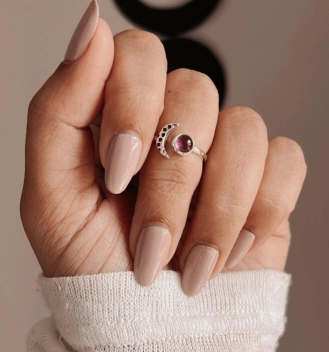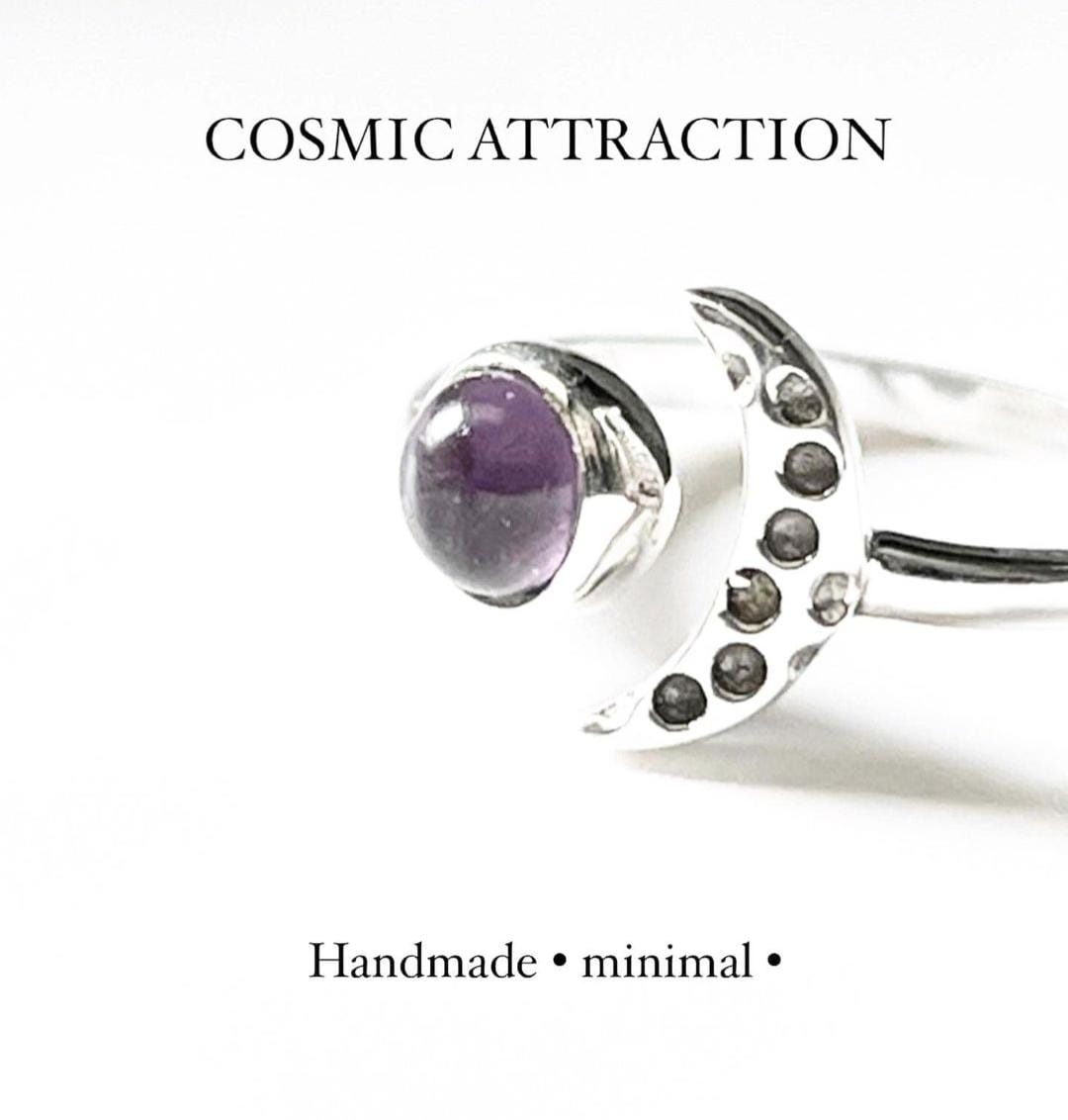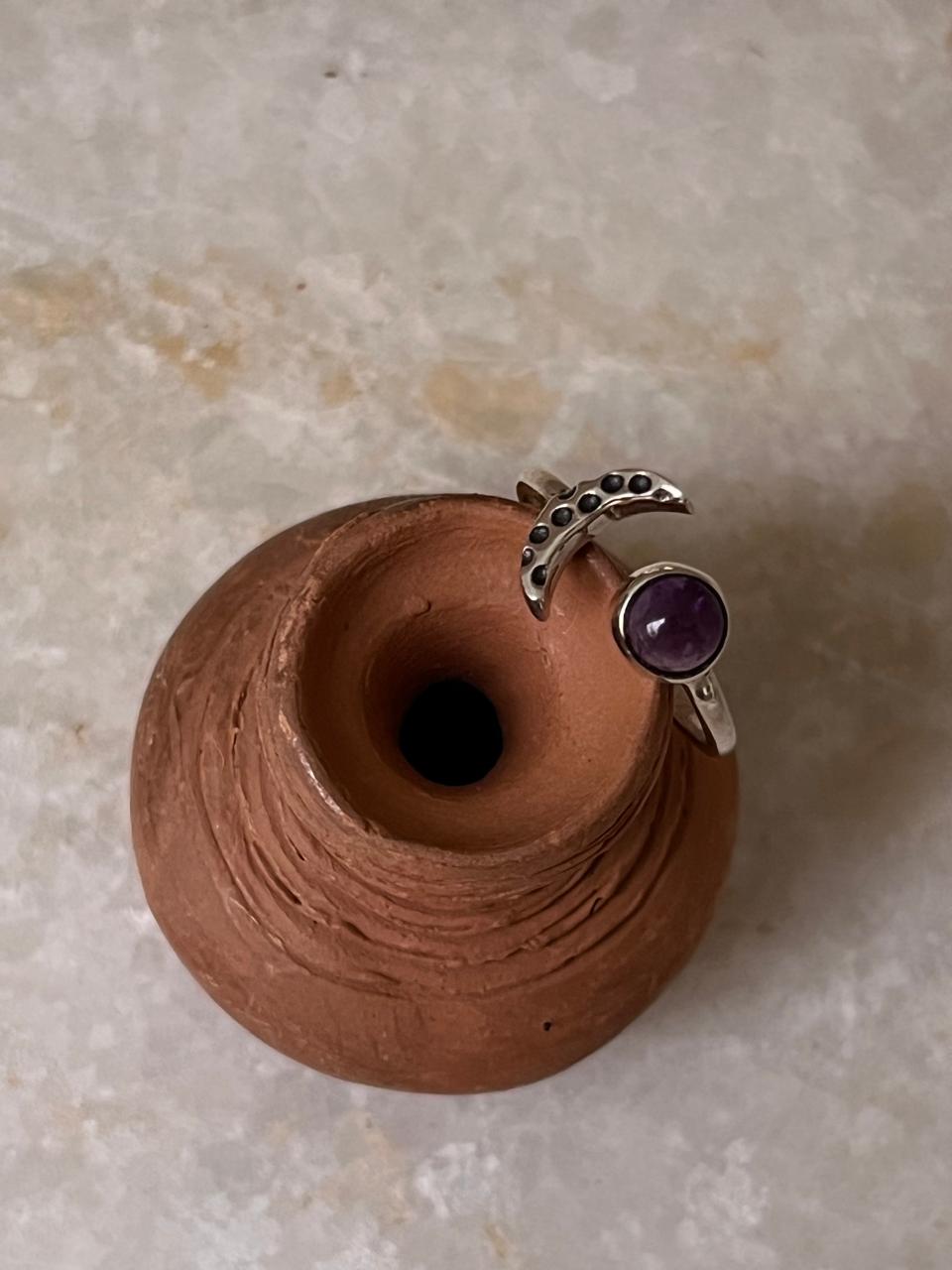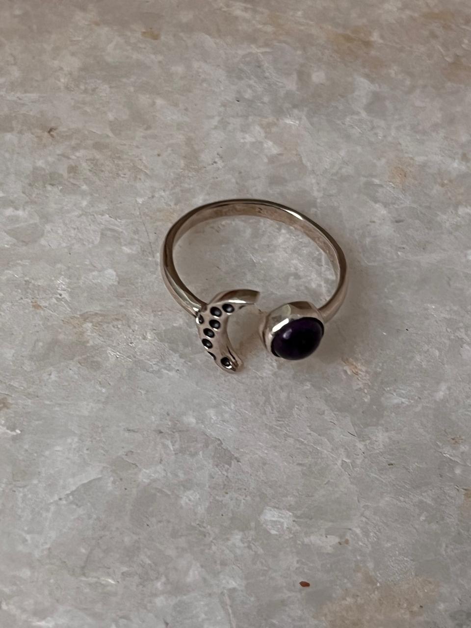 Amethyst Crescent Moon Adjustable 925 Sterling Silver Ring