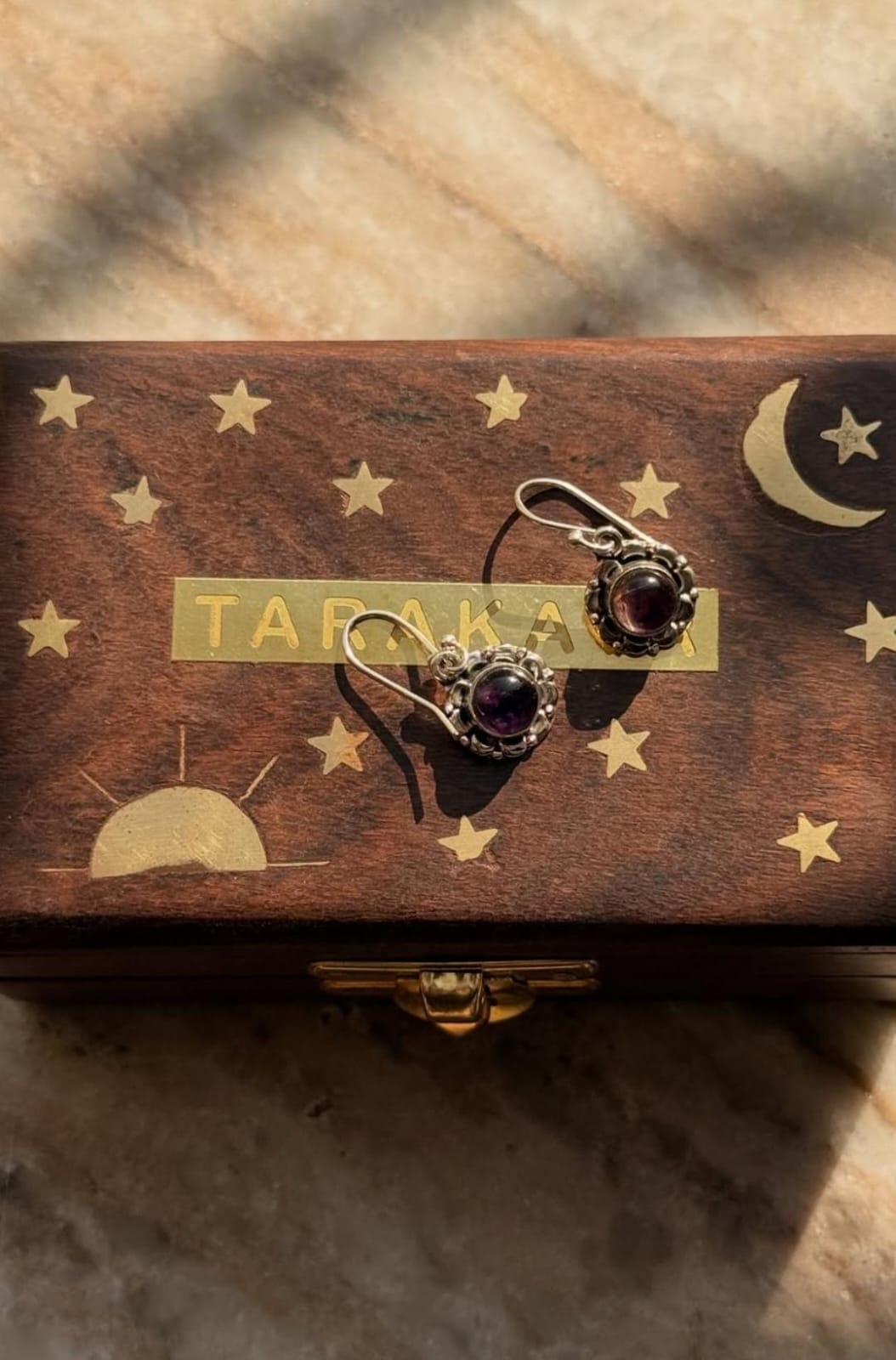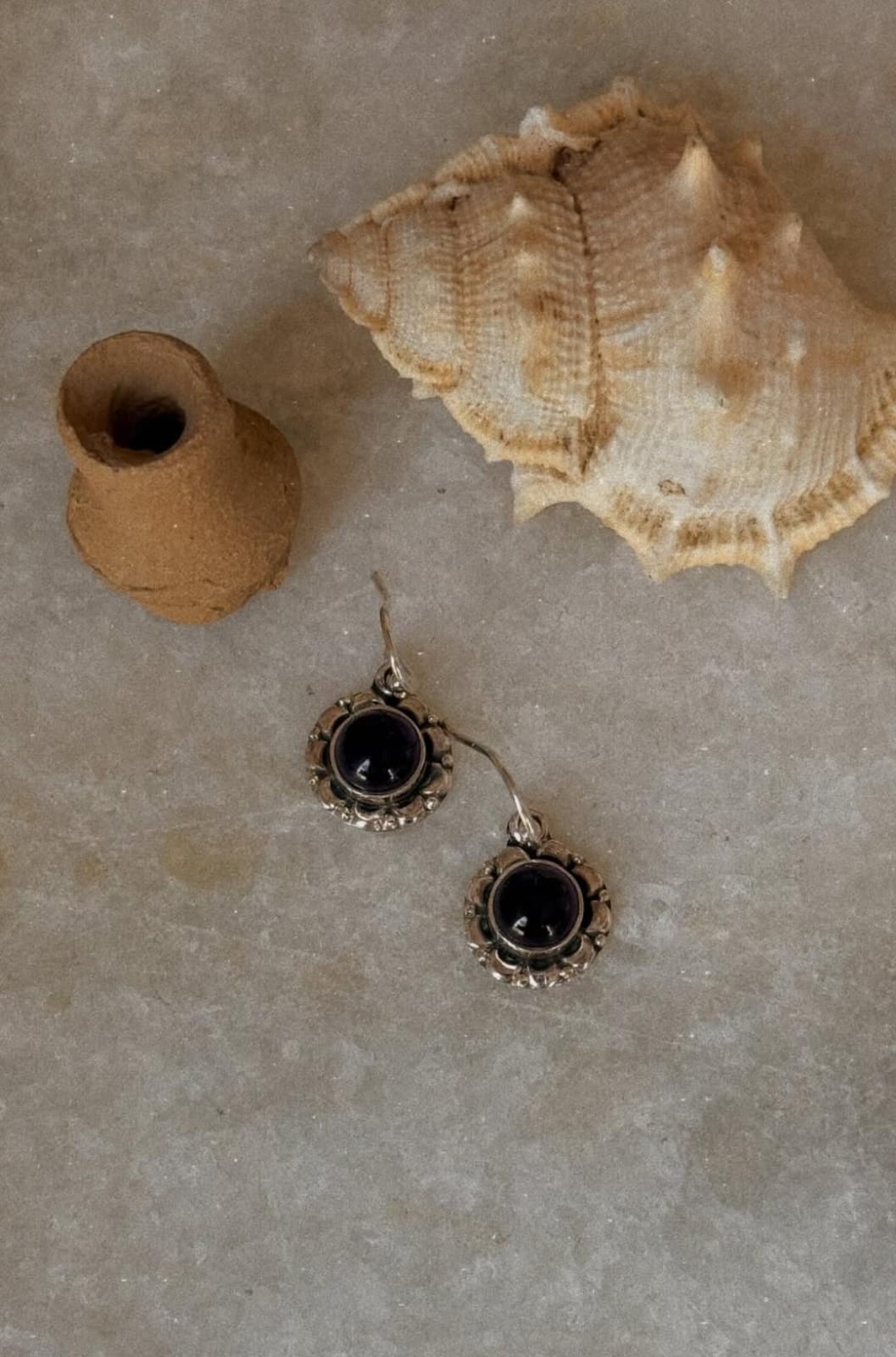 Amethyst Round Floral Boho 925 Sterling Silver Earrings