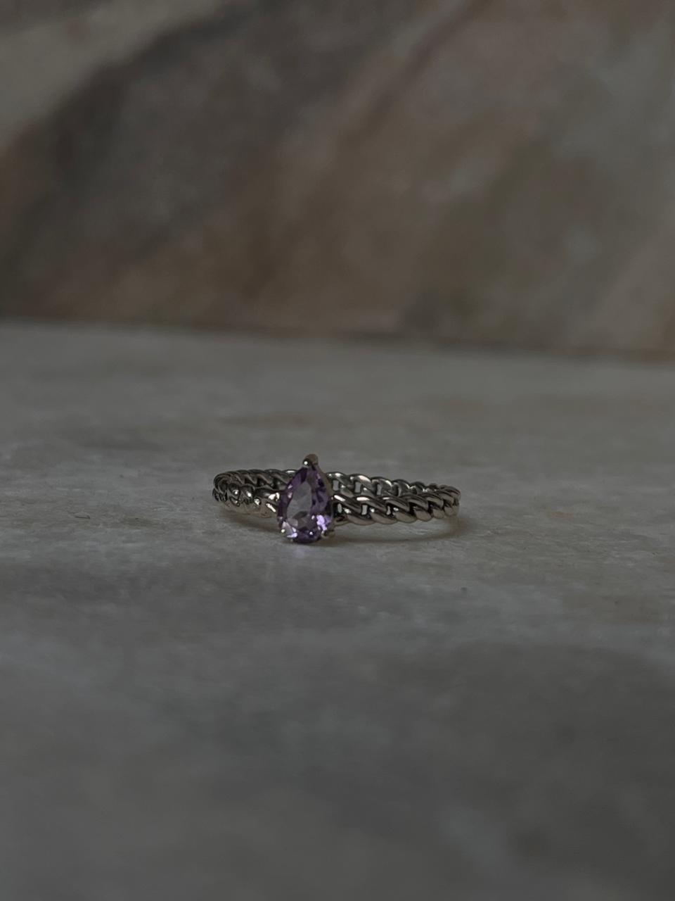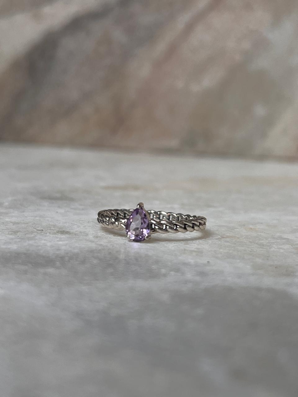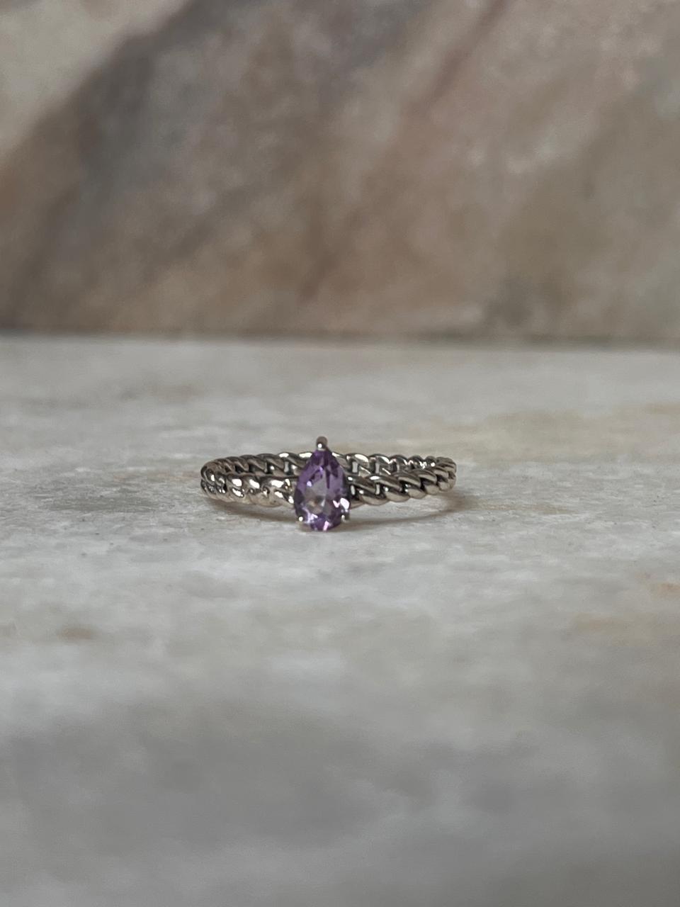 Amethyst Pear Solitaire Cuban Link Band 925 Sterling Silver Ring
