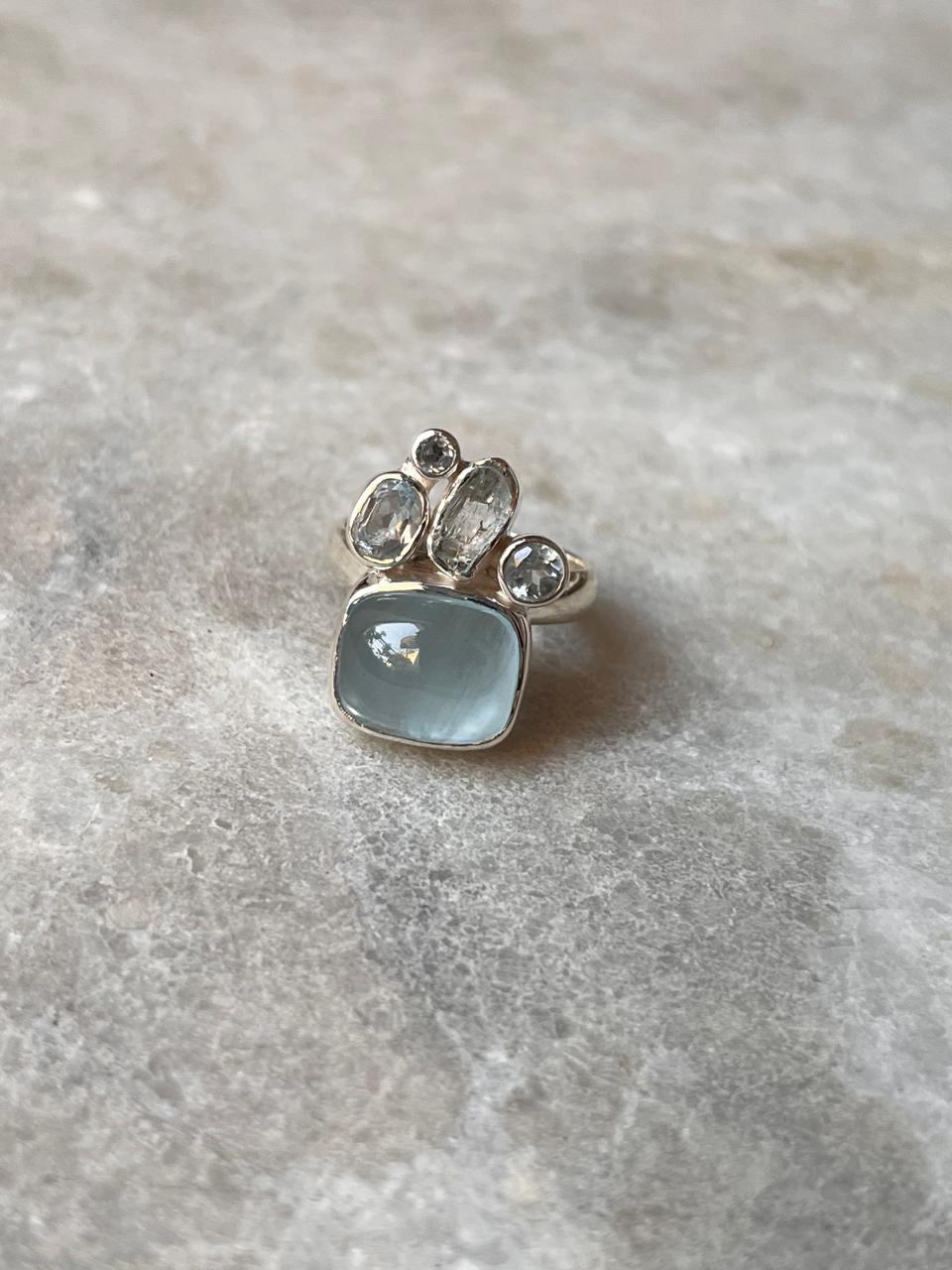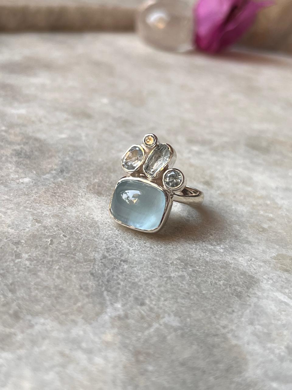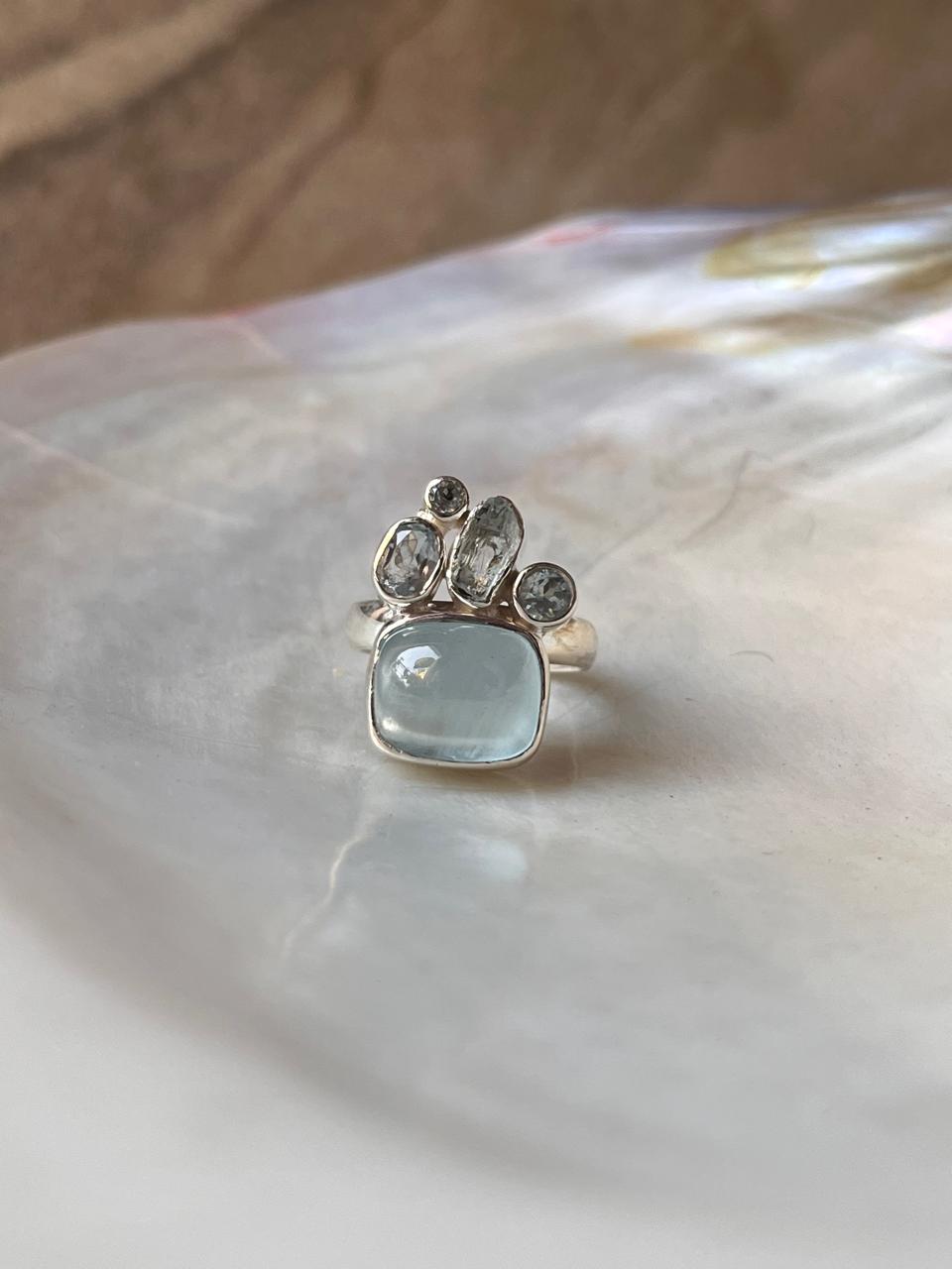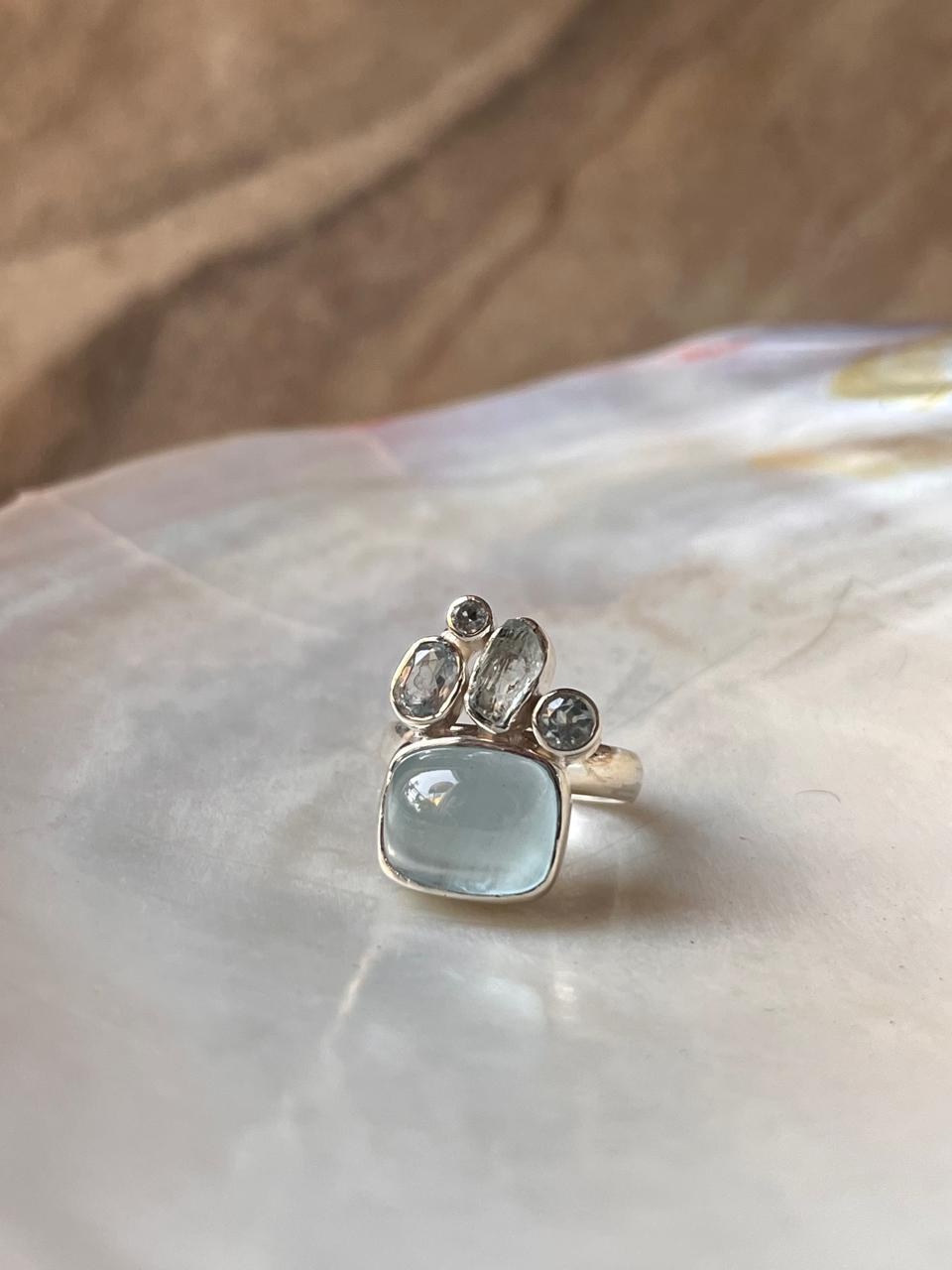 Aquamarine & Blue Topaz Cluster 1 925 Sterling Silver Ring