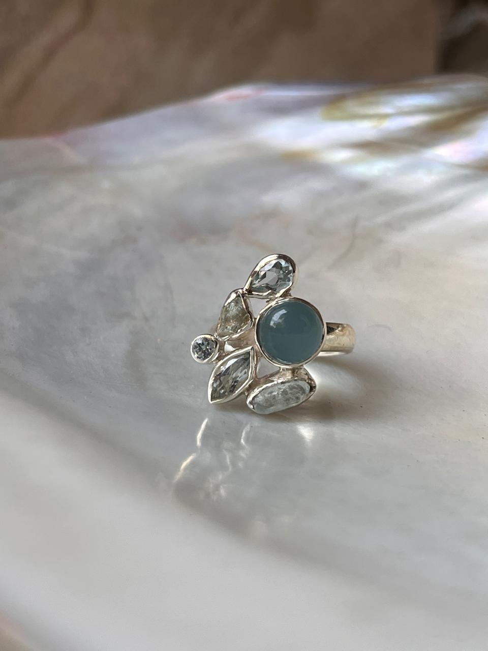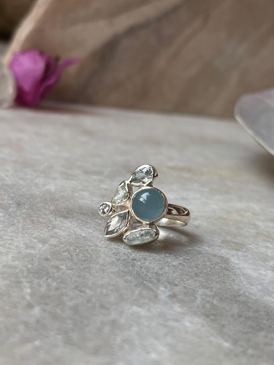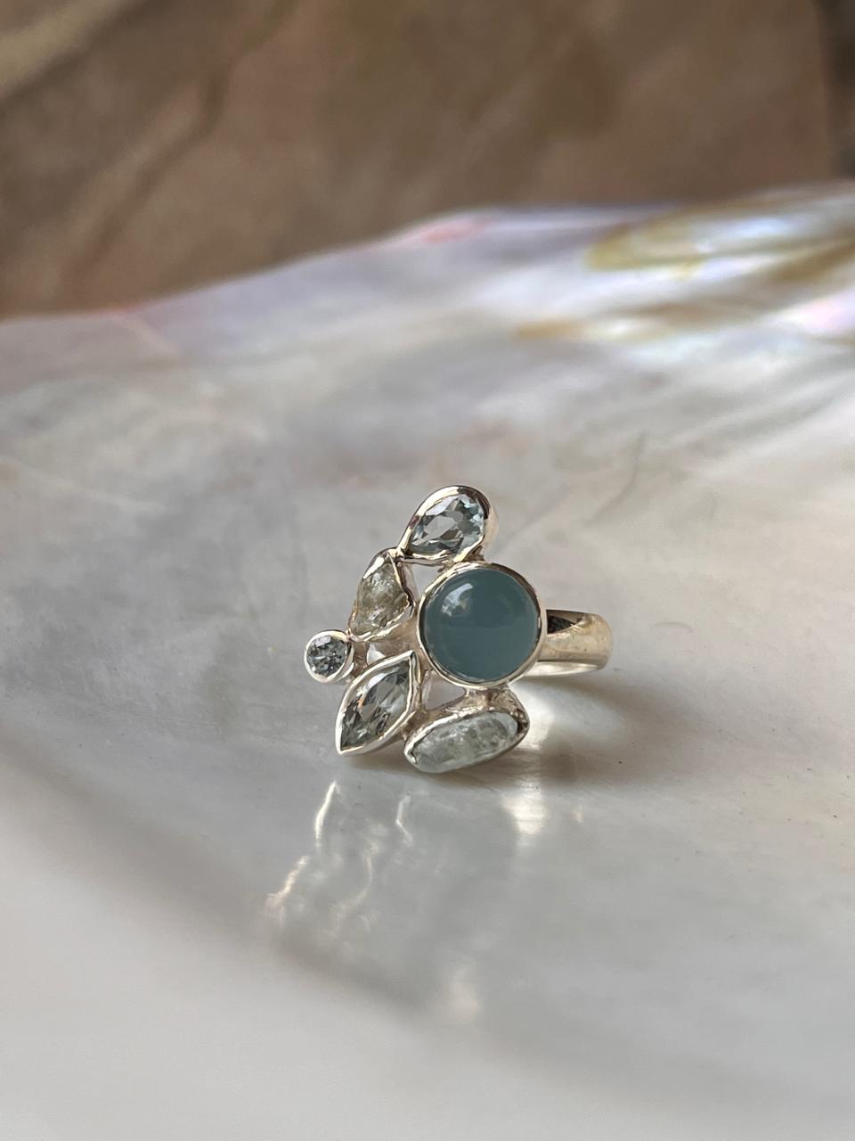 Aquamarine & Blue Topaz Cluster 3 925 Sterling Silver Ring