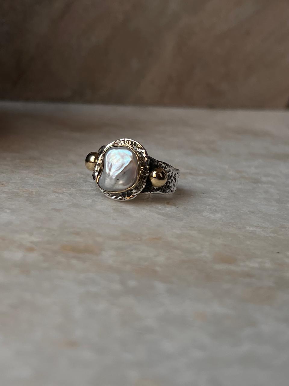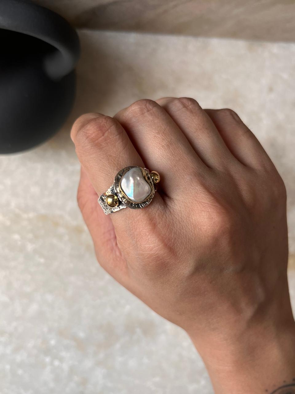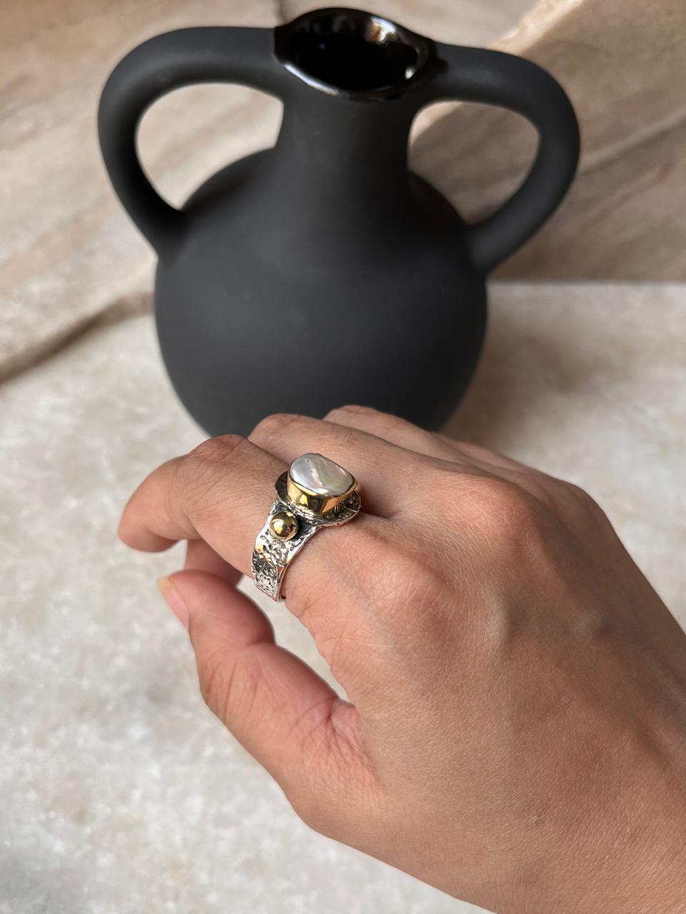 Baroque Pearl Rustic Fusion Handcrafted 925 Sterling Silver Ring