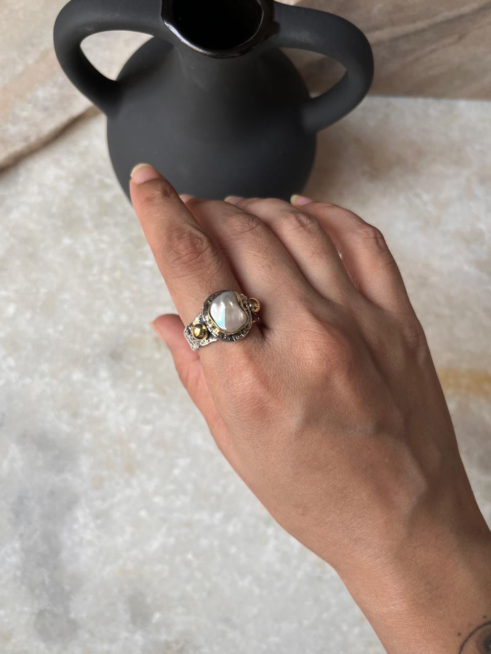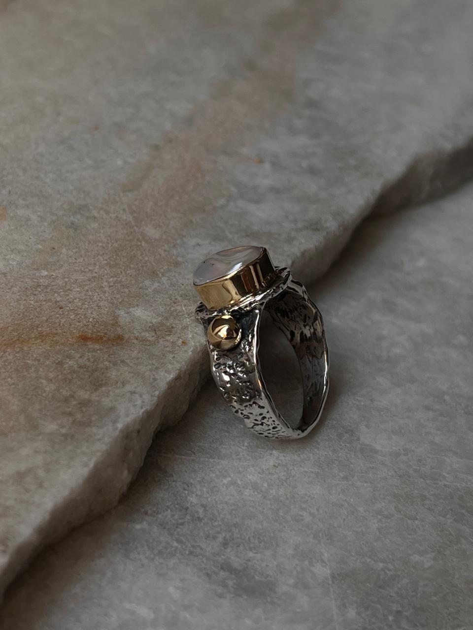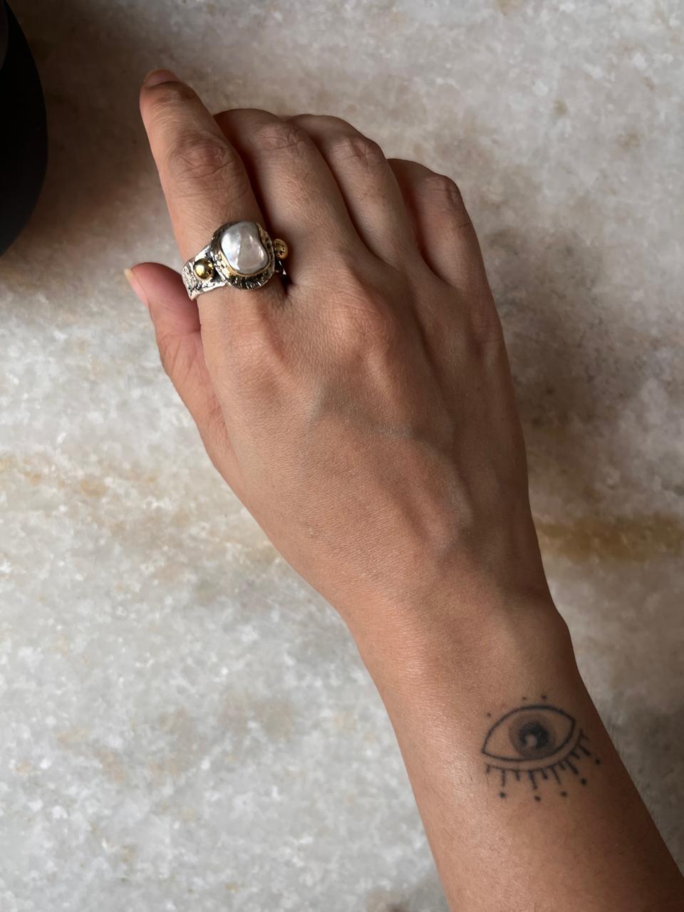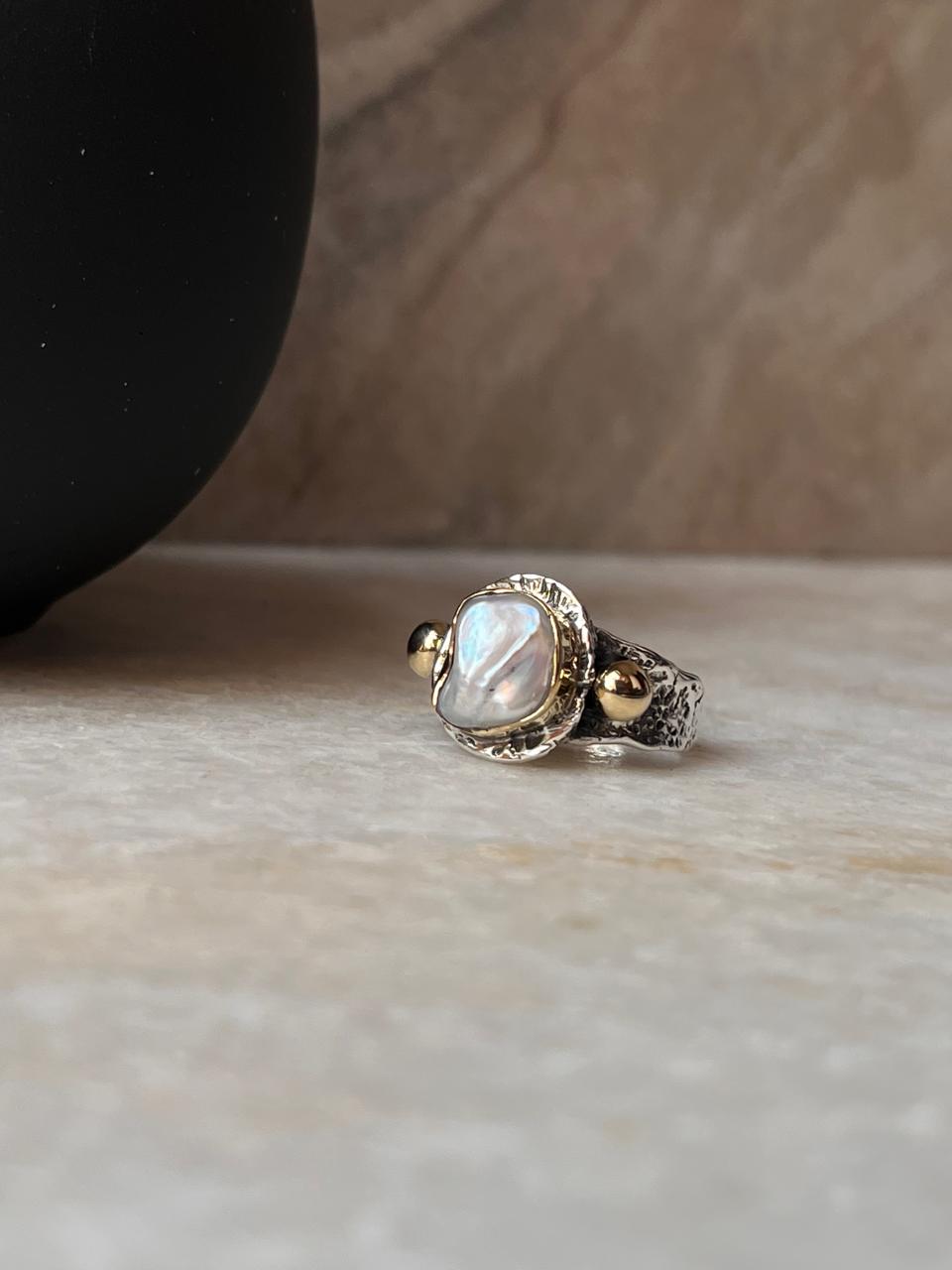 Baroque Pearl Rustic Fusion Handcrafted 925 Sterling Silver Ring