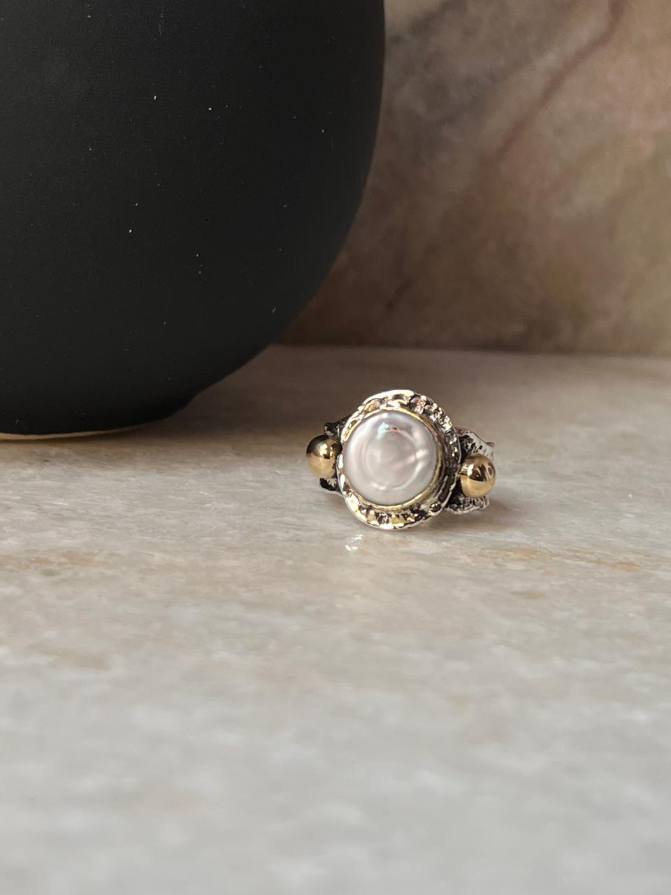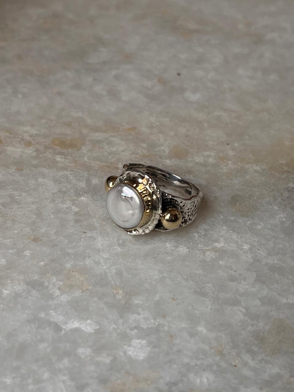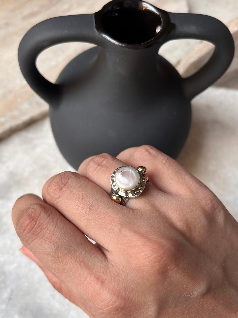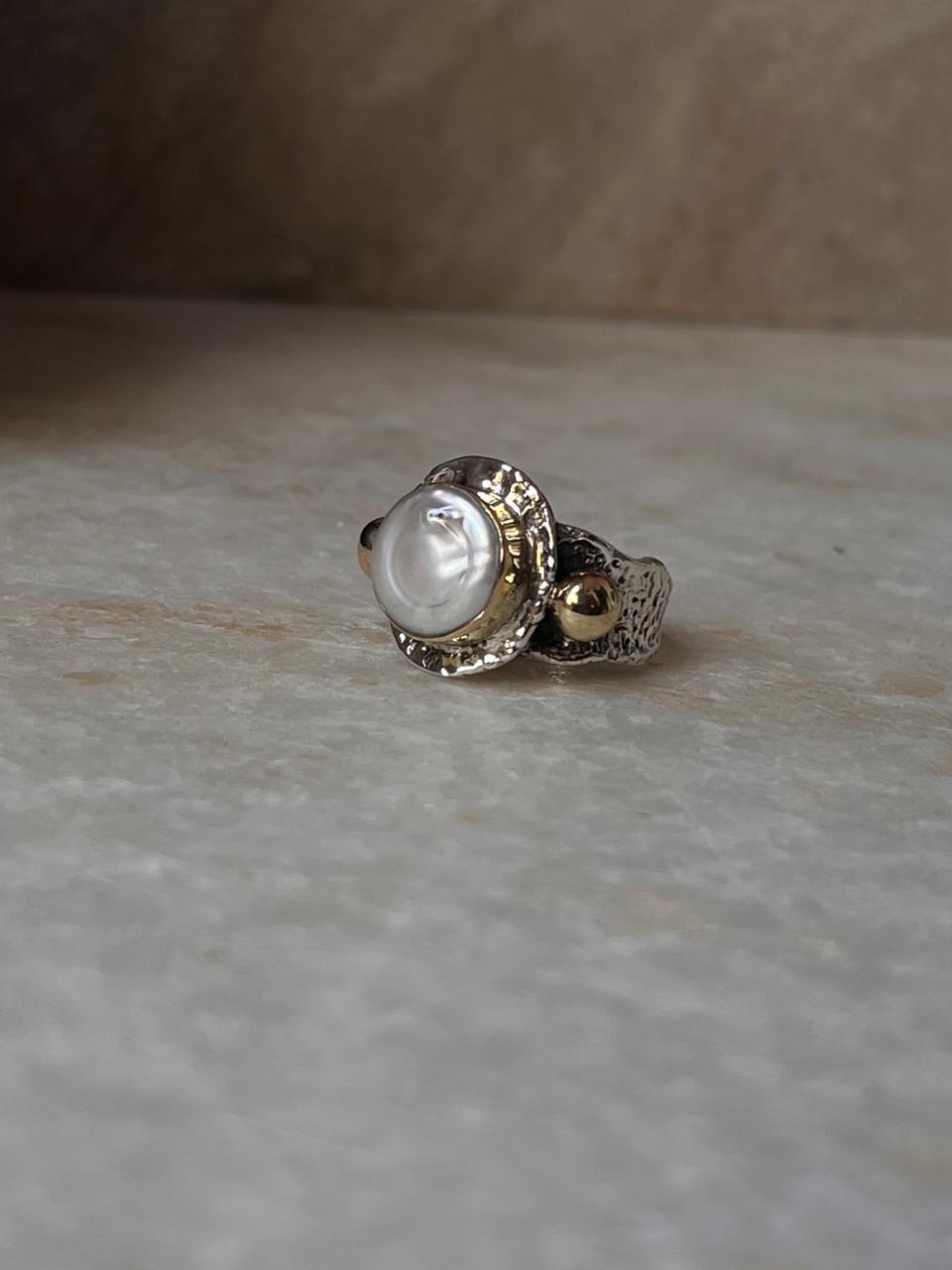 Baroque Pearl Round Rustic Fusion Handcrafted 925 Sterling Silver Ring