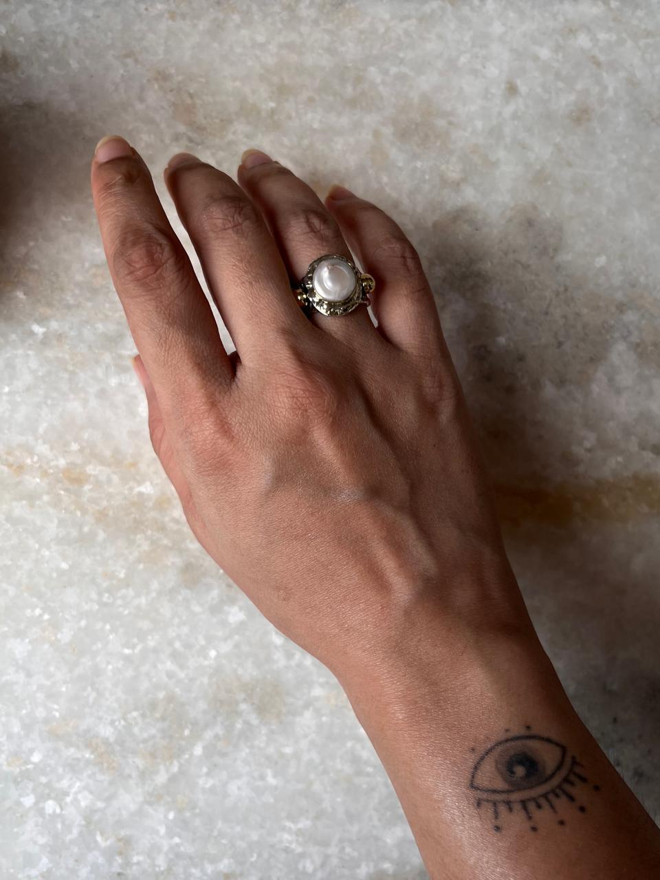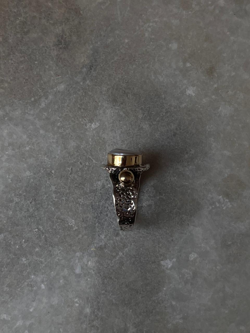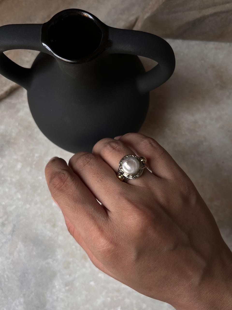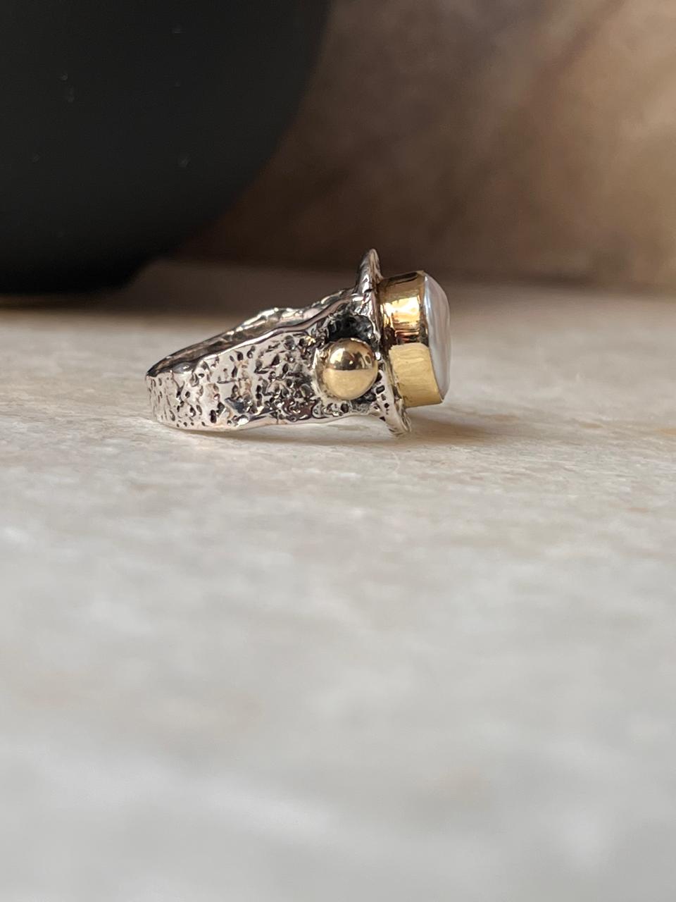Baroque Pearl Round Rustic Fusion Handcrafted 925 Sterling Silver Ring