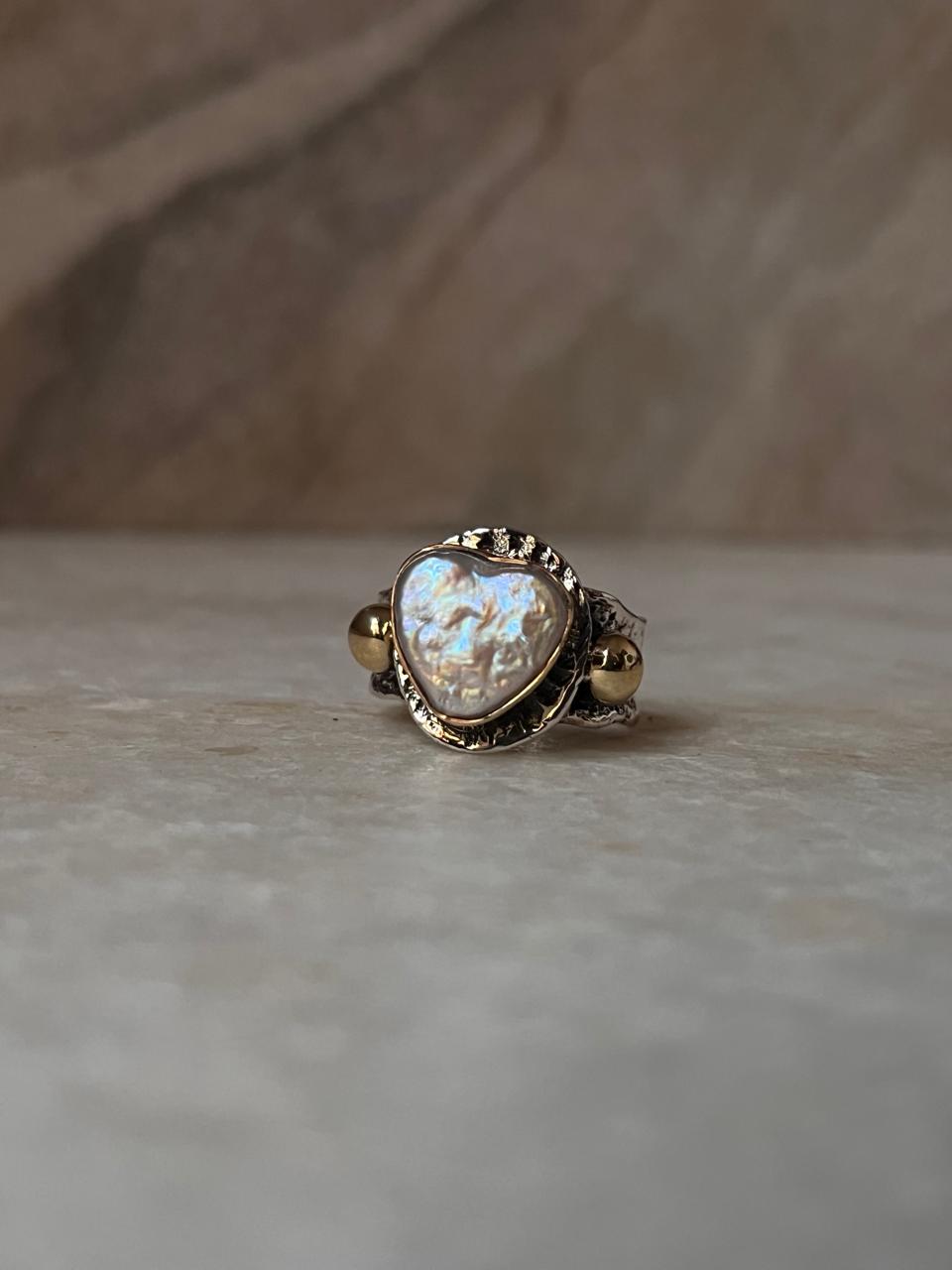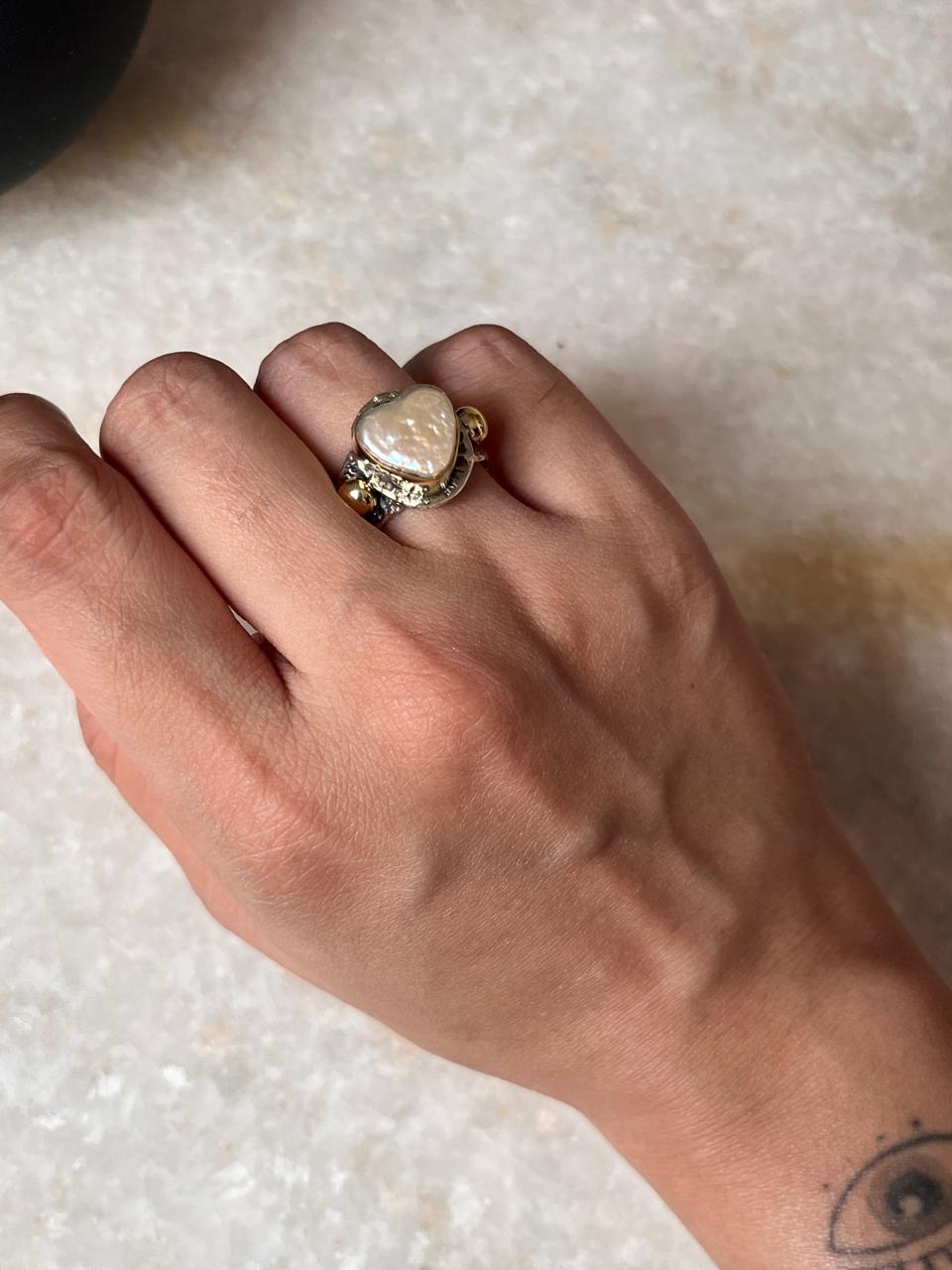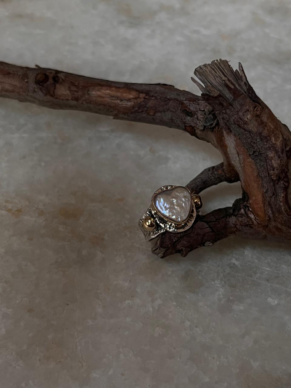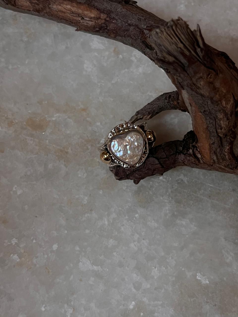 Baroque Pearl Heart Rustic Fusion Handcrafted 925 Sterling Silver Ring