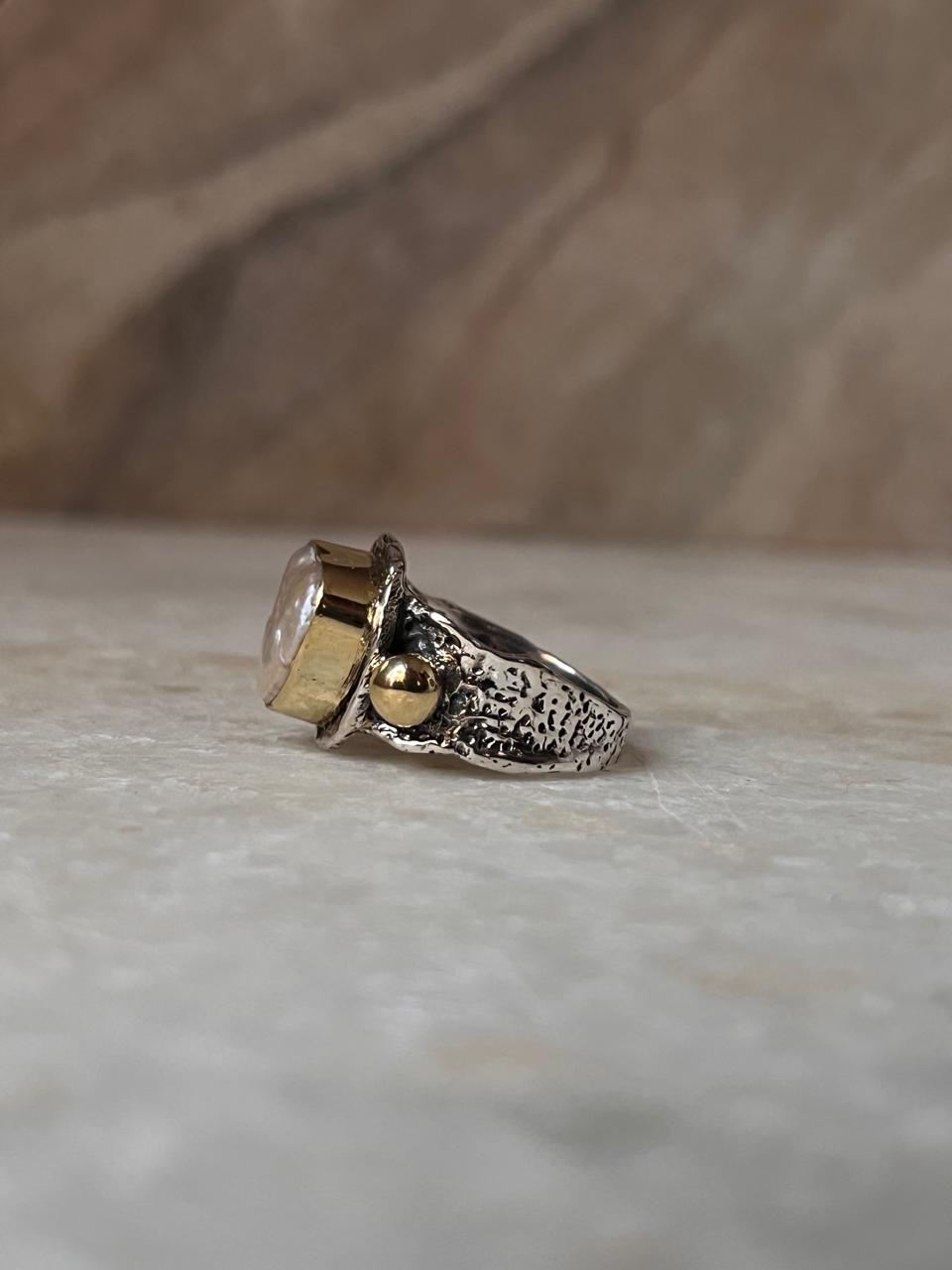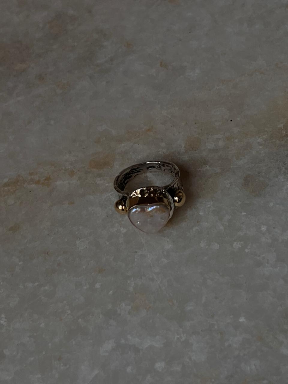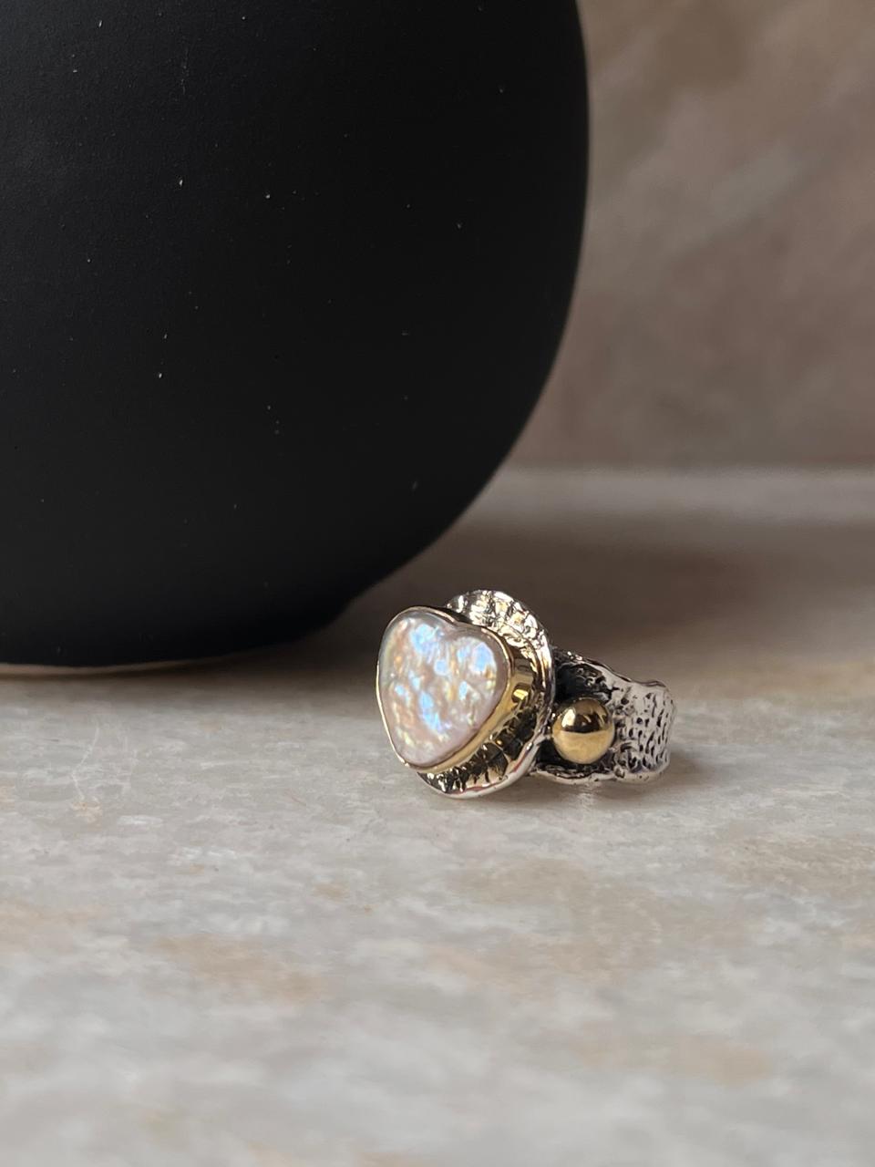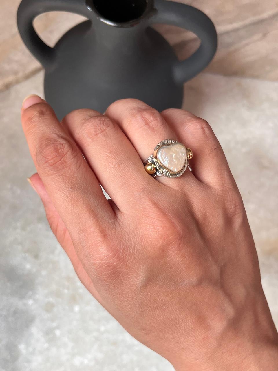 Baroque Pearl Heart Rustic Fusion Handcrafted 925 Sterling Silver Ring