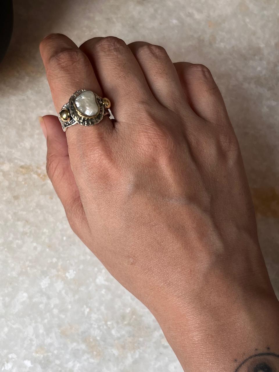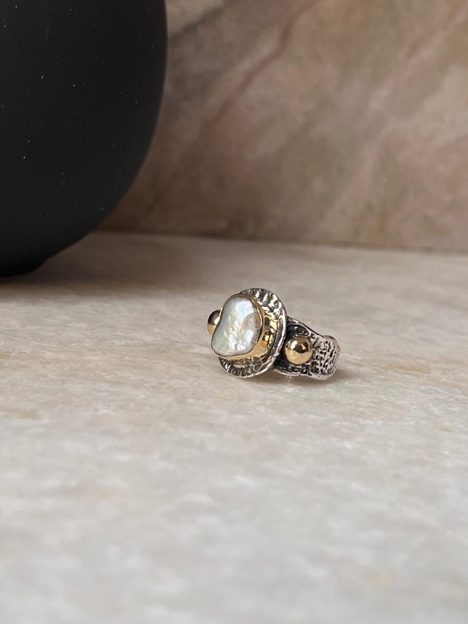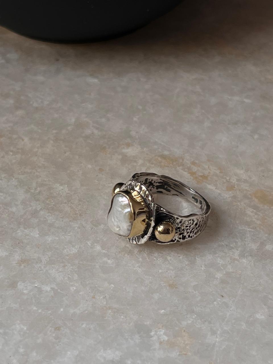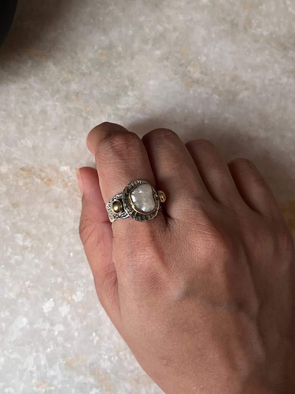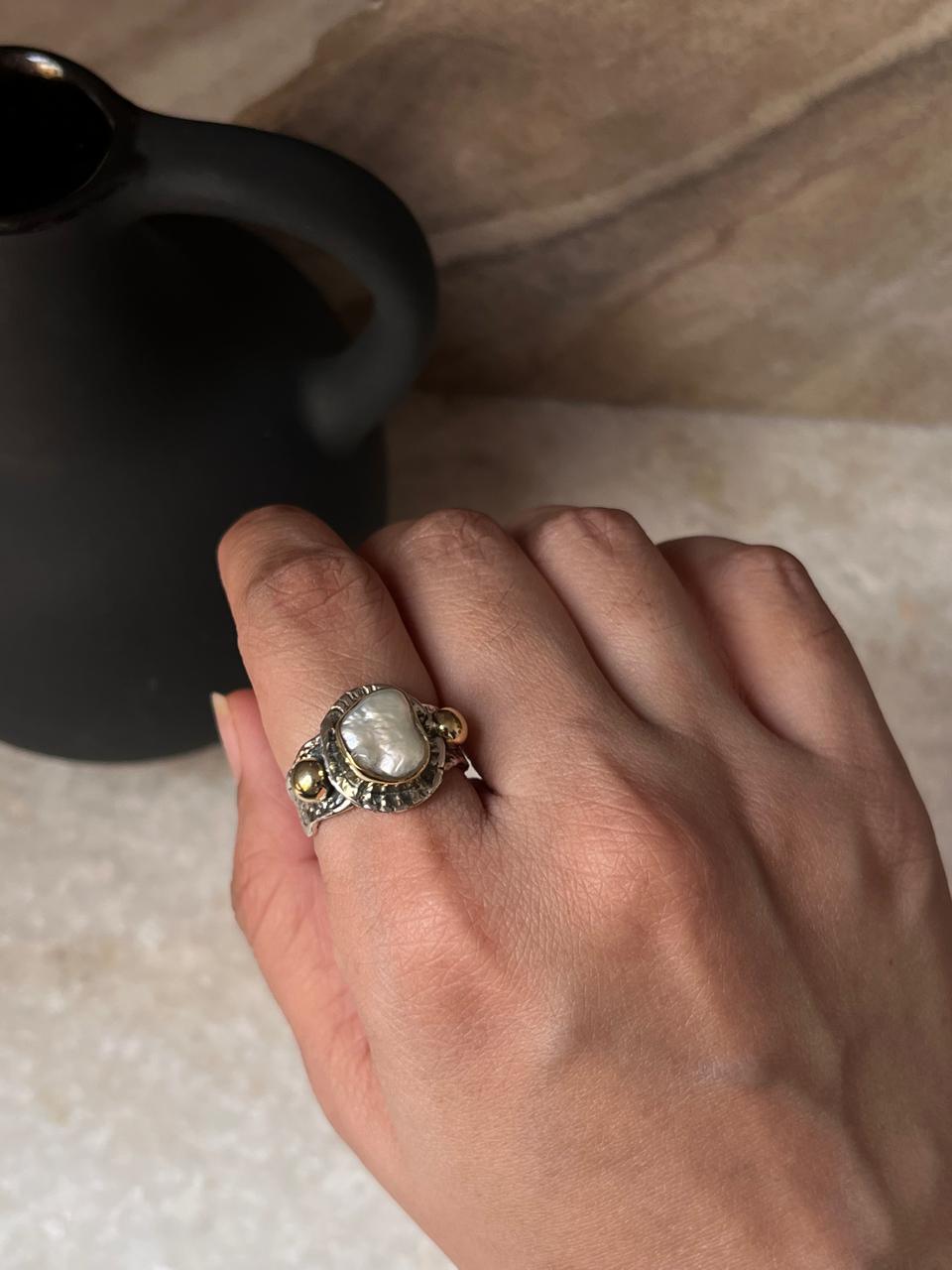 Baroque Pearl Rustic Fusion Handcrafted 925 Sterling Silver Ring