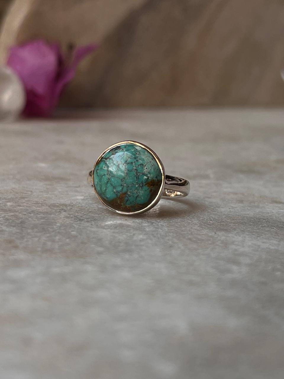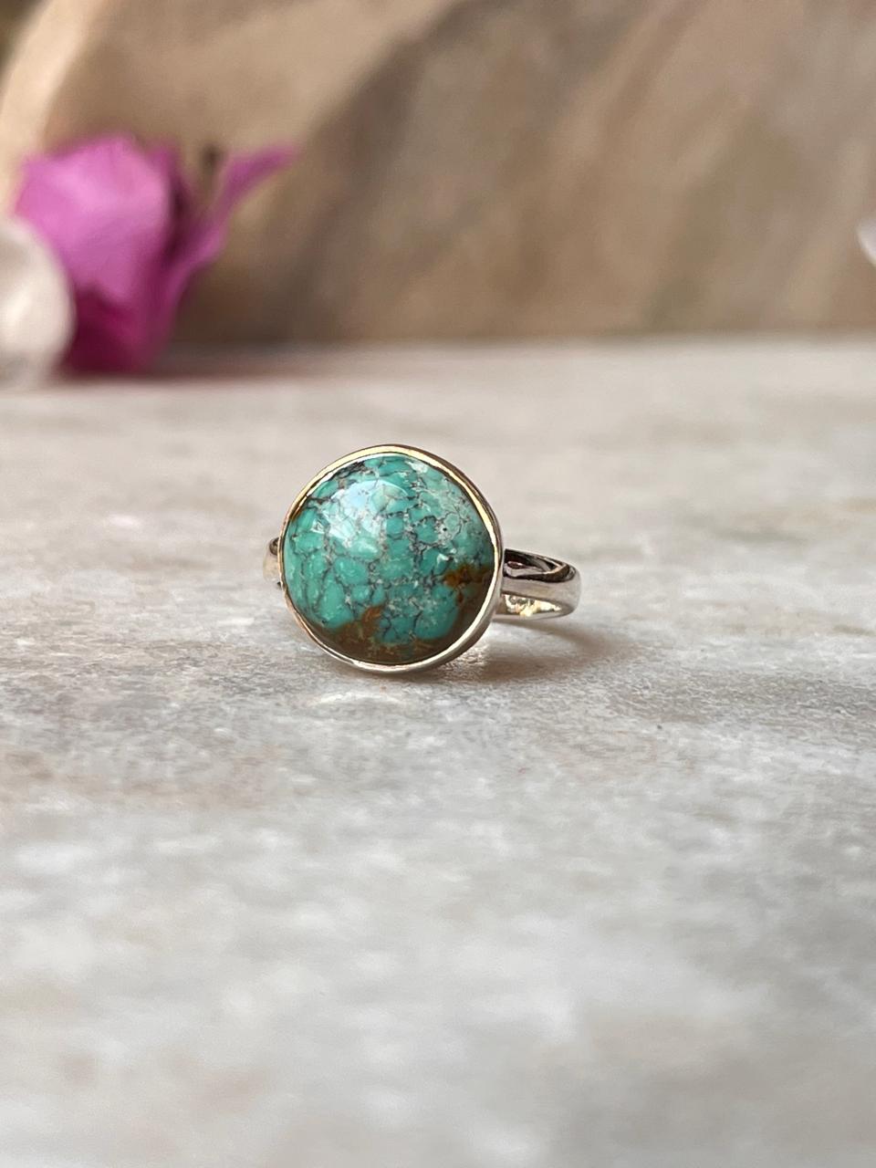 Big Tibet Turquoise 925 Sterling Silver Ring