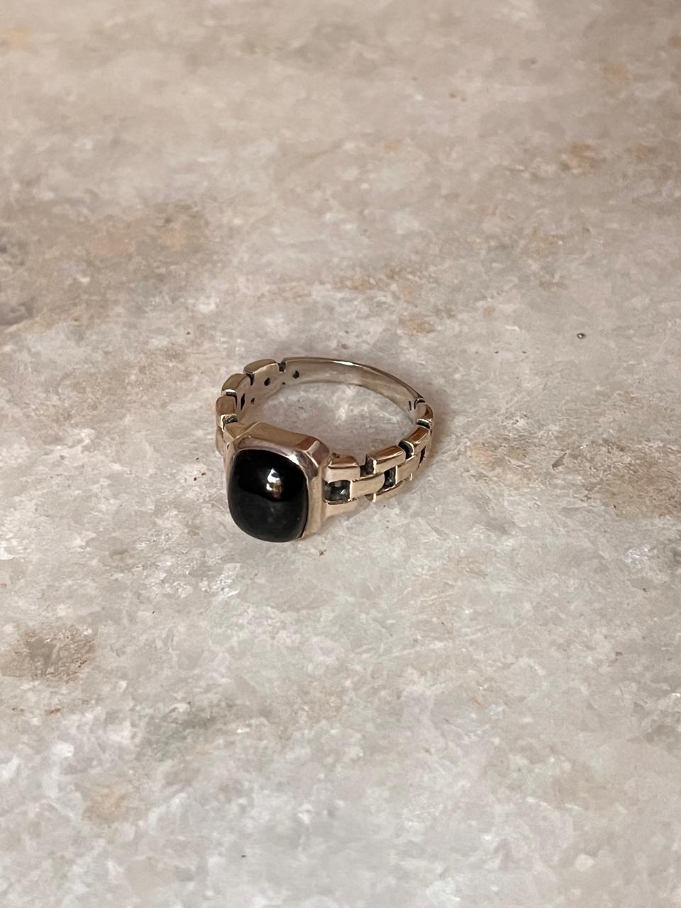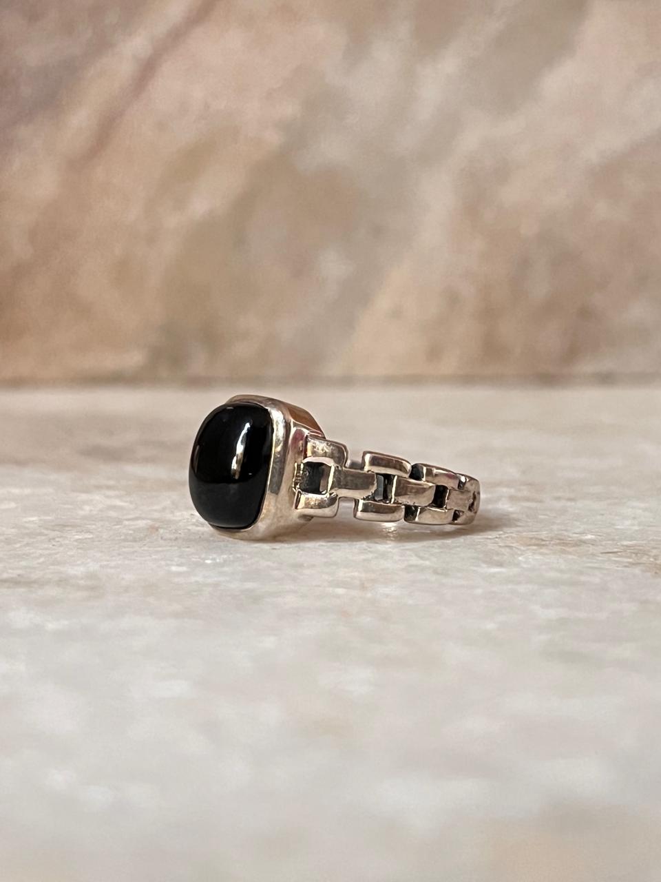 Black Onyx Cuban Link Band 925 Sterling Silver Ring