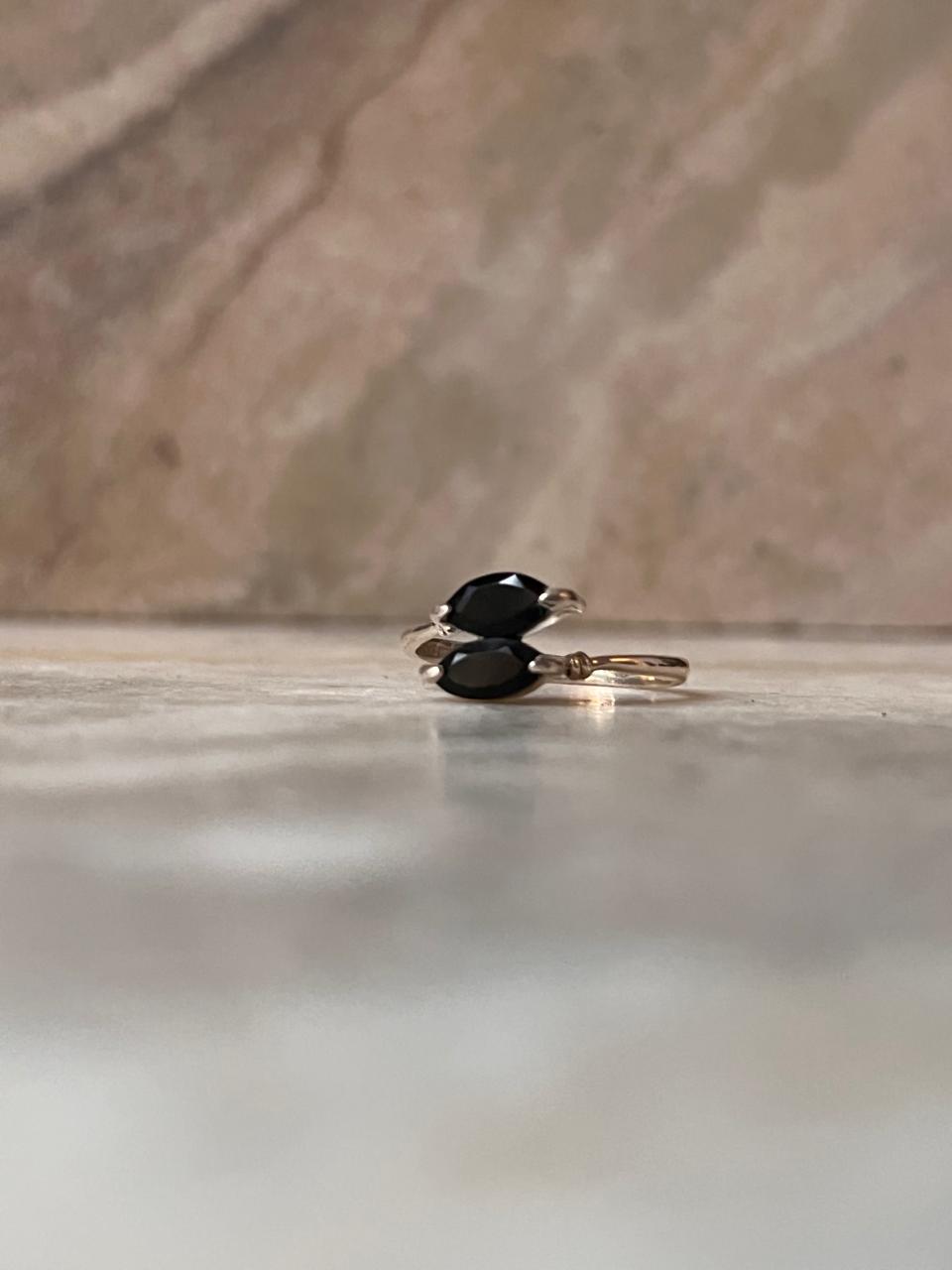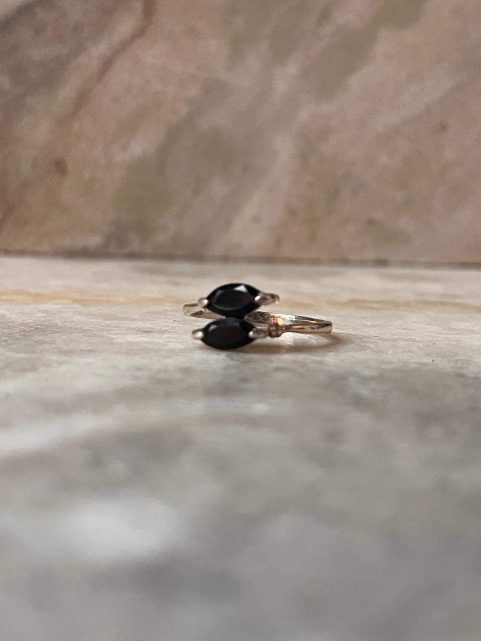 The Black Onyx Marquise Double Stone Cut 925 Sterling Silver Ring showcases two striking marquise-cut black onyx stones, symbolizing protection and strength. The elegant double-stone design adds a dynamic, contemporary touch, while the high-quality 925 sterling silver setting ensures durability and shine. This ring combines bold sophistication with meaningful energy, making it a standout accessory for those who appreciate both style and spiritual grounding.