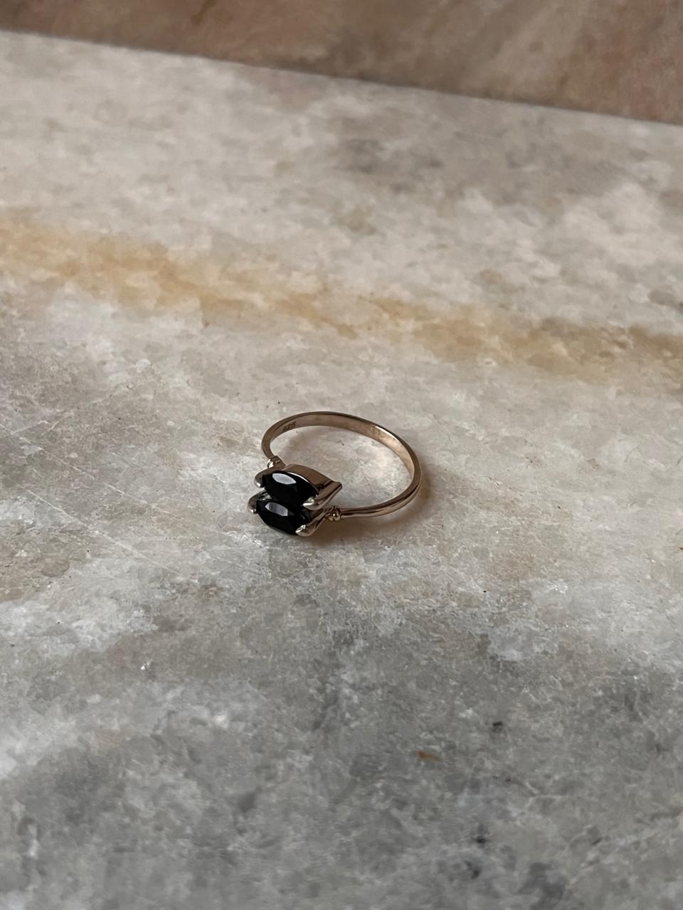 Black Onyx Marquise Double Stone Cut 925 Sterling Silver Ring