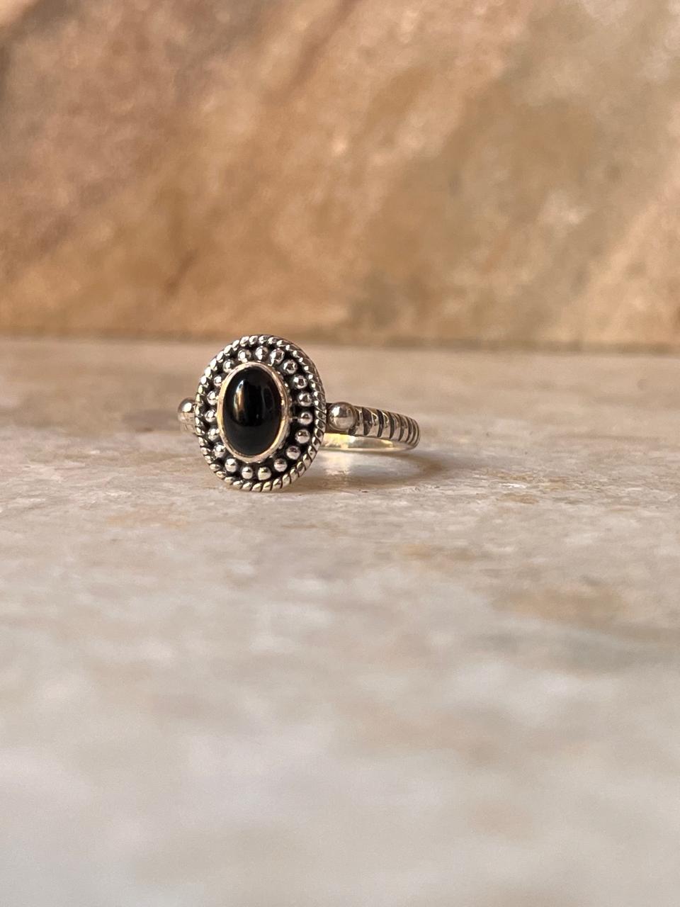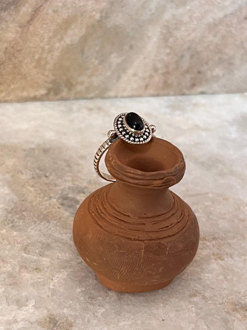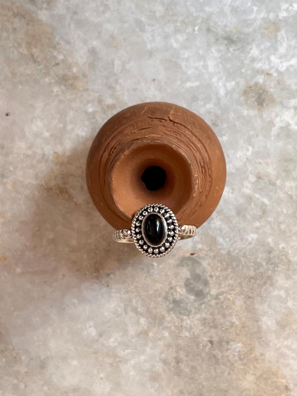 Black Onyx Evil Eye Rawa Tribal Daily Wear 925 Sterling Silver Ring