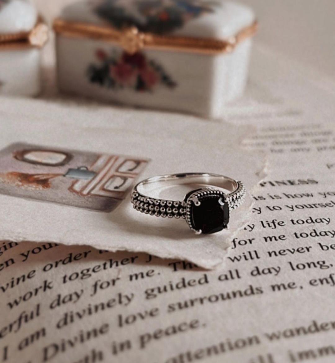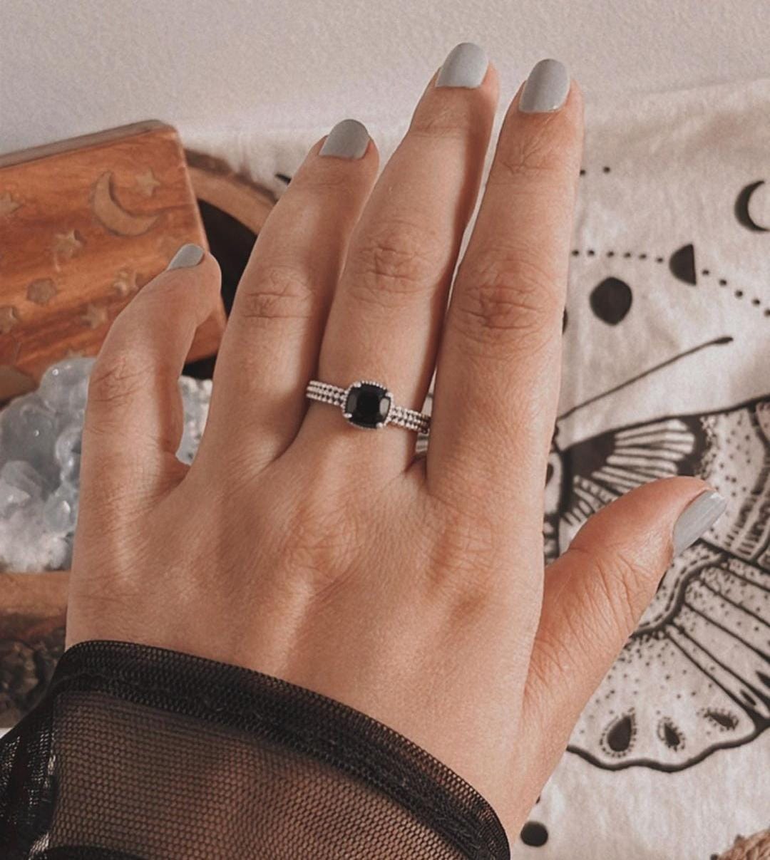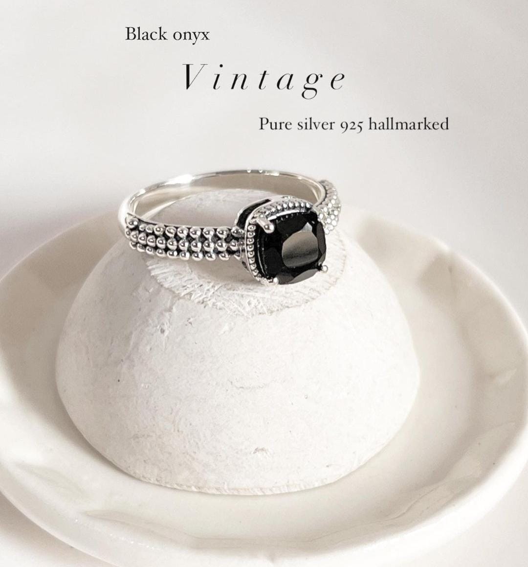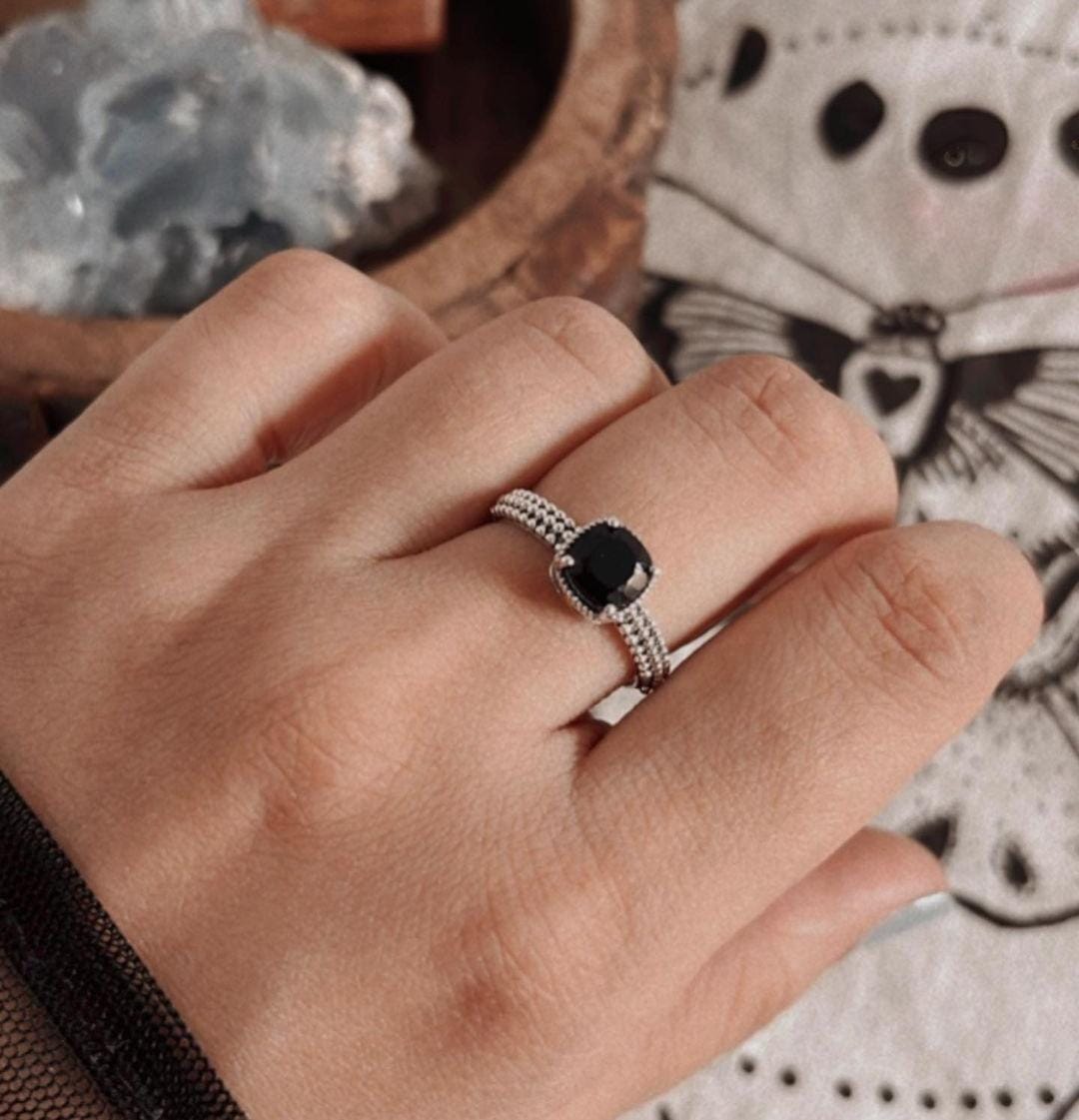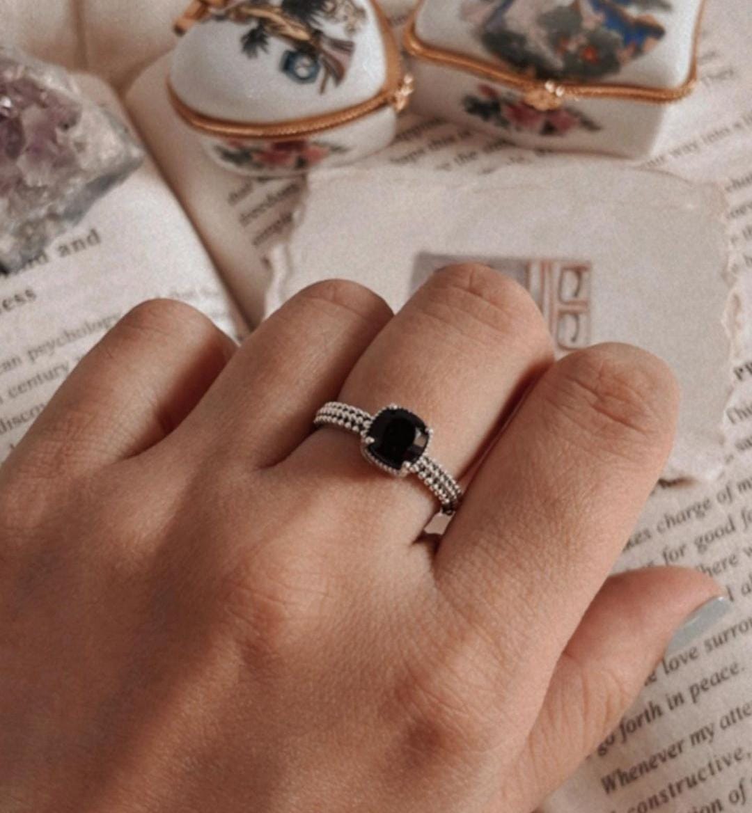 The Black Onyx Square Cut Vintage 925 Sterling Silver Ring is a bold and sophisticated piece that combines classic elegance with a touch of vintage charm. Featuring a striking square-cut black onyx—a stone known for its grounding and protective properties—this ring exudes strength and refinement. The intricate detailing around the stone enhances its dramatic beauty, while the 925 sterling silver band ensures both durability and a polished finish. Ideal for those who appreciate timeless design with a modern twist, this ring is perfect for making a statement with a sense of understated luxury.