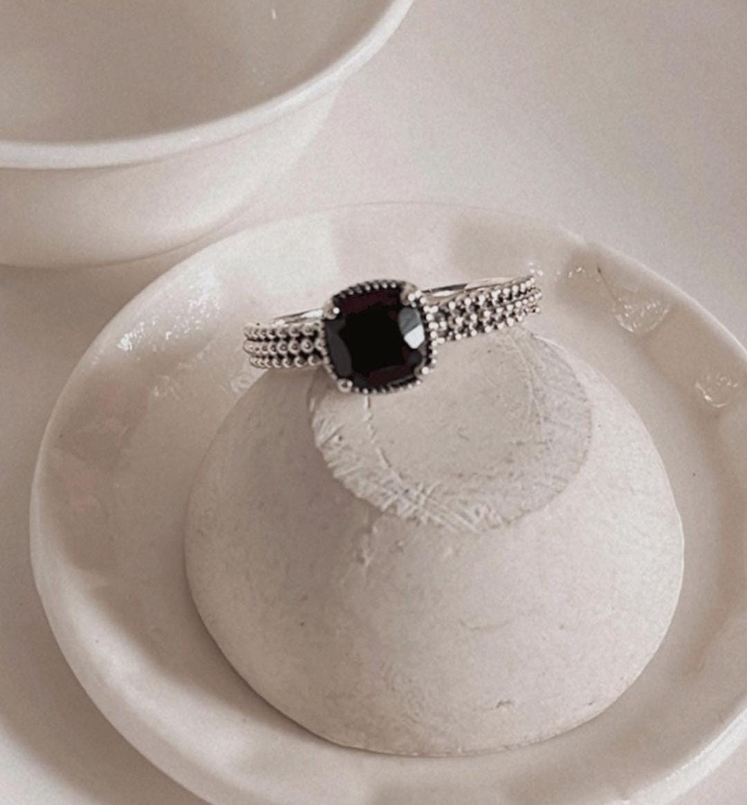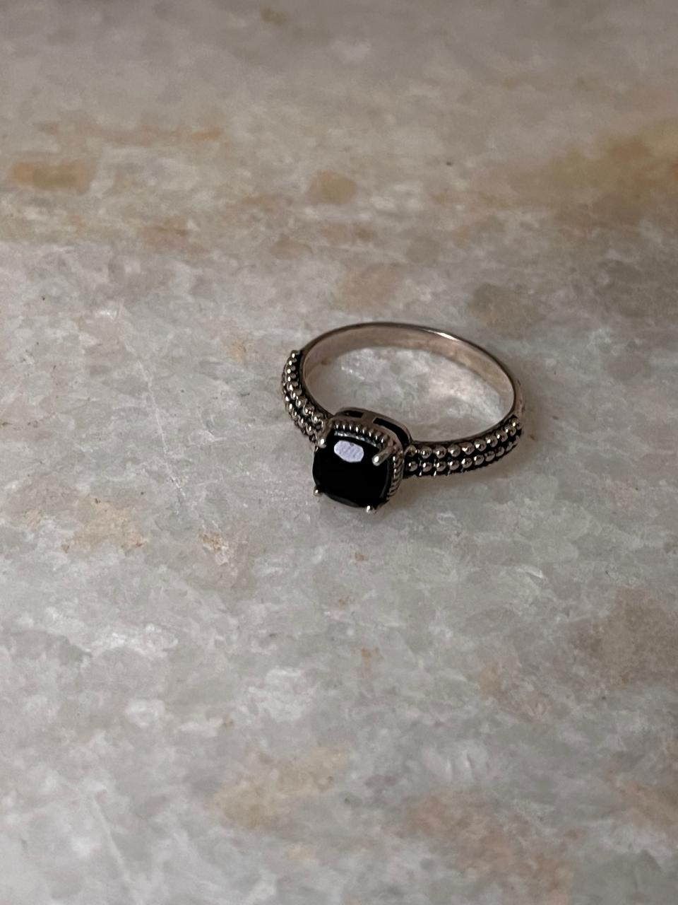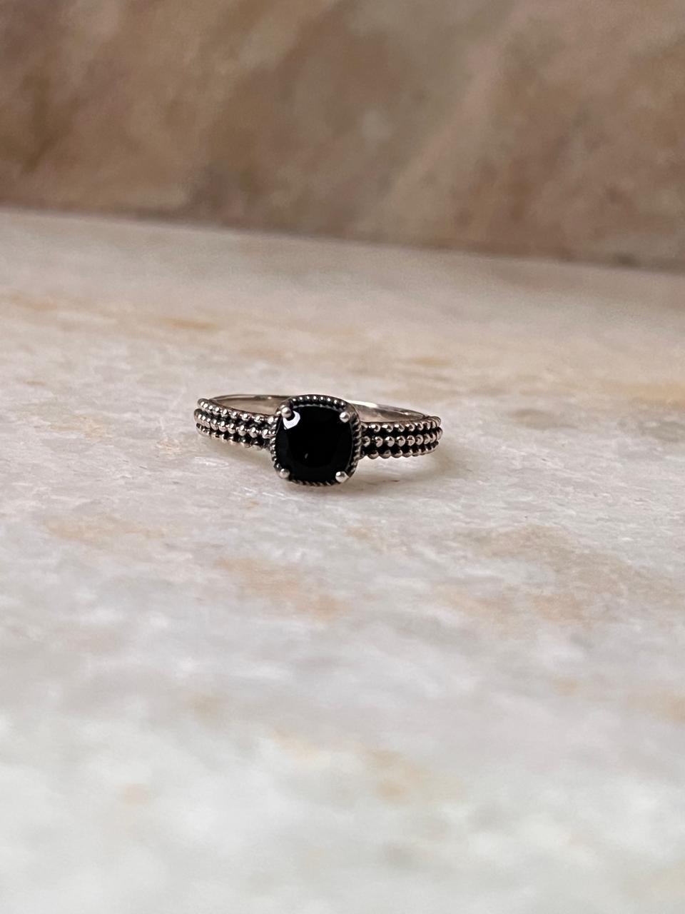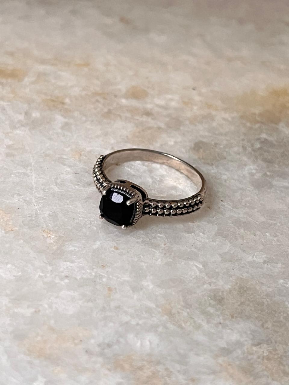 Black Onyx Square Cut Vintage 925 Sterling Silver Ring