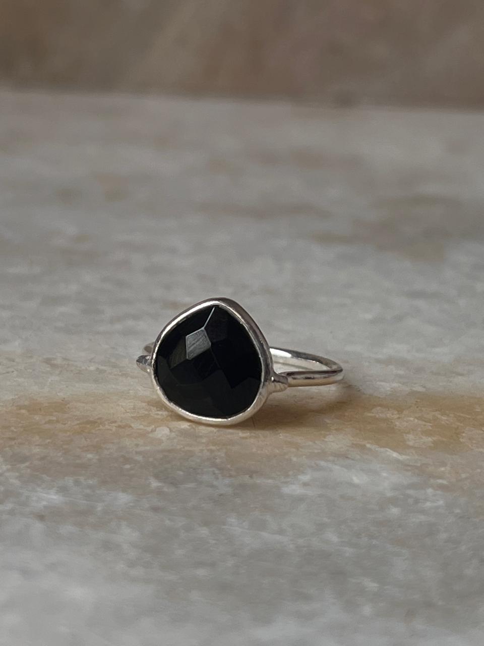 Black Onyx Heart Faceted 925 Sterling Silver Ring