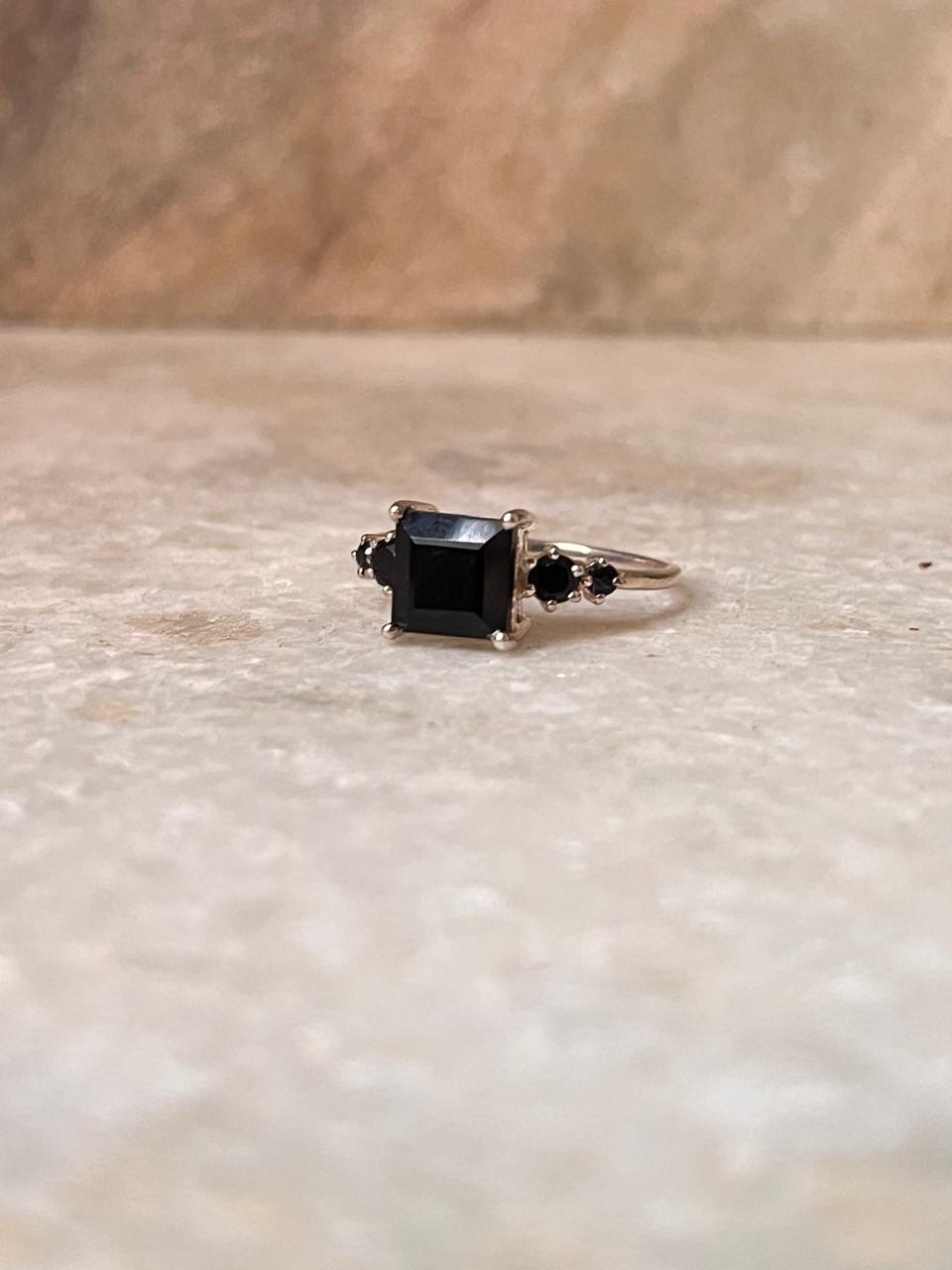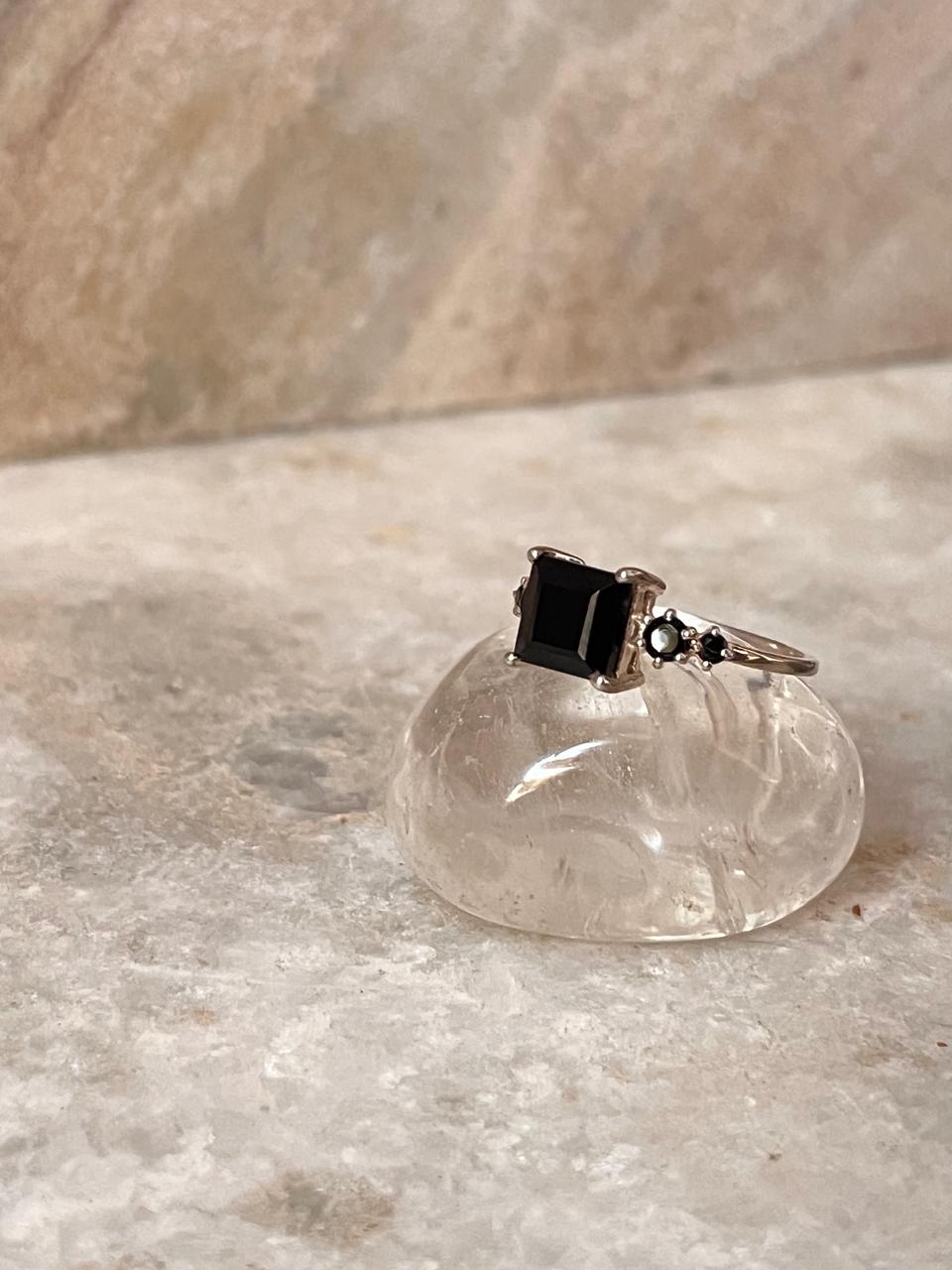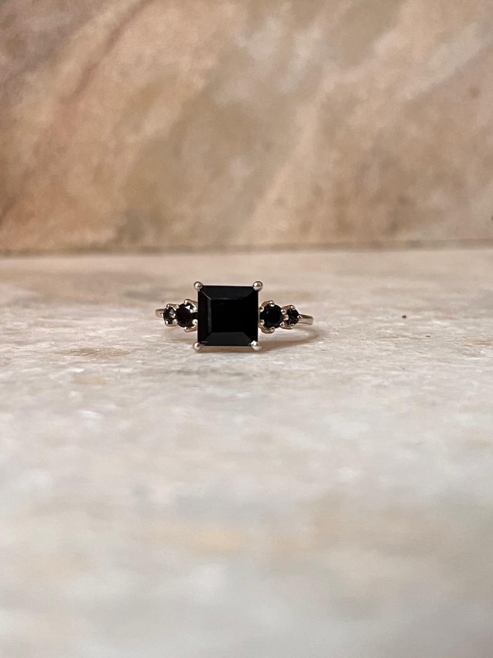 This Black Onyx Square Cut Silver Ring exudes elegance with its sleek design and high-quality materials.