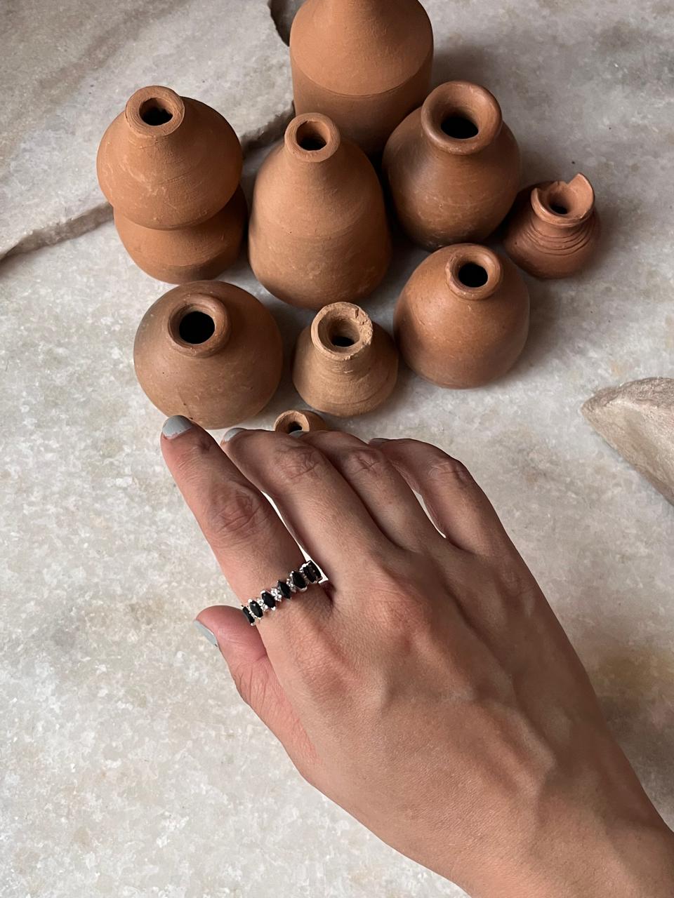 Elysian Stack Black Spinel & White Topaz 925 Sterling Silver Ring