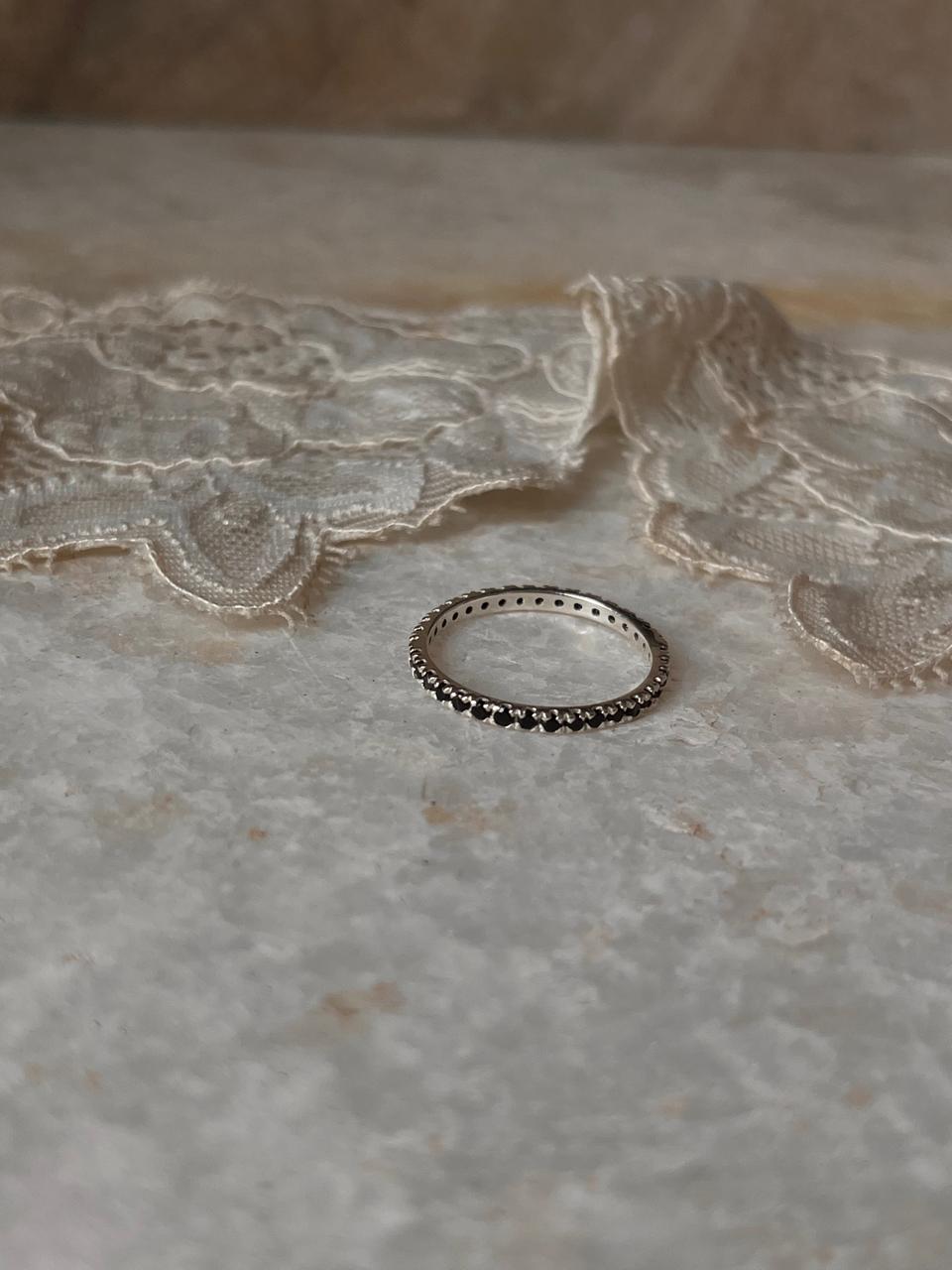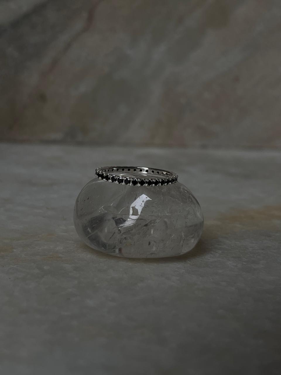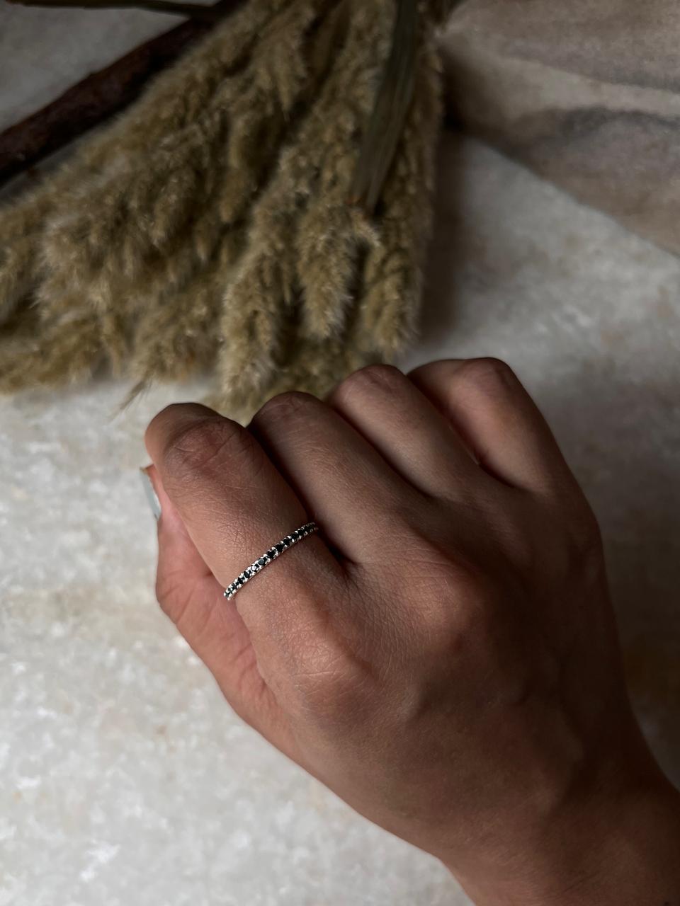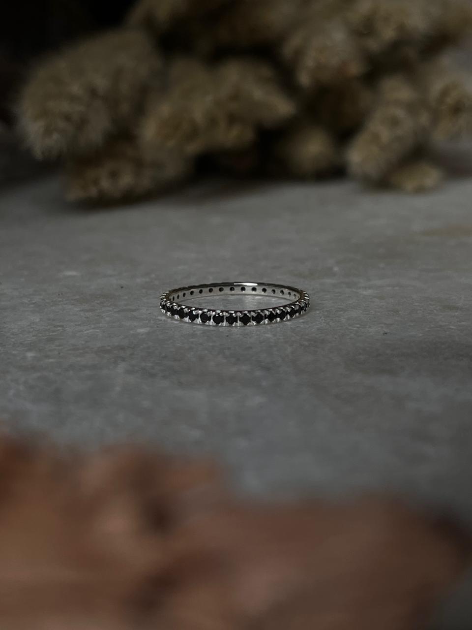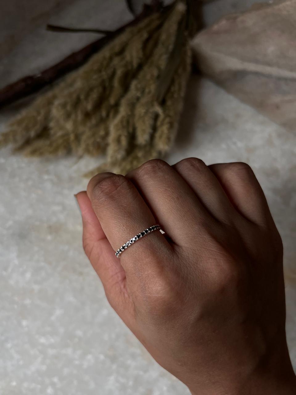 Black Spinel Eternity Stack Band 925 Sterling Silver Ring