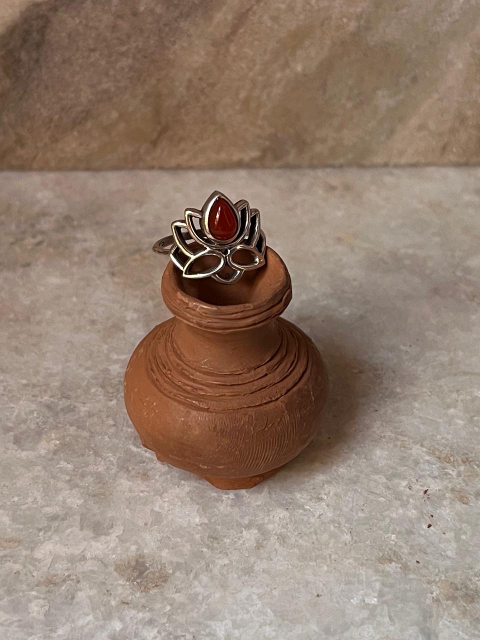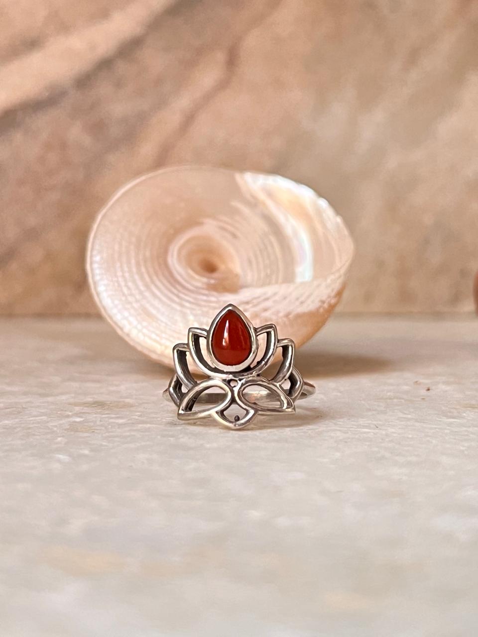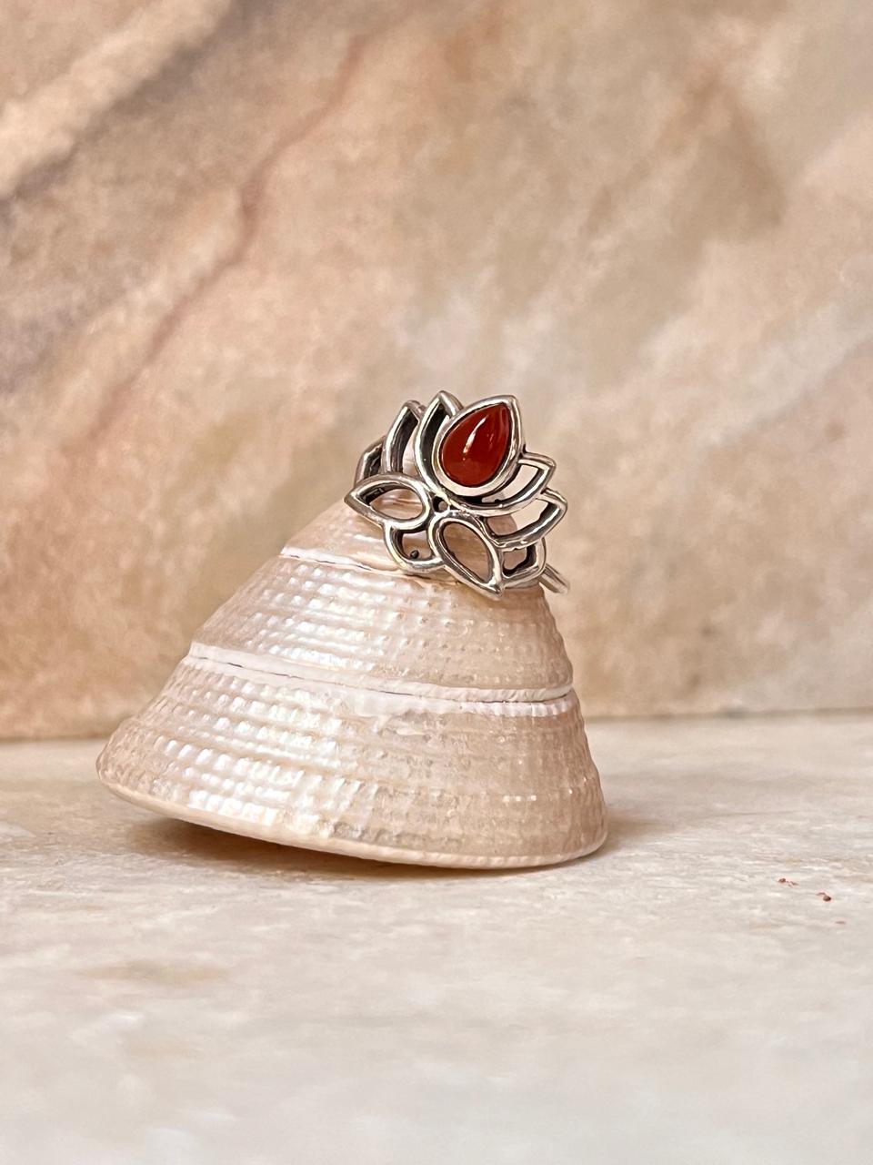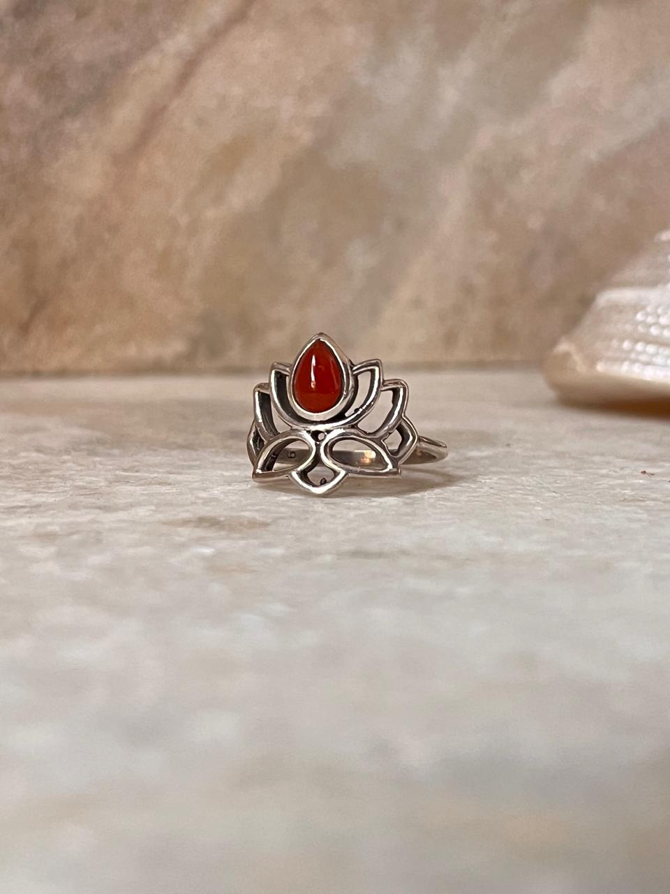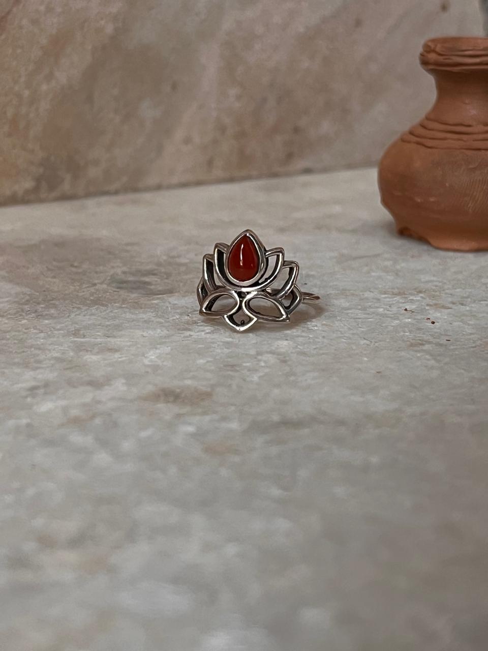 Carnelian Divine Lotus 925 Sterling Silver Ring