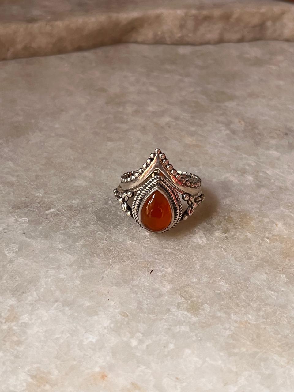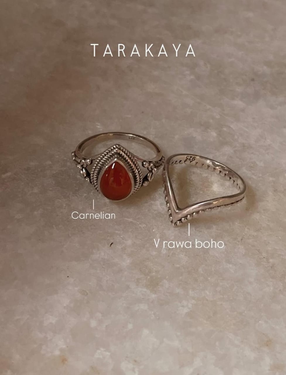 Carnelian Pear Boho & V Rawa /Chevron Boho 925 Sterling Silver Stack Set Ring