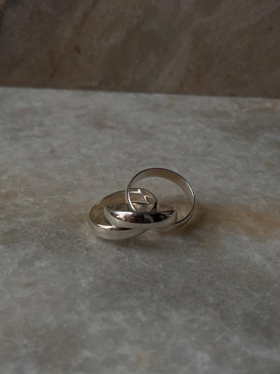 Three band rings are also known as Trinity Bands, Russian Trio Jewellery, Rolling Rings, Triple Rolling Rings, Russian Wedding Rings or Russian Wedders. Three individual bands are shaped and permanently interlocked to be worn as a single ring.