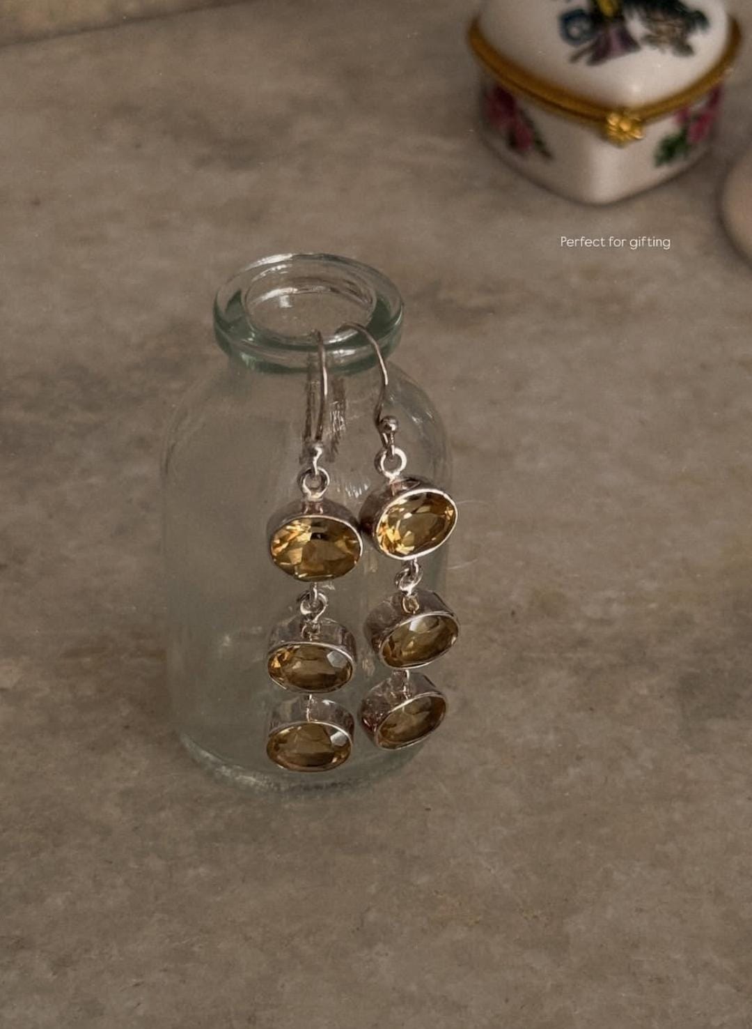 Citrine 3 Oval Statement 925 Sterling Silver Earrings