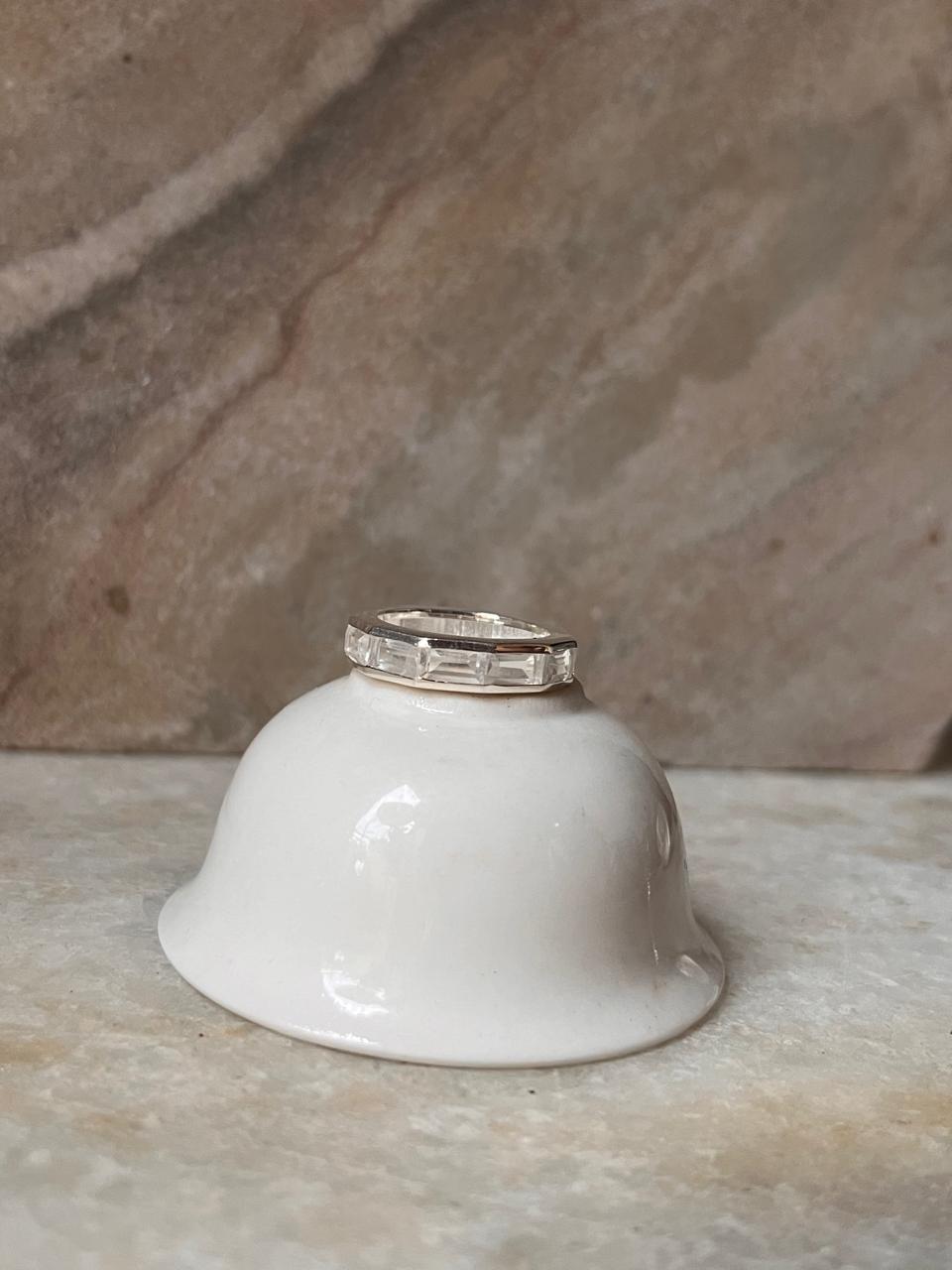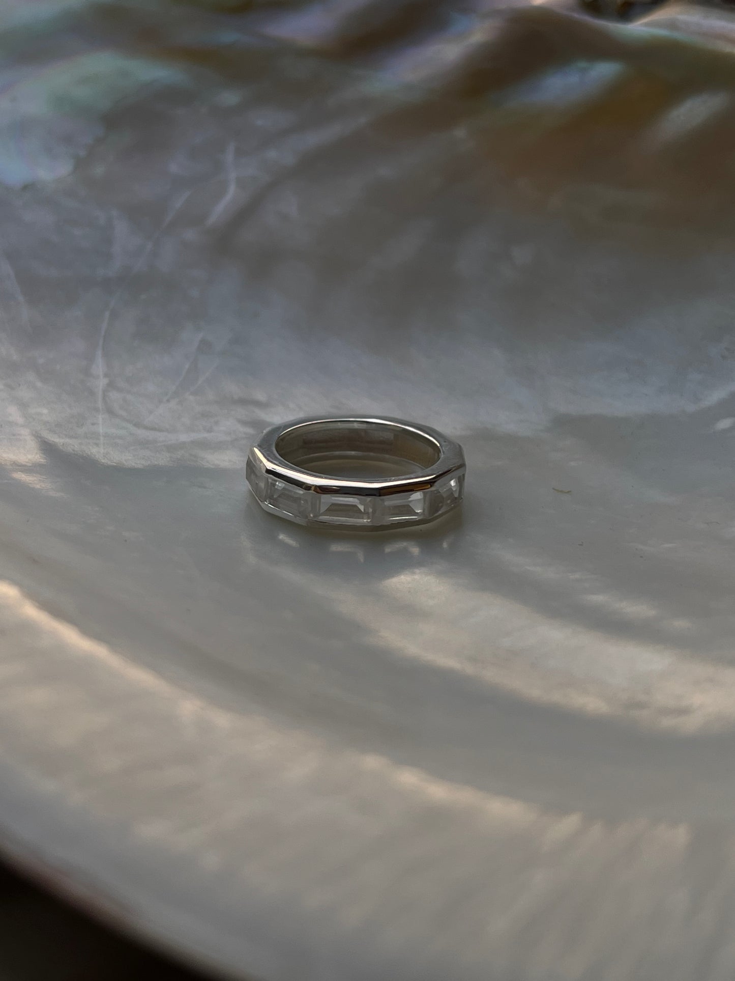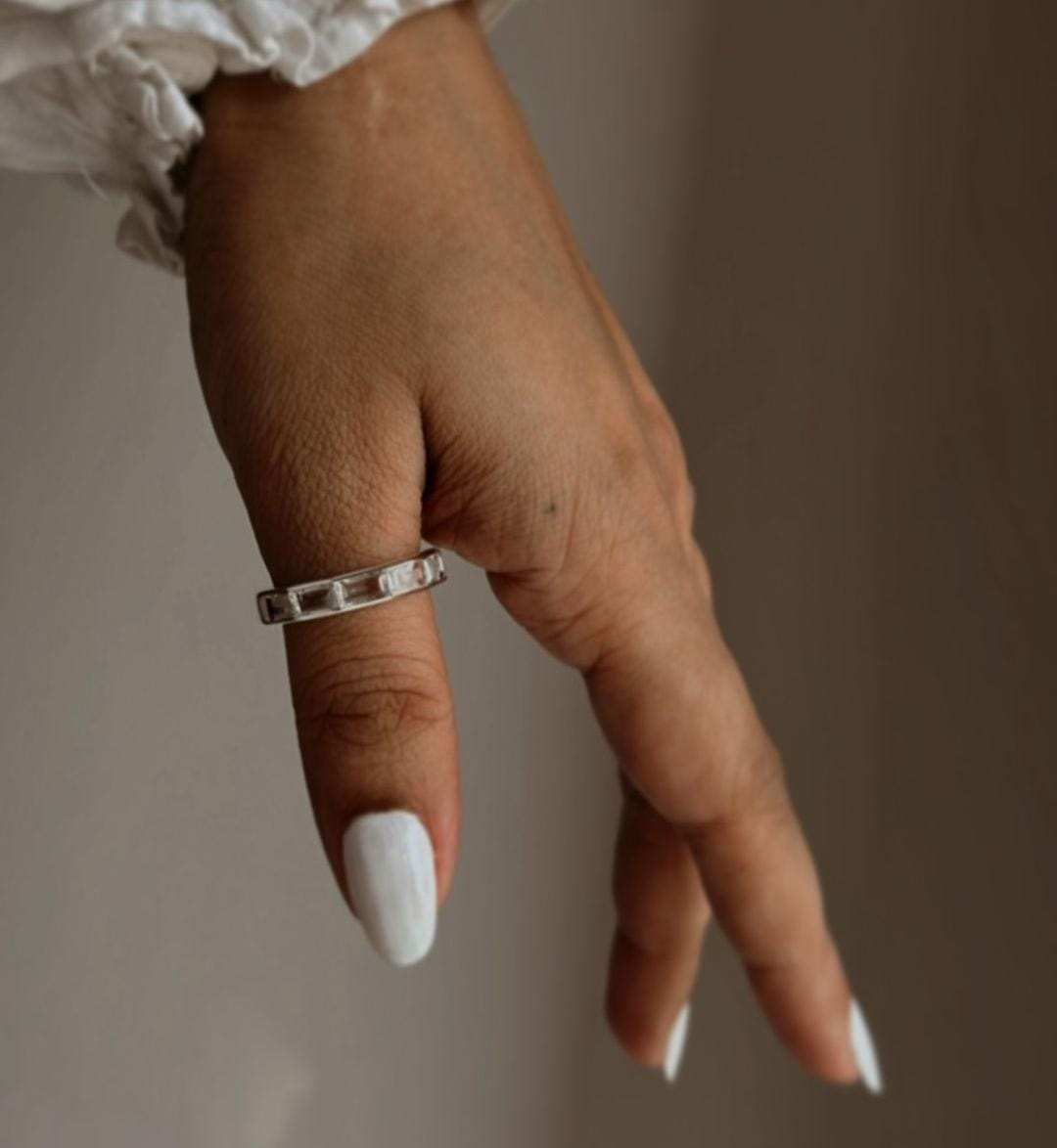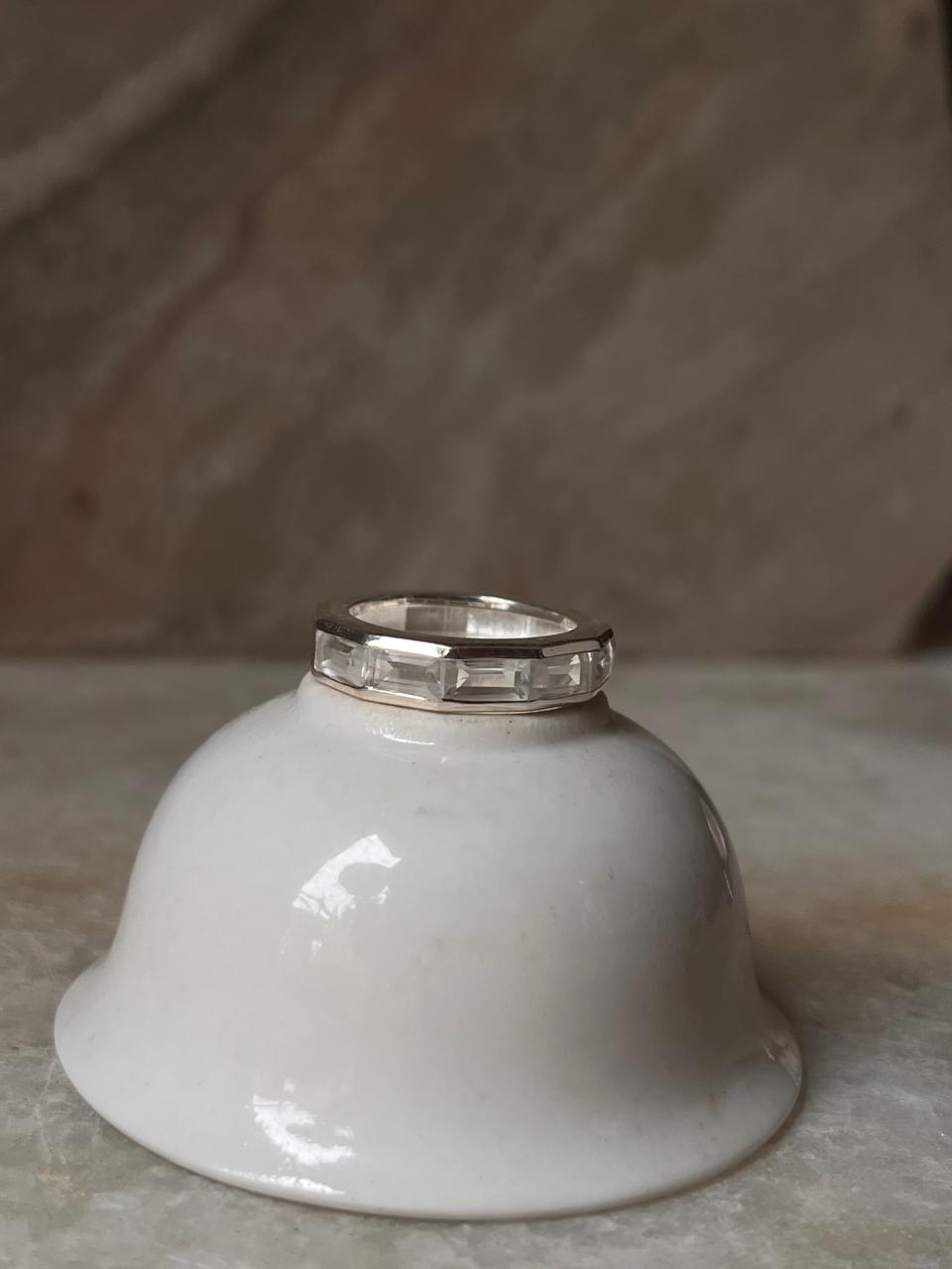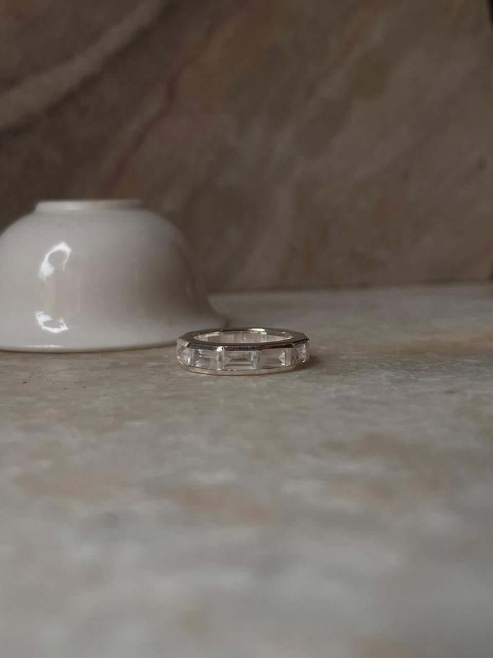 Clear Quartz Five Baguette Stone 925 Sterling Silver Ring