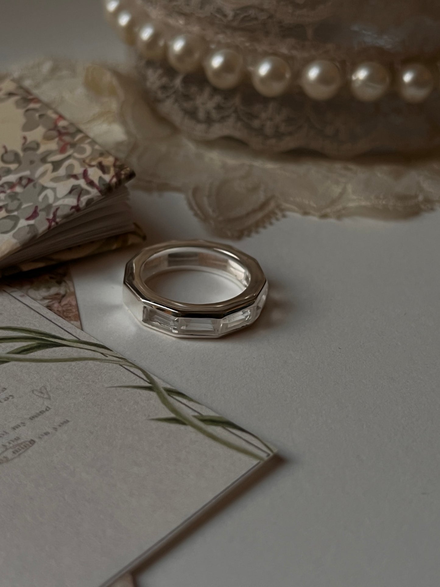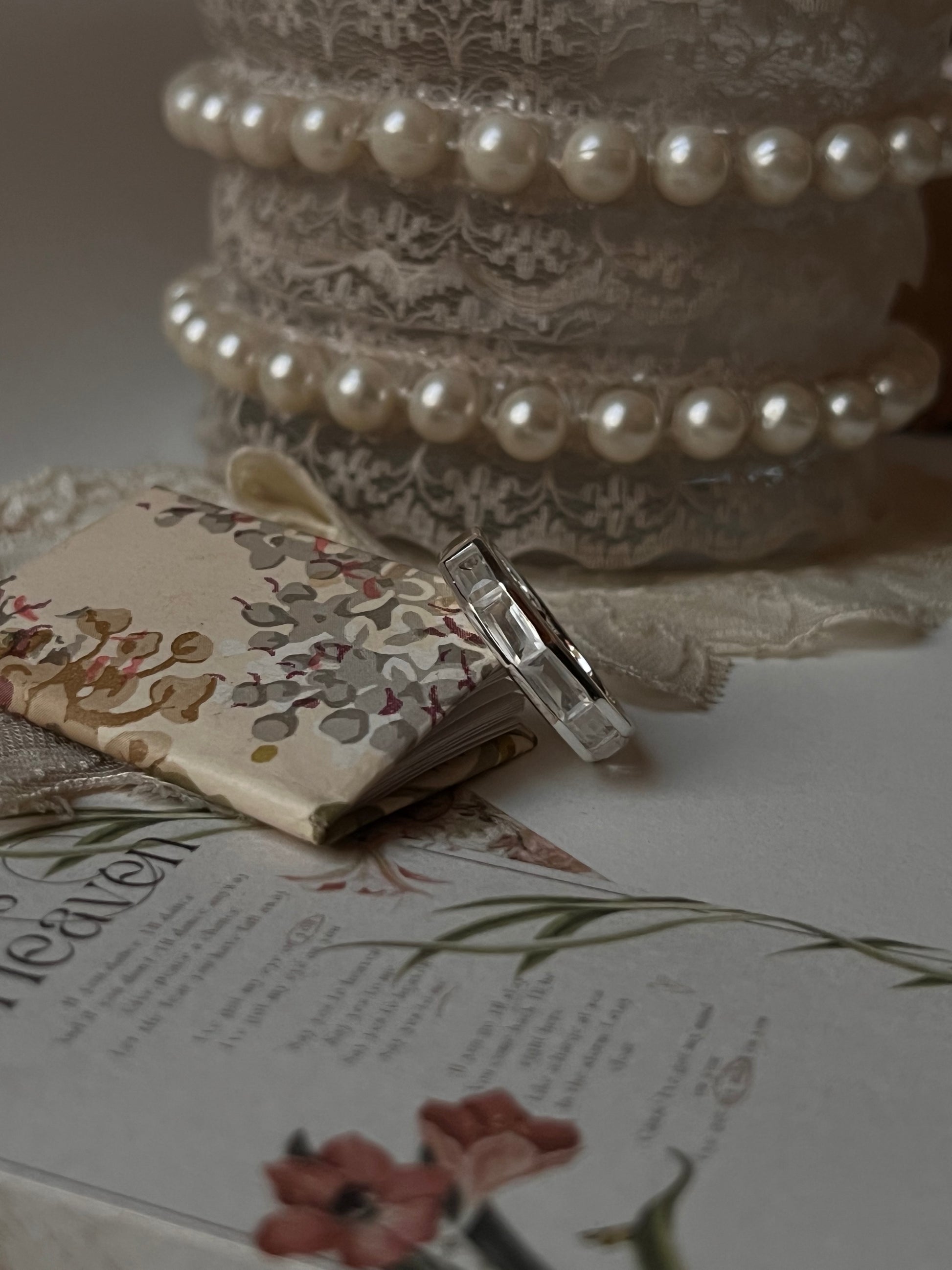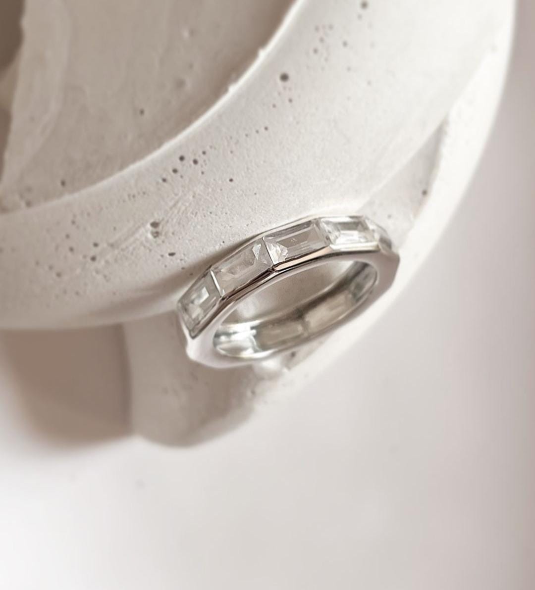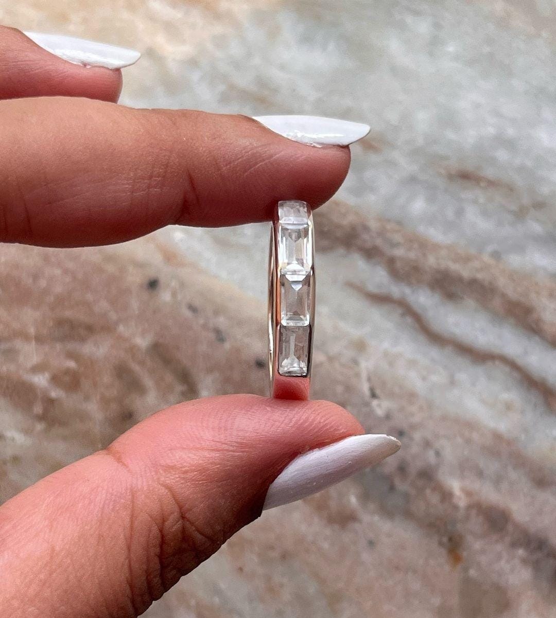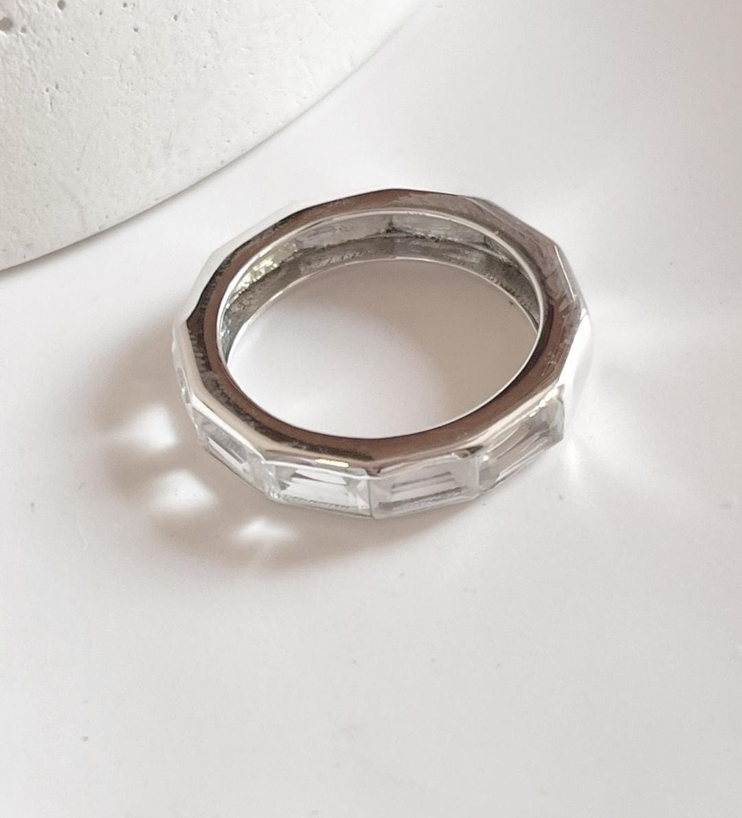 Clear Quartz Five Baguette Stone 925 Sterling Silver Ring