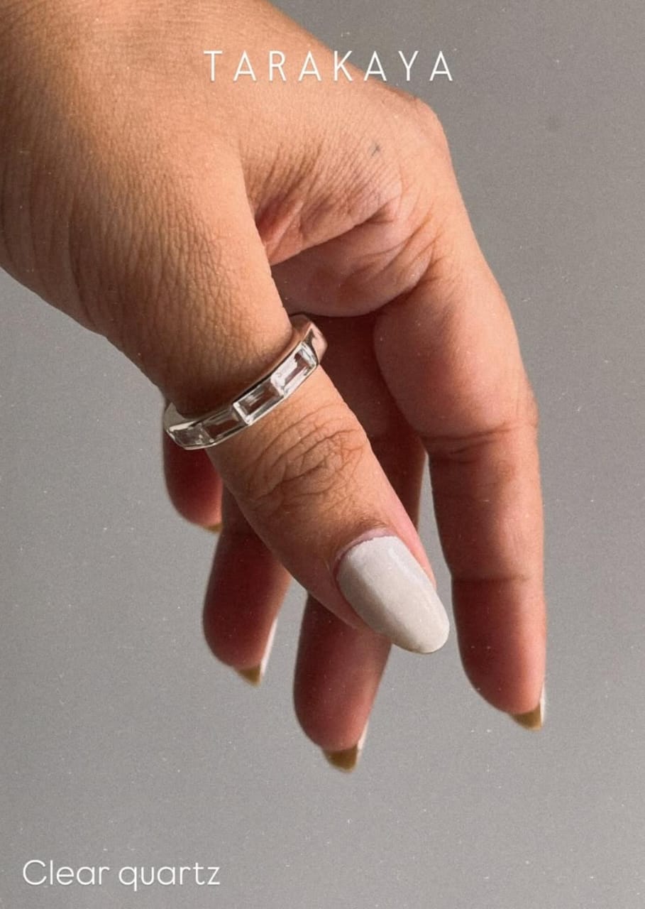 The Clear Quartz Five Baguette Stone 925 Sterling Silver Ring is a sophisticated piece that combines sleek design with powerful healing energy. Featuring five baguette-cut clear quartz stones, known as the “master healer,” it amplifies clarity, balance, and spiritual growth. The linear arrangement adds modern elegance, while the sterling silver setting ensures lasting beauty. Wearing this ring is believed to enhance focus, cleanse energy, and promote overall well-being, making it both a stylish and meaningful accessory.