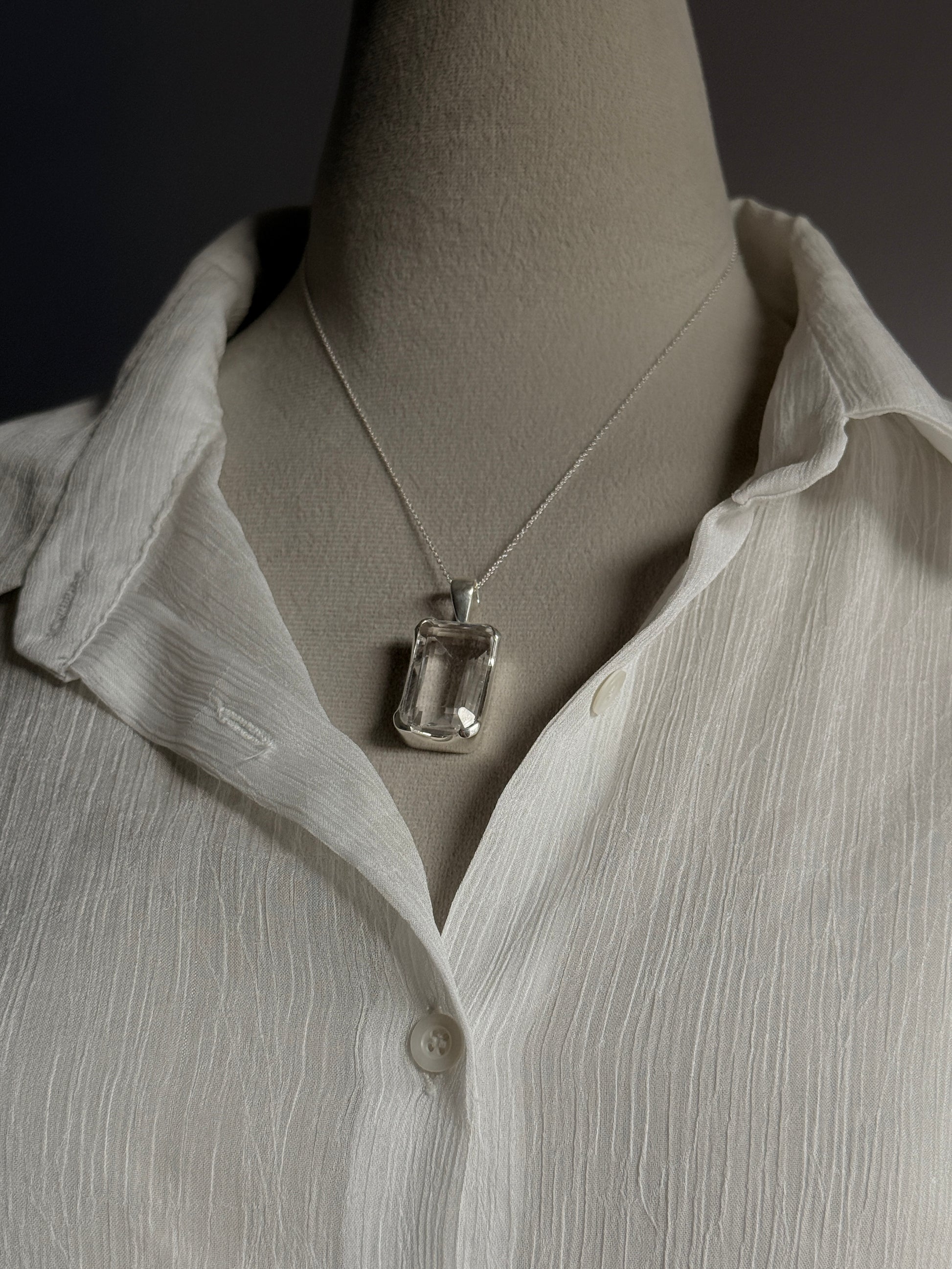 The Clear Quartz Rectangular Big Statement Handcrafted 925 Sterling Silver Pendant is a striking and bold piece designed to make a statement while harnessing the powerful energy of clear quartz. Known as the "master healer," clear quartz is believed to amplify energy, enhance clarity, and promote balance. The large rectangular cut showcases the stone’s natural brilliance, while the handcrafted 925 sterling silver setting adds an artistic and personal touch. Perfect for those who appreciate both striking design and spiritual power, this pendant is an elegant piece that embodies both sophistication and energetic healing.