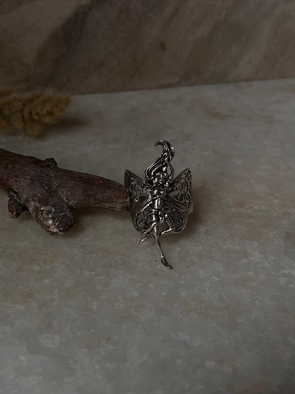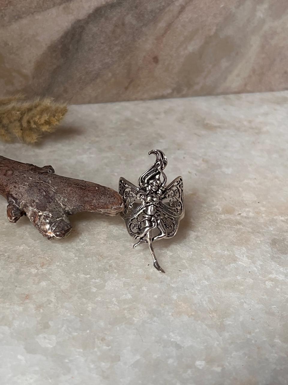 Dancing Mystic Angel Filigree Adjustable 925 Sterling Silver Ring